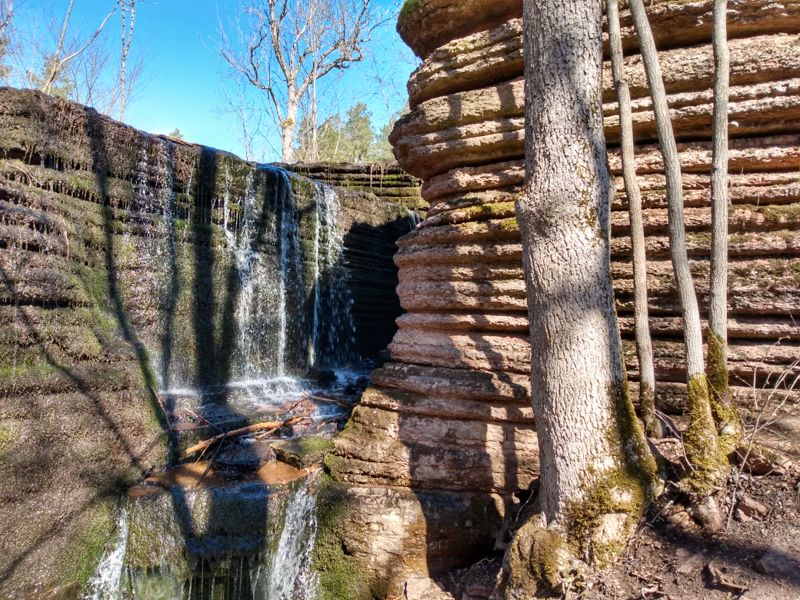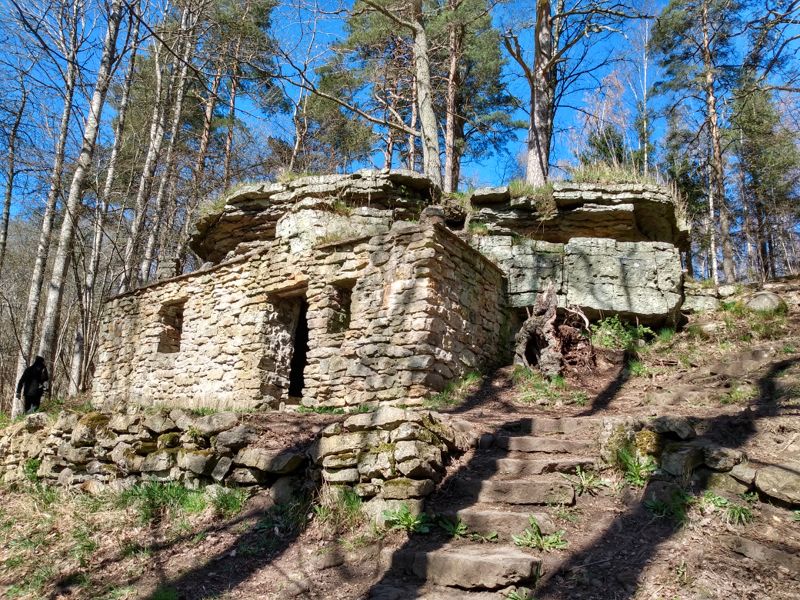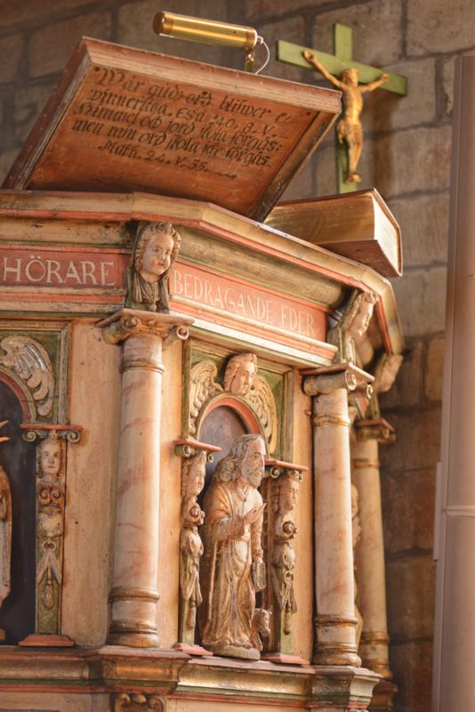 Schön sonnig aber unglaublich kalt war es, als wir bei stürmischem Wind in die alte Kirche von Husaby gingen. Anders als die innen weiß getünchten Kirchen, die wir bisher gesehen haben, waren hier Decken und Wände schön bemalt. Eine wirklich schöne Kirche. Ganz in der Nähe gab es ein altes Gemäuer unter einem Felsvorsprung, in dem sich 1860 ein Aussteiger - ja, so etwas gab es auch zu dieser Zeit schon - mit seiner Frau eingerichtet hat. Unabhängig von der Gesellschaft lebte er bis ins hohe Alter in dieser kleinen Unterkunft, die dann auch noch geplündert wurde. Es fiel uns schwer zu glauben, dass dies einmal ein gemütliches Heim gewesen sein soll. Wir fuhren weiter zum Matorpsfallet, einem kleinen Wasserfall, den wir uns zunächst erlaufen mussten. Quer durch einen an einen Olivenhain erinnernde Landschaft gingen wir auf einen vielleicht 20 m hohen Tafelberg, dorthin wo das Wasser in einem kleinen Rinnsal den Berg hinunterlief. Von unten war er etwas besser zu sehen. Aber das interessanteste waren noch die geschichteten Felsen ringsherum und der Bewuchs der sich dort an der Wand gebildet hatte. Wir genossen den Spaziergang, inzwischen war es merklich wärmer geworden und am Ende durfte sogar die Jacke geöffnet werden. Unser nächstes Ziel war ein Steinbruch, auf den wir von einem oberhalb gelegenen Parkplatz einen sehr schönen Blick hatten. Dann machten wir uns schon wieder auf den Weg zu unserem nächtlichen Stellplatz. Da wir morgen noch einmal in den Tiveden Nationalpark wollen, suchten wir uns einen Platz ein ganzes Stück weiter nördlich am Vänernsee. Hier konnten wir sogar noch ein wenig angeln, hatten aber leider erneut kein Glück.