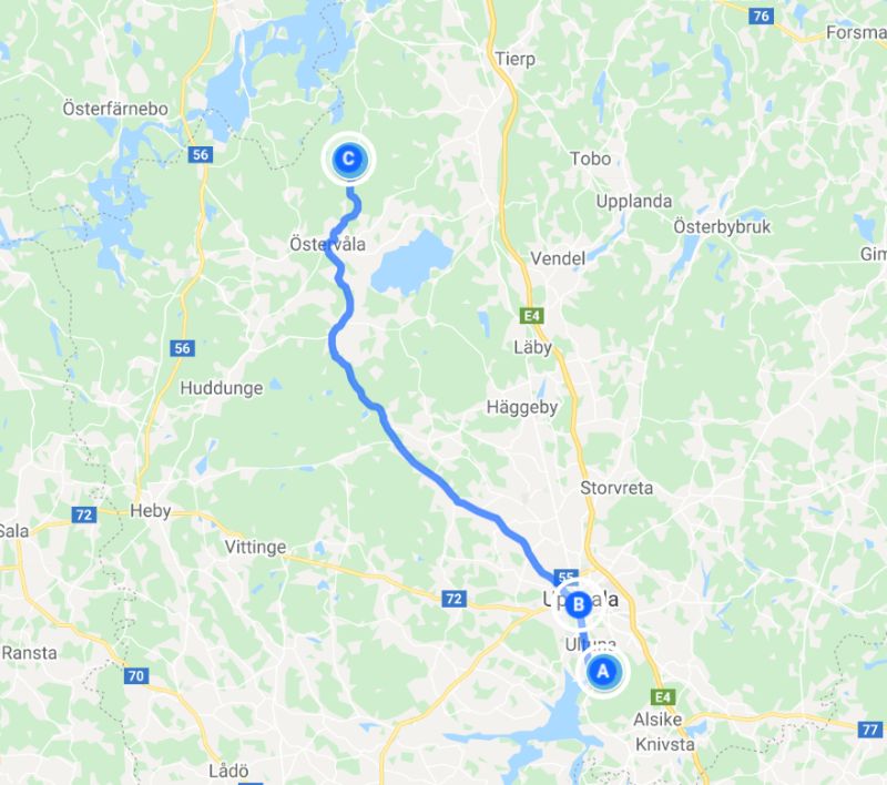 Als wir aufwachten stellten wir fest, dass es im Wohnmobil etwas kälter als üblich war. Das Gas war über Nacht so weit leer gelaufen, dass die Heizung nicht mehr ansprang. Zum Glück reichte es noch für einen morgentlichen Kaffee. Also fuhren wir nach dem Frühstück erst zum Gasflasche auffüllen nach Uppsala. Nach ein paar Diskussionen hatten wir dann auch den richtigen Preis. Ist schon merkwürdig, das das gleiche Gas unterschiedlich viel kostet, je nachdem, ob die Gasflasche im eingebauten Zustand befüllt wird oder ob sie herausgenommen und im Laden gefüllt wird. Aber egal, jetzt reicht es wieder für eine Woche. In der gesamten Stadt scheint es nur kostenpflichtige Parkplätze zu geben. Also stellten wir uns gleich auf den Parkplatz am Dom und mussten dann leider an der Kirchentür feststellen, dass der Dom geschlossen war. Im Internet stand, dass er jeden Tag von 9 bis 18 Uhr geöffnet sei. War er aber nicht. Wir sprachen mit einem älteren schwedischen Paar die gerade vorbeikamen. Die beiden sagten, dass dies vermutlich daran läge, dass heute Valborg (also Walpurgisnacht) sei. In ganz Schweden ein ganz besonderer Feiertag, an dem normalerweise hunderttausende nach Uppsala kommen und auf den Straßen den ganzen Tag gefeiert wird. Abends lodern dann überall Feuer. Aber dieses Jahr ist wie im letzten Jahr alles abgesagt worden. Aber der Dom war trotzdem zu. Wir gingen noch zum Schloss hinüber, das gleich auf dem angrenzenden Berg stand und mit seinen nur zwei Türmen etwas merkwürdig aussah. Dann fuhren wir weiter, um uns einen Stellplatz für das Wochenende zu suchen. Den ersten Platz, einen kleinen Wanderparkplatz verließen wir gleich wieder, da wir befürchteten hier morgens von Autos geweckt zu werden. Eine halbe Stunde später standen wir auf einer kleinen Wiese im Wald, die direkt an einem See mit Bootsanleger und Badestelle grenzte. Dies sah sehr einladend aus uns wir fühlten uns auch sofort wohl hier. Kurze Zeit später bruzzelten die Hähnchenkeulen und das Kräuterbaguette auf dem Grill.