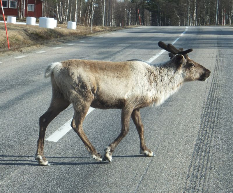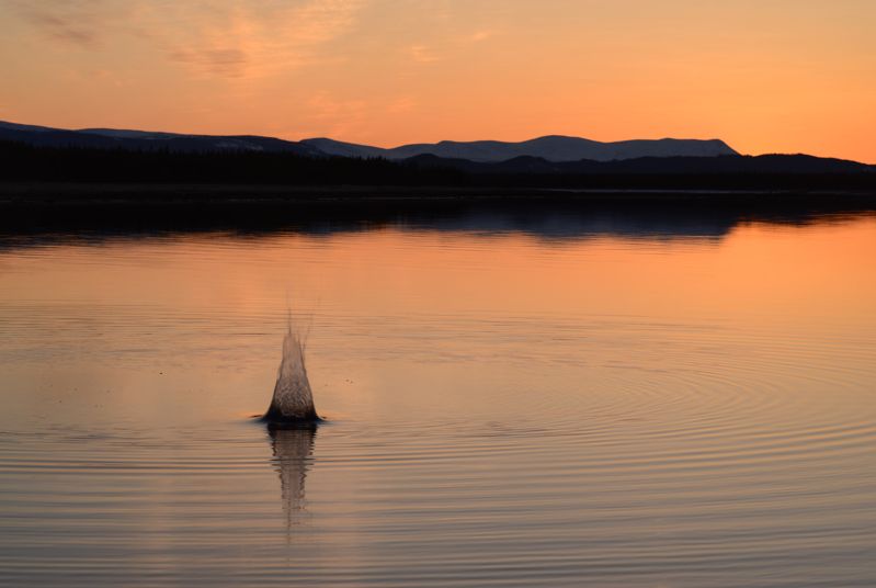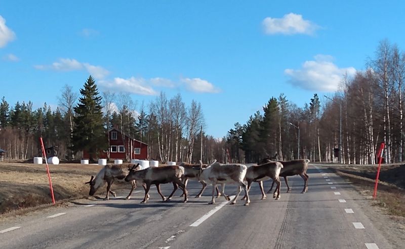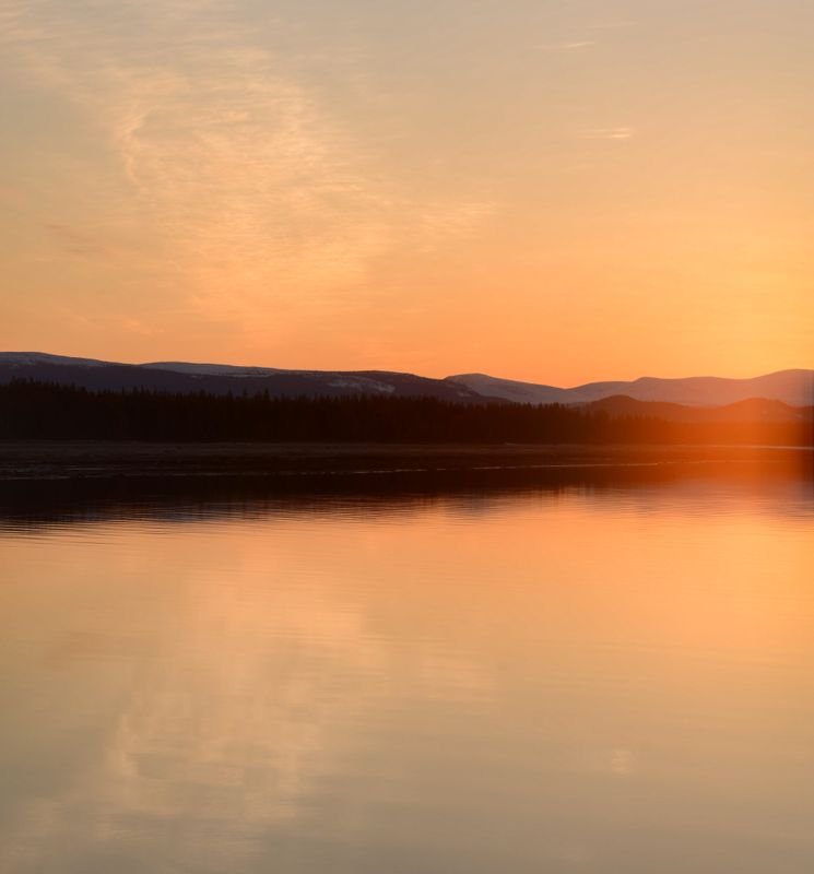 Die 2 ½ stündige Fahrt zum Sonfjällets Nationalpark kam uns gar nicht so lang vor. Wunderschön schlängelte sich die Straße über ein schneebedecktes Hochplateau. Die Seen waren noch dick mit Eis und Schnee bedeckt und wir sahen einige, die mit Ihren Schneemobilen unterwegs waren. Wir hätten große Lust gehabt, das auch einmal zu versuchen. Schließlich erreichten wir den großen weißen Berg, den den Nationalpark ausmacht. Den ersten Versuch, näher an den Berg heranzukommen, brachen wir ab, weil die Straße aus großen scharfkantigen Steinen bestand und wir Angst um unsere Reifen hatten. Der zweite Zugangsweg in Richtung Nyvallen war dann deutlich besser. Allerdings war dann auch hier die Weiterfahrt 6 km vor dem Ziel zu Ende, wo der Weg nicht mehr geräumt war und ein verlassenes Schneemobil auf dem Weg stand. Wir stellten unser Wohmbil an einer Weggabelung ab, machten einen kurzen Drohnenflug und gingen dann ein Weilchen den verschneiten Weg entlang. Nach einiger Zeit kam uns ein Trecker und kurz danach ein Auto entgegen. Dann war uns auch klar, warum an der Weggabelung ein Wagen des hiesigen ADAC gestanden hatte. Der PKW hatte sich offensichlich irgendwo festgefahren und musste befreit werden. Aber auch wir kehrten bald um, da wir durch die Bäume entlang des Weges auch keinen besseren Blick auf den Berg bekamen. So bestaunten wir den großen weißen Berg aus der Ferne, als wir unseren Weg fortsetzten und zu einem schönen einsamen Platz am nördlichen Ende des Svegssjön Stausees fuhren, wo wir einen herrlichen Sonnenuntergang hinter den Bergen beobachten konnten.