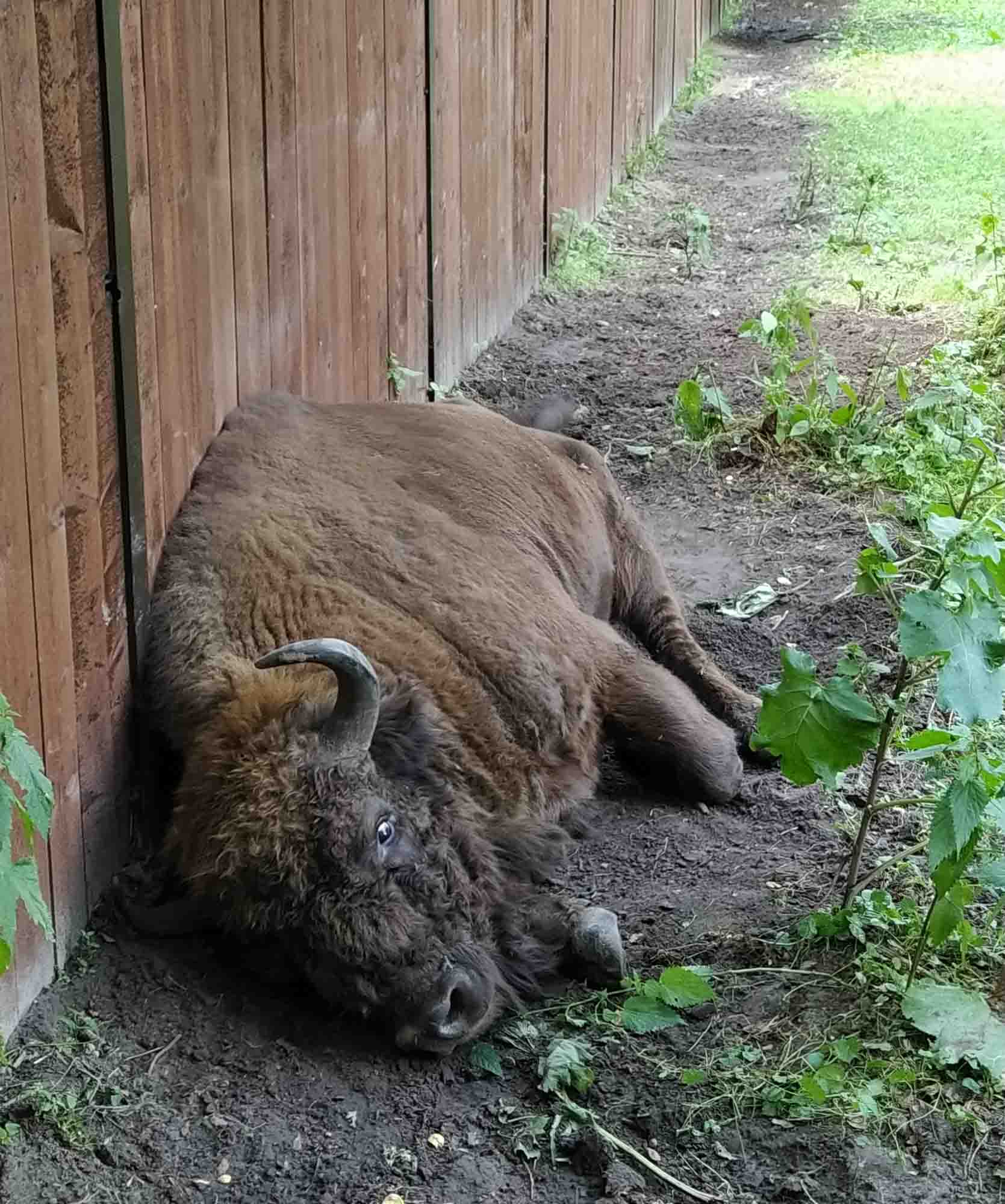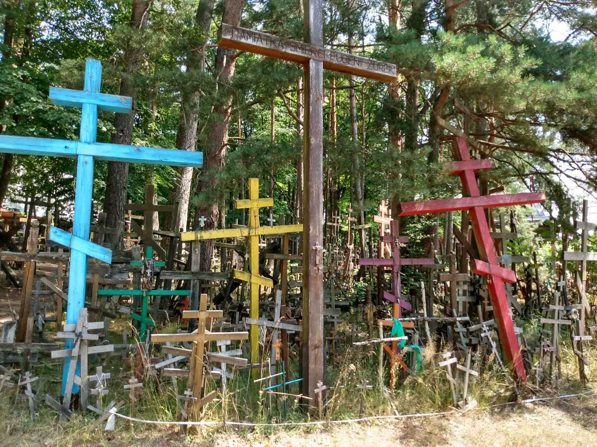 Als wir morgens um 7:40 Uhr (!!!) aufstanden, hatten die Polen ihr Zelt bereits abgebaut und waren verschwunden. Wir freuten uns über die Kühle des frühen Morgens und versuchten uns noch mit Angeln bevor wir nach Grabarka fuhren, wo es einen Berg mit etwa (keiner hat sie wirklich gezählt) 7000 Kreuzen gibt. Als wir ankamen fand in einer der beiden Kirchen ein Gottesdienst statt, in der anderen eine Beerdigung. Es sind sehr viele offensichtlich sehr alte Kreuze aufgestellt worden, es gibt aber auch zahlreiche Kreuze aktuellen Datums, die dort eng bei eng stehen. Etliche von ihnen sind behängt mit Rosenkränzen oder anderen Ketten oder es stehen Figuren darauf. Danach fuhren wir zum Bialowieza Nationalpark, in dem es die letzten wild lebenden Bisons in Europa gibt. Gesehen haben wir sie auch. Allerdings die in dem kleinen Wildpark kurz vor der gleichnamigen Ortschaft. Es war auch heute über 30 Grad heiß und so waren wir froh, dass es nur ein vergleichsweise kleiner Spaziergang war. Anschließend fuhren wir noch gemütlich durch den Nationalpark und ließen den letzten Urwald Europas auf uns wirken. Den Schlafplatz fanden wir auf halben Weg nach Białystok an einem kleinen Fluss.