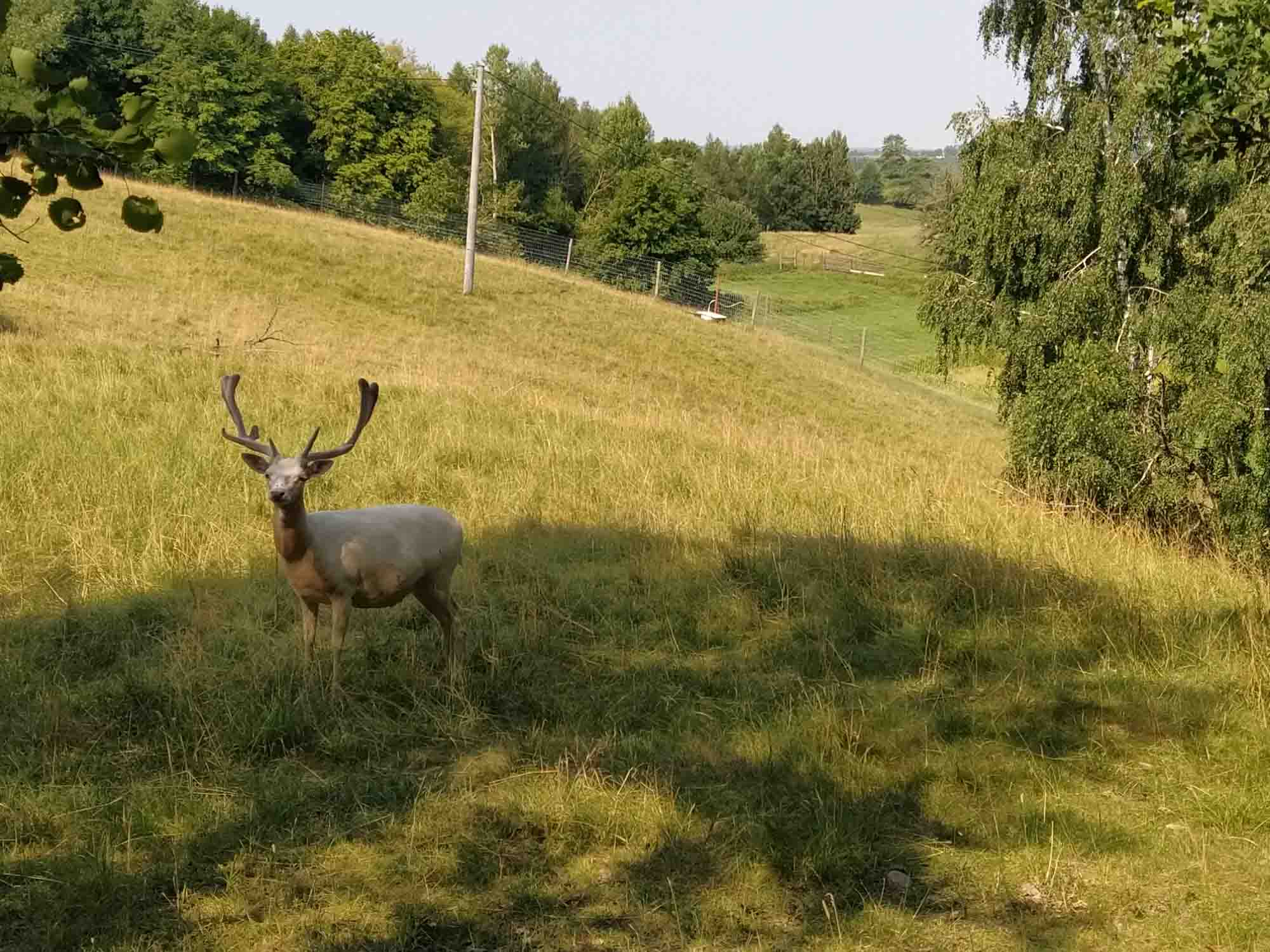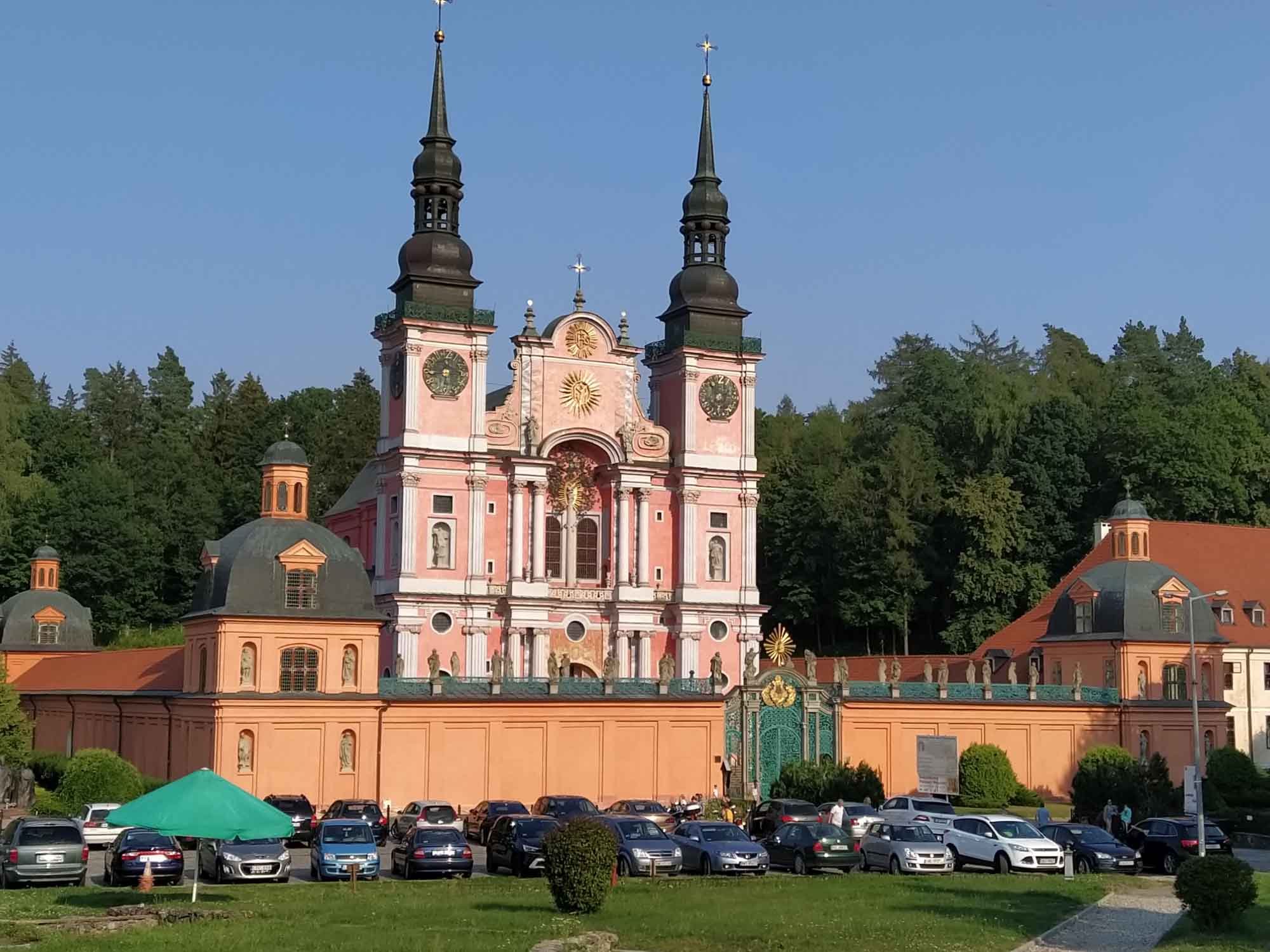 In der Nacht, es war morgens um zwei, kam eine Gruppe Jugendlicher an, die vermutlich nach einer Feier stark angetrunken waren. Warum sie ausgerechnet so weit abseits von irgendwo noch eine Station machen mussten, blieb uns verborgen. Jedenfalls wachten wir kurz auf, nur um dann um so tiefer wieder einzuschlafen. Um halb acht konnten wir nicht mehr schlafen und waren daher etwas früher als sonst unterwegs. Die erste Station war ein Rot- und Dammwildgehege, die auch Führungen machten. Es war allerdings bereits wieder 30 Grad heiß und wir hatten keine Lust, bei diesen Temperaturen 1 - 1 1/2 Stunden über Wiesen zu laufen, um Rehe anzusehen. Die Tiere bekamen wir allerdings trotzdem zu sehen. Sie kühlten sich im Schatten nahe des Zaunes ab und wir hatten ausreichend Gelegenheit, gute Fotos zu schießen. Danach fuhren wir nach Mragowo. Wir brauchten Wasser und Diesel. Diesel war kein Problem. Das Zapfen übernahm sogar die nette Besitzerin. Wasser hatte sie jedoch keines. Hinter der Stadt sollte es einen Campingplatz geben, den wir sogleich ansteuerten. Im Stadtzentrum waren überraschend viele Menschen. Wie wir schnell feststellten, war das alljährliche Amerikanische Festival genau heute. Entsprechend lange brauchten wir, um die 5 km durch die Stadt zu fahren. Und dann waren wir mit unserem Wohnmobil auf der Strecke des Korsos. Und nicht nur das: Wir waren plötzlich mittendrin. Vor und hinter uns fuhren mit Fahnen geschmückte offene Wagen, in denen Cowboys fleißig winkten. Die Zuschauer hielten ihre Kameras hoch und wir waren sicher auf allen Aufnahmen mit drauf. Der Campingplatz war wegen der vielen Zuschauer dann auch nicht erreichbar. Aber beim nächsten, ca. 2 km weiter, klappte es dann doch. Für unser eigentliches Ziel, ein Aussichtspunkt auf einem Berg südöstlich der Stadt auf der anderen Seeuferseite, mussten wir noch einmal durch die Stadt. Diesmal ging es aber problemlos. Die Aussicht von Aussichtspunkt hatten wir uns netter vorgestellt. Reiseführern kann man wohl nicht immer vertrauen. Auf dem Berg waren zwei Skilifte installiert. Immerhin wissen wir jetzt, dass man in den Masuren auch Skilaufen kann. Den Nachmittag verbrachten wir auf einer Decke liegend auf einer Wiese an einem kleinen See. Nicht ganz für uns alleine, aber trotzdem schön ruhig. Als es gegen 17 Uhr etwas abgeküht war, fuhren wir weiter. Ein echtes Highlight war dann die Kirche in Swieta Lipka. Als wir ankamen war gerade eine Messe. Wir nutzten die Zeit, um durch den herrlich gestalteten Außengang zu spazieren, der allerdings teilweise gerade restauriert wurde. Als wir die Kirche betraten, ging die Messe gerade zu Ende und wir konnten danach noch ein paar Fotos von der wirklich wunderschönen Kirche machen. Und zuletzt trauten wir uns noch vom Parkplatz aus einen Drohnenflug zu machen, um auch die äußere Erscheinung der Kirche einzufangen. Dann ging es weiter nach Reszel (Rößel). Dort steht eine alte Ordensburg, die 2002 zu einem Hotel umfunktioniert wurde. Im Hof befindet sich eine Bar und ein Restaurant, die beide sehr einladend wirkten. Wir zogen es aber vor, zu unserem nächsten Stellplatz an einen See zu fahren und unseren Grill anzuwerfen, um ein paar Maiskolben, rote Beete und Brötchen mit Kräuterbutter zu genießen.