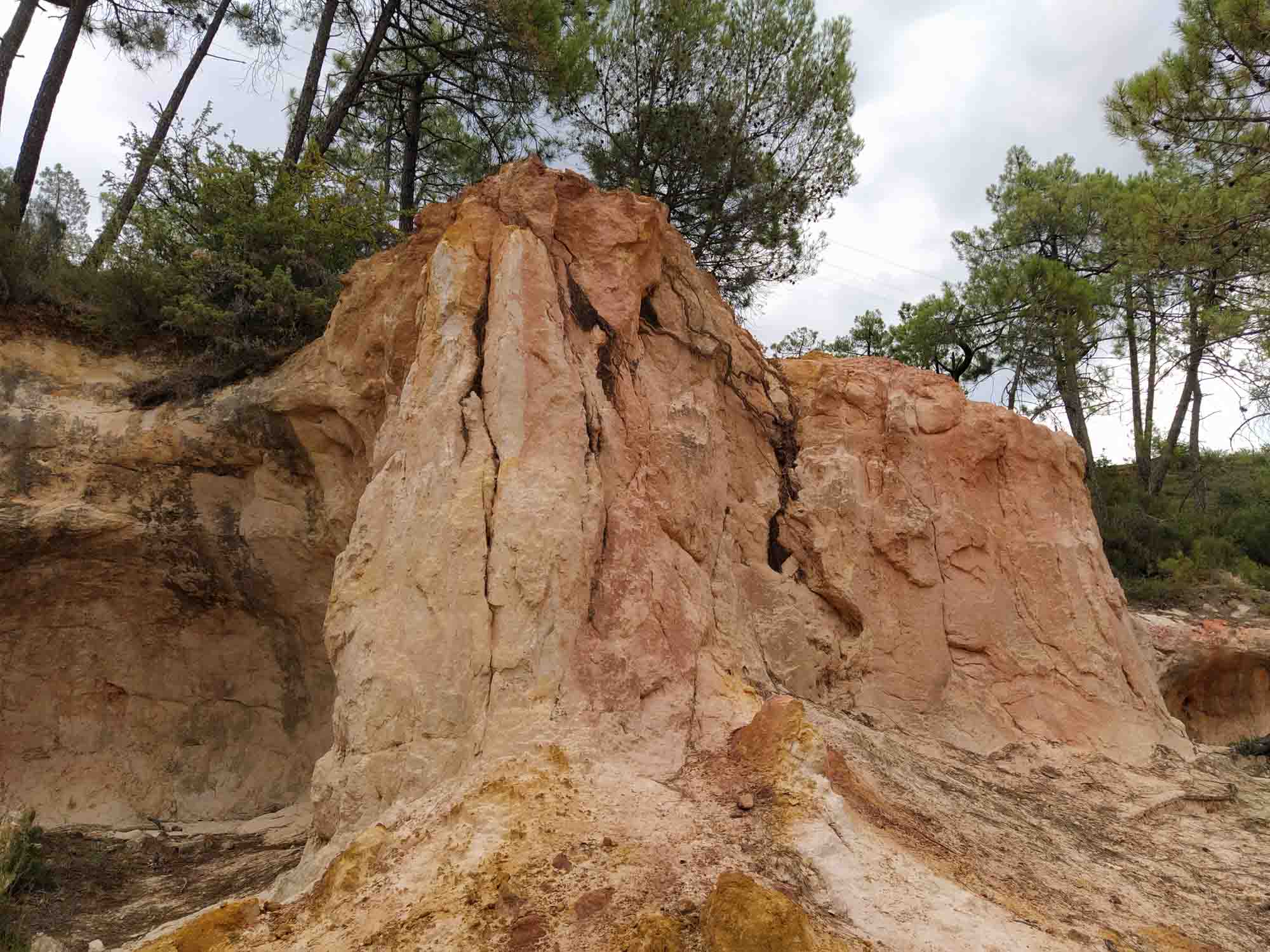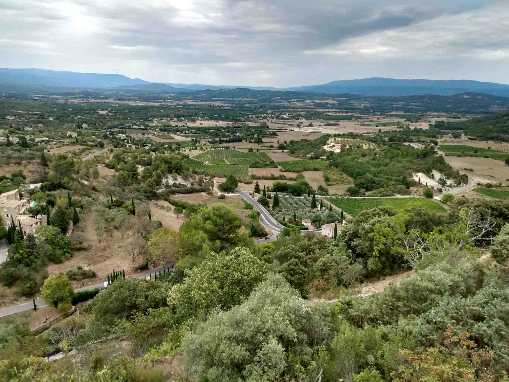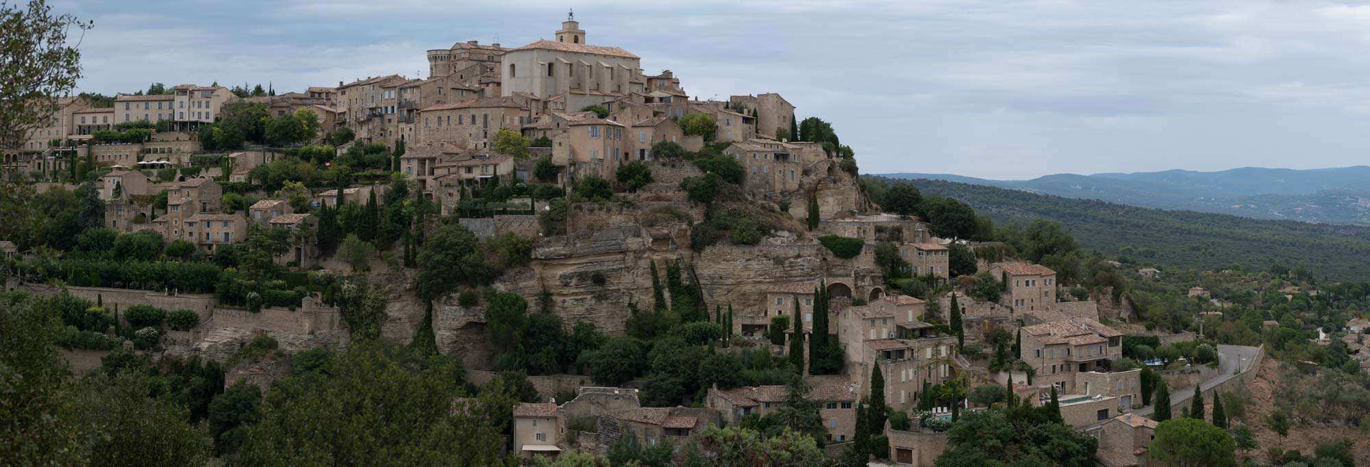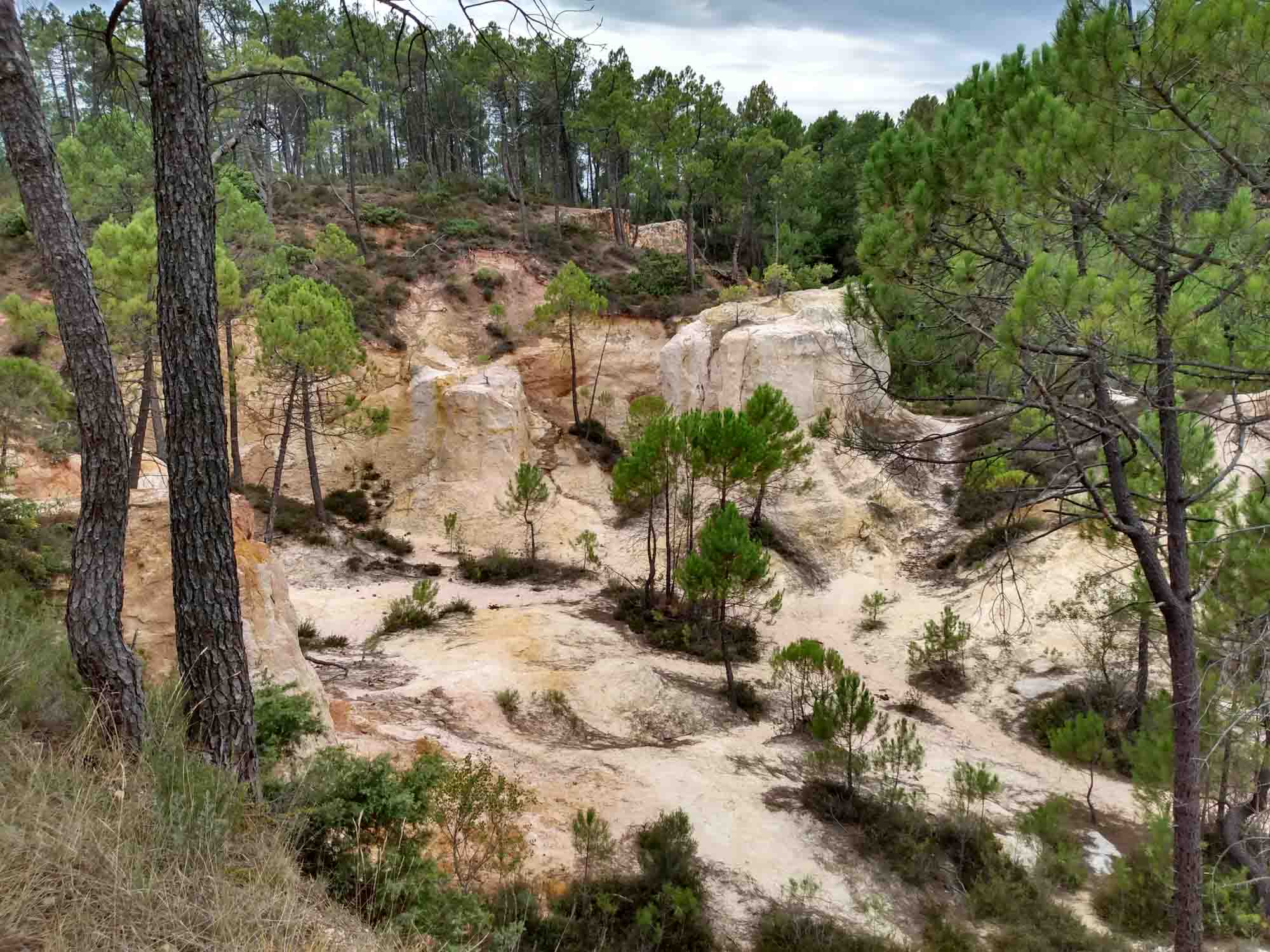 Wir bedauerten ein wenig, diesen schönen Platz zu verlassen, aber das Wetter machte uns den Abschied ein wenig leichter. Es war sehr windig und auch ziemlich bedeckt. Als erstes fuhren wir nach Apt, laut Reiseführer eine sehr sehenswerte Stadt. Den Wagen stellten wir auf einen Parkplatz unweit der Altstadt und gingen zu Fuß durch die enge Hauptgasse mit zahlreichen kleine Geschäften. Diese Straße war recht hübsch aber in der Nebengassen sahen wir recht merkwürdige Leute herumlungern. Die Kathedrale ist in der Stadt fast komplett eingebaut. Innen war sie düster und sah reichlich heruntergekommen aus. Fast würde man meinen, die Maskenpflicht in der Kathedrale wäre wegen des Schimmels an den Wänden und nicht wegen Corona. Insgesamt fühlten wir uns in der Stadt nicht wirklich wohl. Am Eingang des Parkplatzes standen zwei Polizisten und so war zumindest unser Wohnmobil gut bewacht gewesen. Wir fuhren weiter nach Roussilion, um dort die ockerfarbenen Felsen anzusehen. Leider war die Straße durch die Stadt selbst für Wohnmobile gesperrt, so dass wir außen herum fahren mussten. Wir fanden aber trotzdem ein kleines Plätzchen, an dem wir das Ockergestein bewundern konnten. Danach fuhren für zum Abbaye Notre-Dame de Sénanque, einem Kloster nahe des wunderschön auf einem Hügel gelegenen Dorfes Gordes. Diese Ansicht konnten wir uns nicht entgehen lassen. Das Kloster selbst wurde gerade restauriert und die vor dem Kloster liegenden Lavendelfelder blühten natürlich auch nicht mehr. Das Postkartenmotiv mussten wir uns daher auf den Postkarten des Klosterladens ansehen. Schließlich fuhren wir weiter und fanden auf einem kleinen Parkplatz im Wald bei Lagnes einen Platz, auf dem wir gut über Nacht stehen konnten. Zufällig lasen wir auf einem Schild, dass es hier auch noch etwas zu sehen gab. Bei einer kleinen Abendwanderung schauten wir uns daher die 500 m entfernte Pestmauer an, die während der Pest im 17. Jahrhundert errichtet wurde. Wachmänner waren entlang der ca. 20 km langen Mauer aufgestellt, um zu verhindern, das irgendwelche Personen von Süden her, wo die Pest bereits angekommen war, nach Norden kamen. Die weitere Ausbreitung der Pest wurde hier dadurch tatsächlich verhindert.