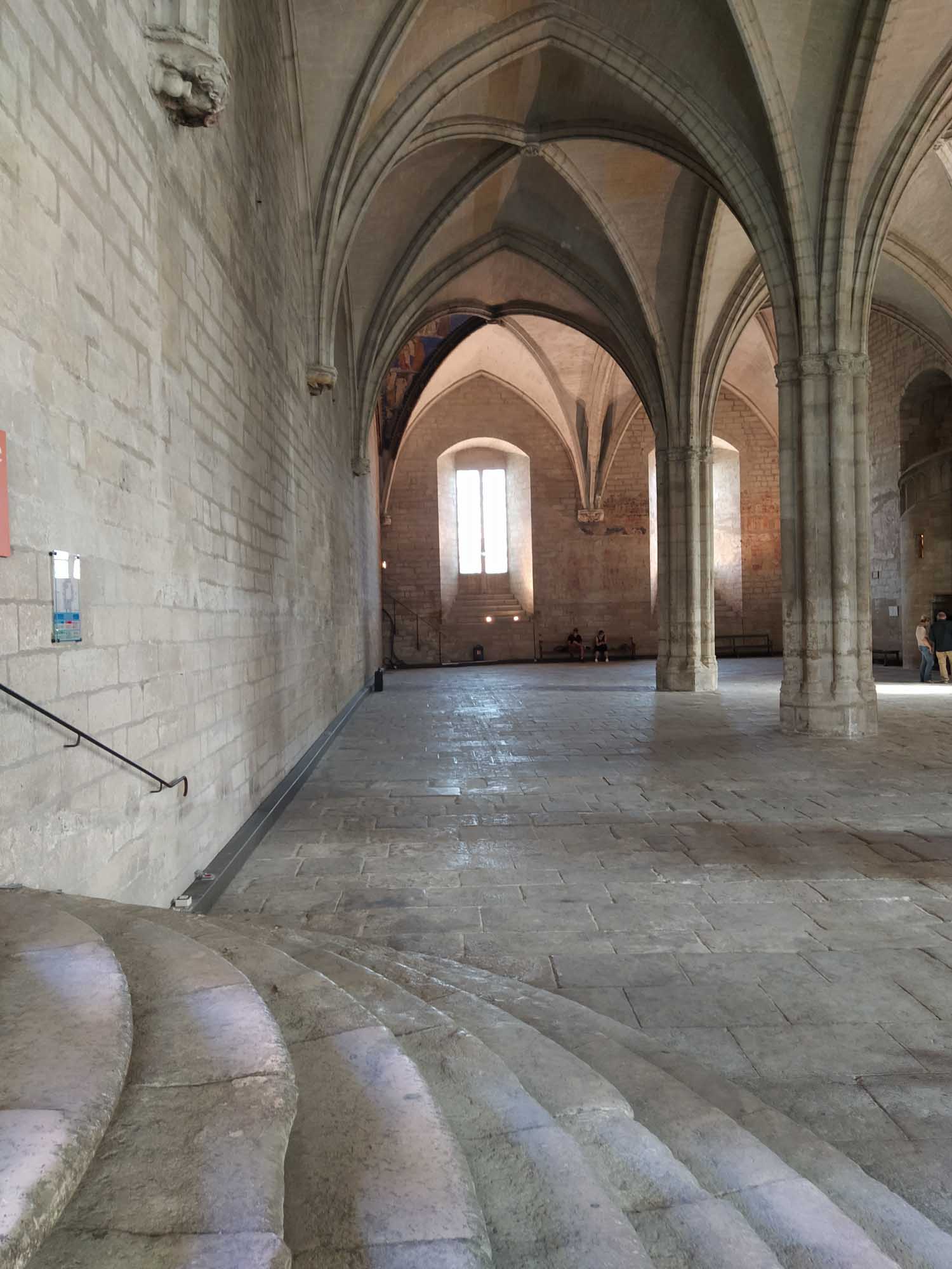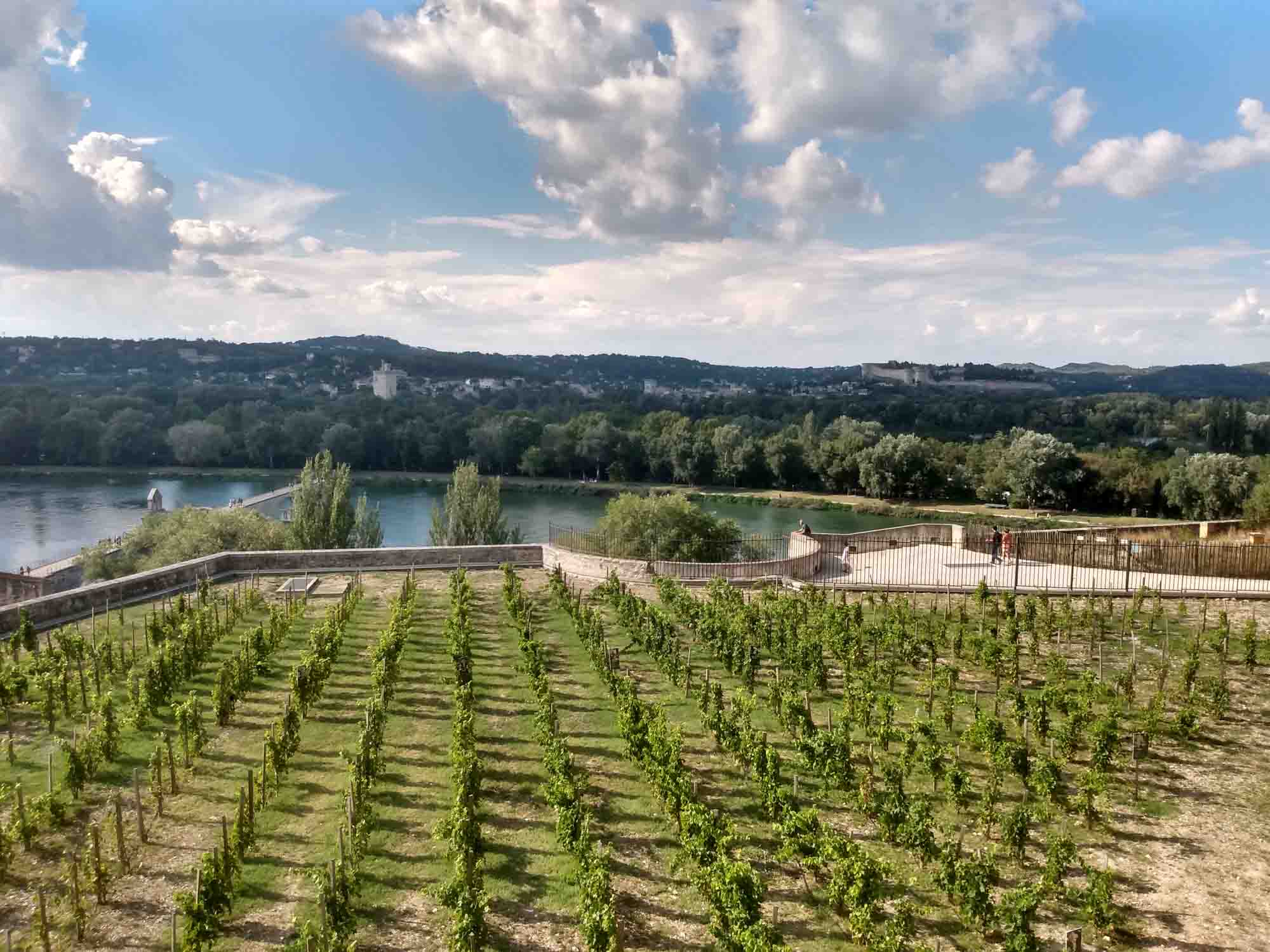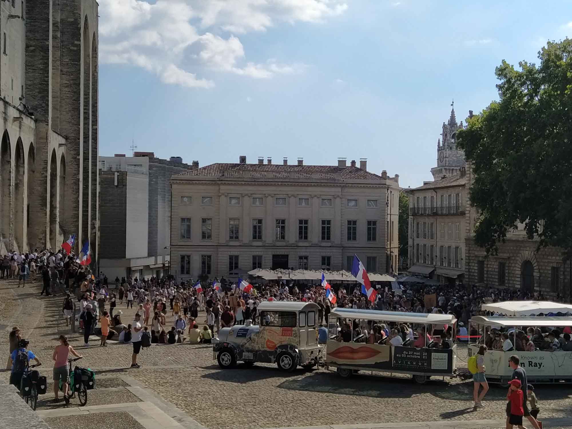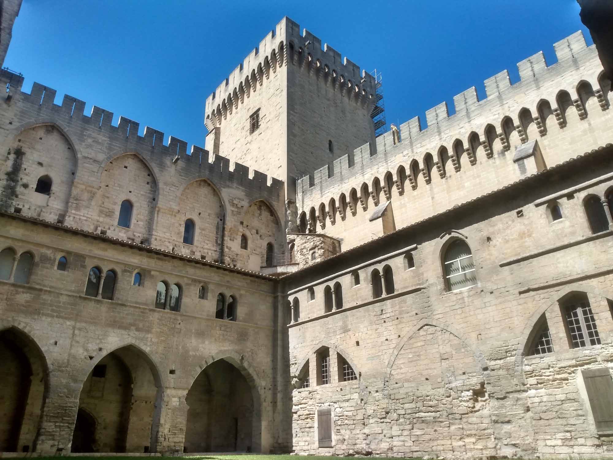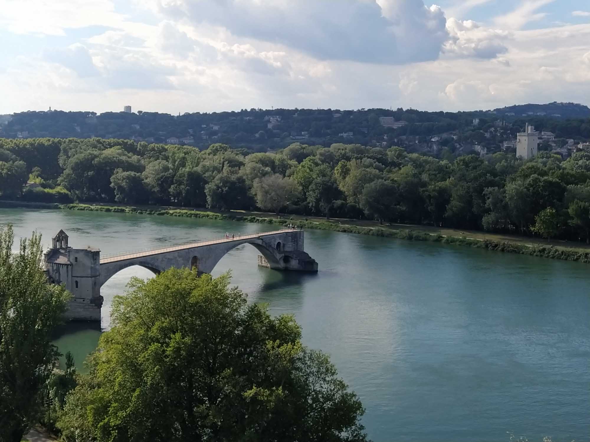 Das Wetter war wieder heil. Strahlend blauer Himmel und gefühlte 30 Grad ließen uns heute wieder schön schwitzen. Was will man mehr? Eine Stunde brauchten wir bis Avignon. Wir parkten außerhalb der Stadtmauer, die noch vollständig erhalten die gesamte Altstadt umschließt. Mit dem Fahrrad ging es dann in die Stadt. Die Altstadt ist größtenteils autofrei, was das herumschlendern sehr angenehmt machte. In der Einkaufspassage standen an einem Platz schöne alte amerikanische Wagen herum. Schon schick, so ein Caddilliac. Die Hauptattraktion ist sicherlich der Papstpalast, den wir ebenfalls besichtigten. Hier war von 1304 bis 1376 für 71 Jahre das katholische Zentrum der Welt. Der Palast wurde allerdings erst 1335 fertiggestellt. 7 Päpste lebten in dieser Zeit in Avignon. Das ist schon ganz schön lange her und man sieht es dem Bauwerk auch an. Zumindest der Teil, der den Besuchern zugänglich ist, war alt und zerfallen. Keine schönen Deckengemälde oder Wandbemalungen. Die kläglichen Reste kaum nennenswert. Es wäre schöner gewesen, einen gut restaurierten Palast zu besuchen, als sich das ganze virtuell auf den ausgehändigten Tablets anzusehen. Am Computer hätten wir uns den Palast auch zu Hause ansehen können. Aber die Größe der Räume war denn doch ein wenig beeindruckend und die animierte Darstellung vermittelte zumindest einen Eindruck, wie es vielleicht einmal gewesen sein könnte. Das Museum Le Petit Palais war unser nächstes Ziel. Hier gab es eine Sonderaususstellung italienischer Künstler. Eigentlich ganz schön. Aber es wäre vielleicht noch schöner gewesen, wenn die Ausstellung nicht ausschließlich kirchliche Motive beinhaltet hätte. Nach unzähligen Maria mit Kind, Heilige Drei Könige, Apostel und Jesusdarstellungen waren wir dann doch froh, wieder draußen zu sein. Dort erschallte laute Musik und Sprechgesang den Vorplatz des Papstpalastes. Eine Anti-Corona-Demo verschaffte sich gehör und skandierte "Liberté" (Freiheit). Nach dem, was wir gestern beim Einkaufen gesehen hatten, vielleicht auch verständlich. Vermutlich hatten sie sich nicht impfen lassen und wollten enfach mal wieder einkaufen gehen. Wie auch immer, die Stimmung war gut und Polizei war nirgends zu sehen. Wir spazierten noch ein wenig durch die oberhalb des Palastes gelegene Gartenanlage und bekamen von dort auch die berühmte Pont d'Avignon zu sehen. Die allerdings nur noch bis zur Mitte der Rhone führt. Anschließend fuhren mit den Fahrrädern zurück zum Auto und danach zum nördlich der Stadt gelegenen Fort Saint-André, einer Burganlage mit Abtei. Wir kamen allerdings dort erst um 19 Uhr an, genau die Zeit, wo die Türen der Burg abgeschlossen wurden. Trotzdem konnten wir noch kurz in das Innere gehen, das aber nicht wirklich sehenswert war. Die Silhuette der Burg von außen war viel eindrucksvoller. Zum Übernachten fuhren wir in den Nationalpark Alpilles, eine kleine bergige Landschaft südlich von Avignon. In der Dämmerung packten wir dann schnell noch unseren Grill aus. Aber die Nacht brach so schnell herein, dass wir unsere Lammkoteletts, die Schweinespieße und natürlich unser geliebtes Kräuterbaguette mit der Taschenlampe fertig grillen mussten.