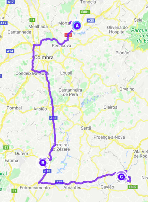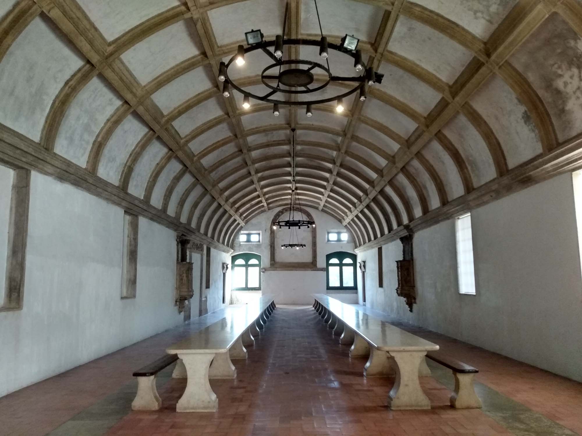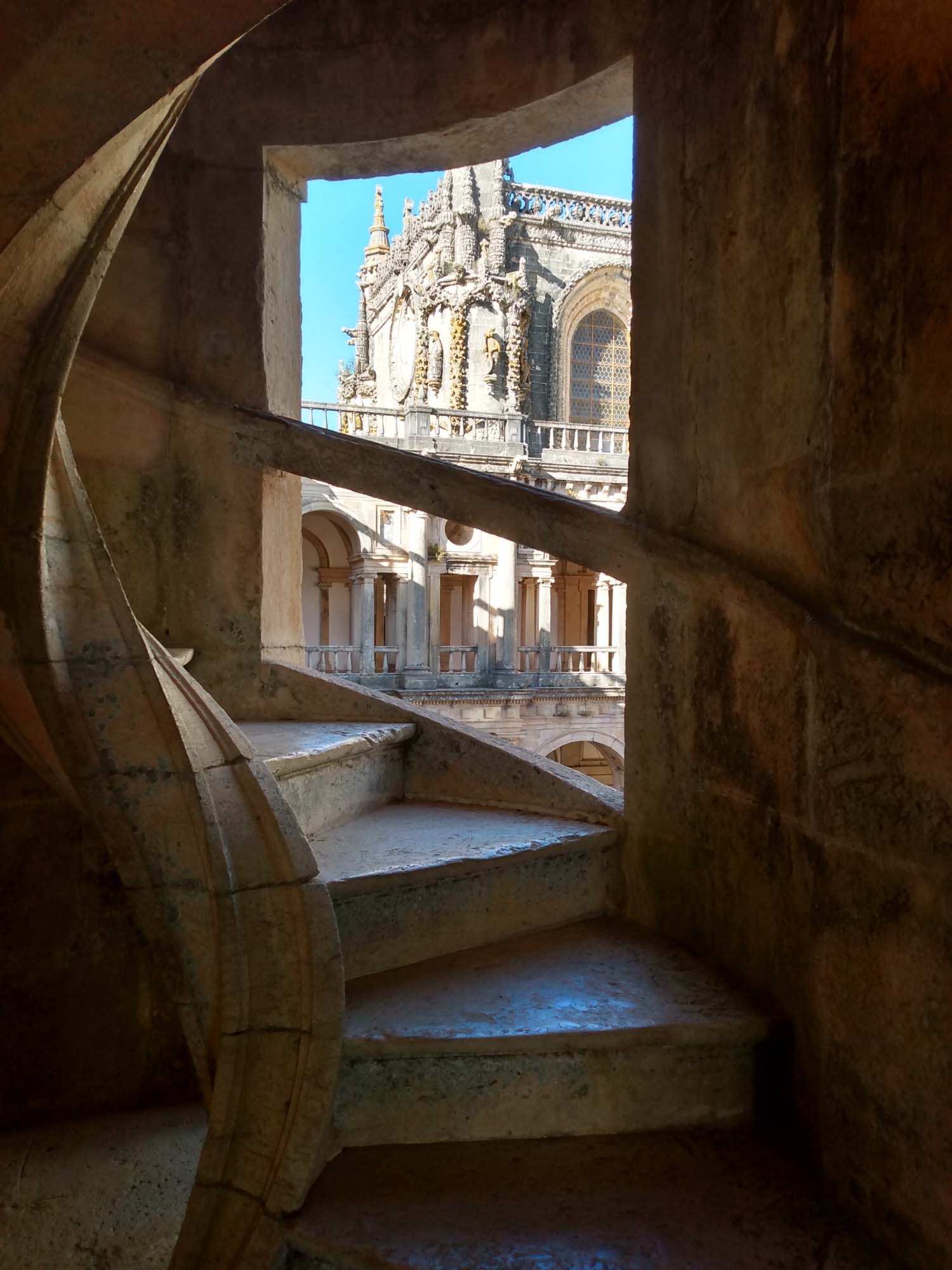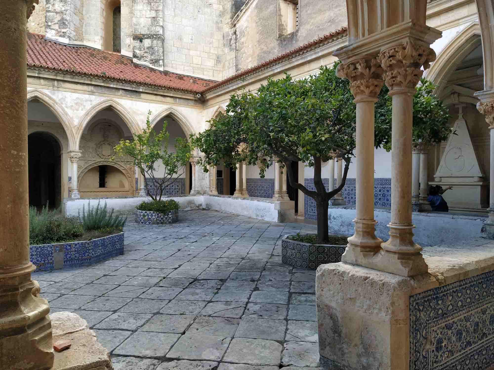 Und wieder war es ein wundervoller Tag mit herrlich viel Sonne. Die Nacht am Stausee war ruhig aber wir waren überraschend früh auf den Beinen. Das war auch gut so, denn wir hatten einiges an Strecke vor uns. Über Coimbra fuhren wir nach Tomar. Dort steht das recht gut erhaltene Kloster des Templerordens. Der Bau begann 1160, nachdem dort der Orden gegründet worden war. Insbesondere die Kirche mit einem beeindruckenden Altar, bestehend aus 8 zentralen Säulen und einer großen reich bemalten Kuppel über den Säulen und einem kleinen Rundgang ist sehr sehenswert. Der Rest der Anlage war mal gut, mal weniger gut erhalten. Man konnte jedoch auf jeden Fall den Eindruck gewinnen, dass es sich die Klosterbrüder hier haben gut gehen lassen. Zu unserem Stellplatz war es diesmal etwas weiter als üblich. Die Sonne war bereits untergegangen, als wir unseren Platz an einer stillgelegten Fähre über den Tejo bei Amieira do Tejo erreichten. Dafür waren wir wieder einmal alleine und hörten nur noch die Glocken der in der Nähe weidenden Kühe.