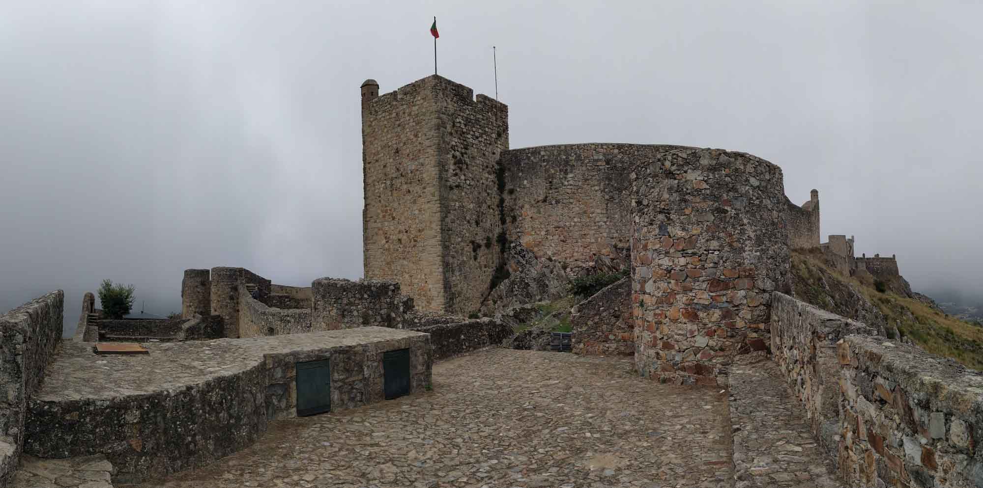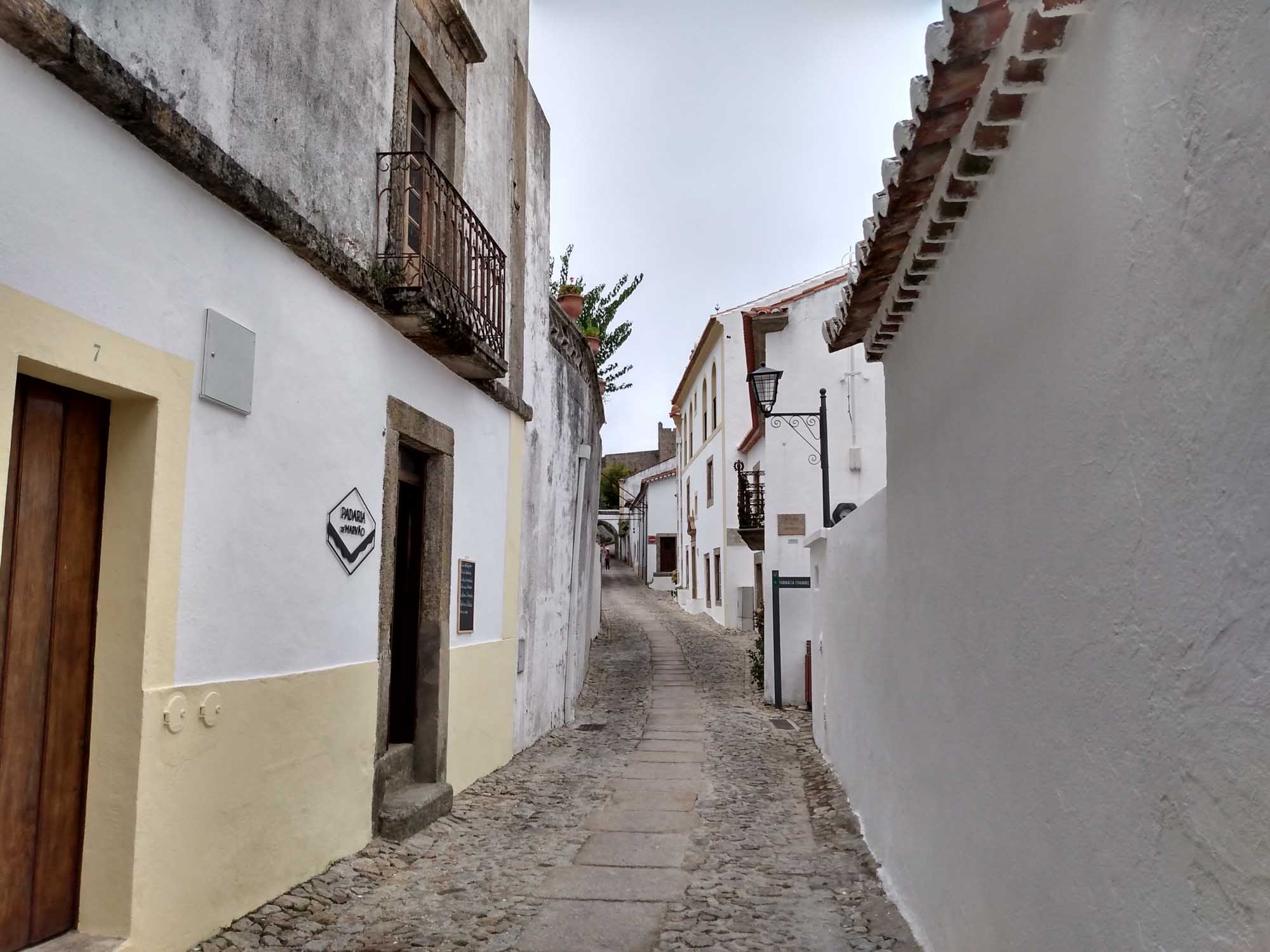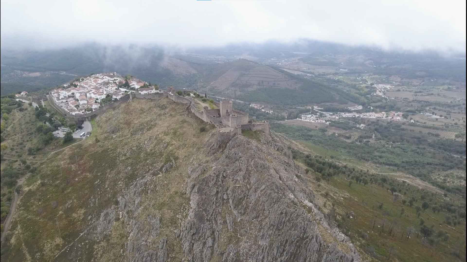 Morgens weckte uns eine Schar Wanderer, die sich just unseren einsamen Platz ausgesucht hatten, um ihre Wanderung zu beginnen. Auto um Auto kam und schnell war der kleine Parkplatz überfüllt. Die Fähre, die nach unseren Informationen stillgelegt sein sollte, sah bei näherer Betrachtung ziemlich neu aus. Sie hatte sogar Solarpanels auf dem Dach. Und siehe da, heute war der Tag, an dem die Fähre ihren Betrieb wieder aufnahm. Ganz leise fuhr sie bei ihrer ersten Leerfahrt über den Tejo. Für uns war die Fähre etwas zu klein, so dass wir nicht übersetzen konnten. Wir wollten aber ohnehin nach Süden und fuhren als erstes nach Marvão. Dort liegt auf einem Berg eine ehemalige Grenzfestung zu Spanien, die wir besichtigten und dabei ausgiebig auf den Mauern herumkletterten. In der darunter liegenden Stadt sind die Häuser alle herrlich weiß und man kann sehr schön durch die schmalen Gassen schlendern. Leider lag die Festung zunächst noch in Wolken und ringsherum hing der Nebel, so dass uns die schöne Aussicht auf Spanien noch verwehrt war. Später, als wir auch unseren obligatorischen Drohnenflug absolviert hatten und weiterfuhren, kam dann die Sonne heraus und wir bekamen doch noch den versprochenen Ausblick. Da Spanien in Reichweite war, fuhren wir kurzentschlossen zum Einkaufen und Tanken nach Badajoz. Das Preisniveau in Spanien ist erheblich niedriger, so dass sich dieser kleine Abstecher lohnte. Unterwegs hielten wir ein paarmal, um einzusammeln, was am Wegrand stand: Ein paar Feigen, Maronen natürlich und frische Kaktusfeigen, die wir von einem Kaktus pflückten. Nach dem Einkaufen waren wir zudem noch mit zwei frischen Fischen sehr gut versorgt. Unseren Stellplatz für die Nacht am Fluss Guadiana erreichten wir erst nach Sonnenuntergang. Aber nach einer kurzen Erkundung mit der Taschenlampe erschien er uns ganz brauchbar und zumindest heute Nacht nicht hochwassergefährdet zu sein.
