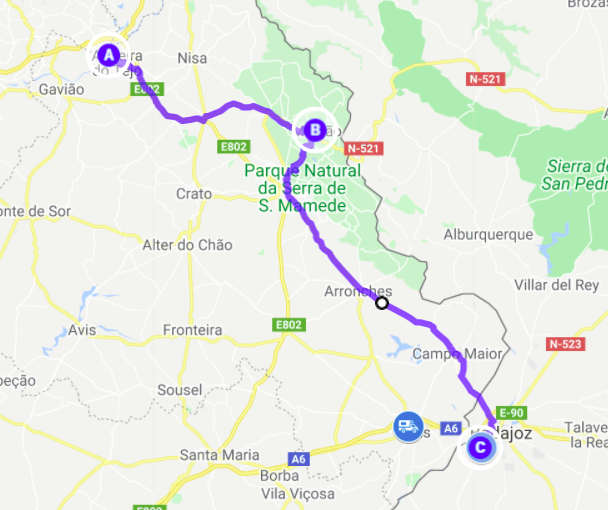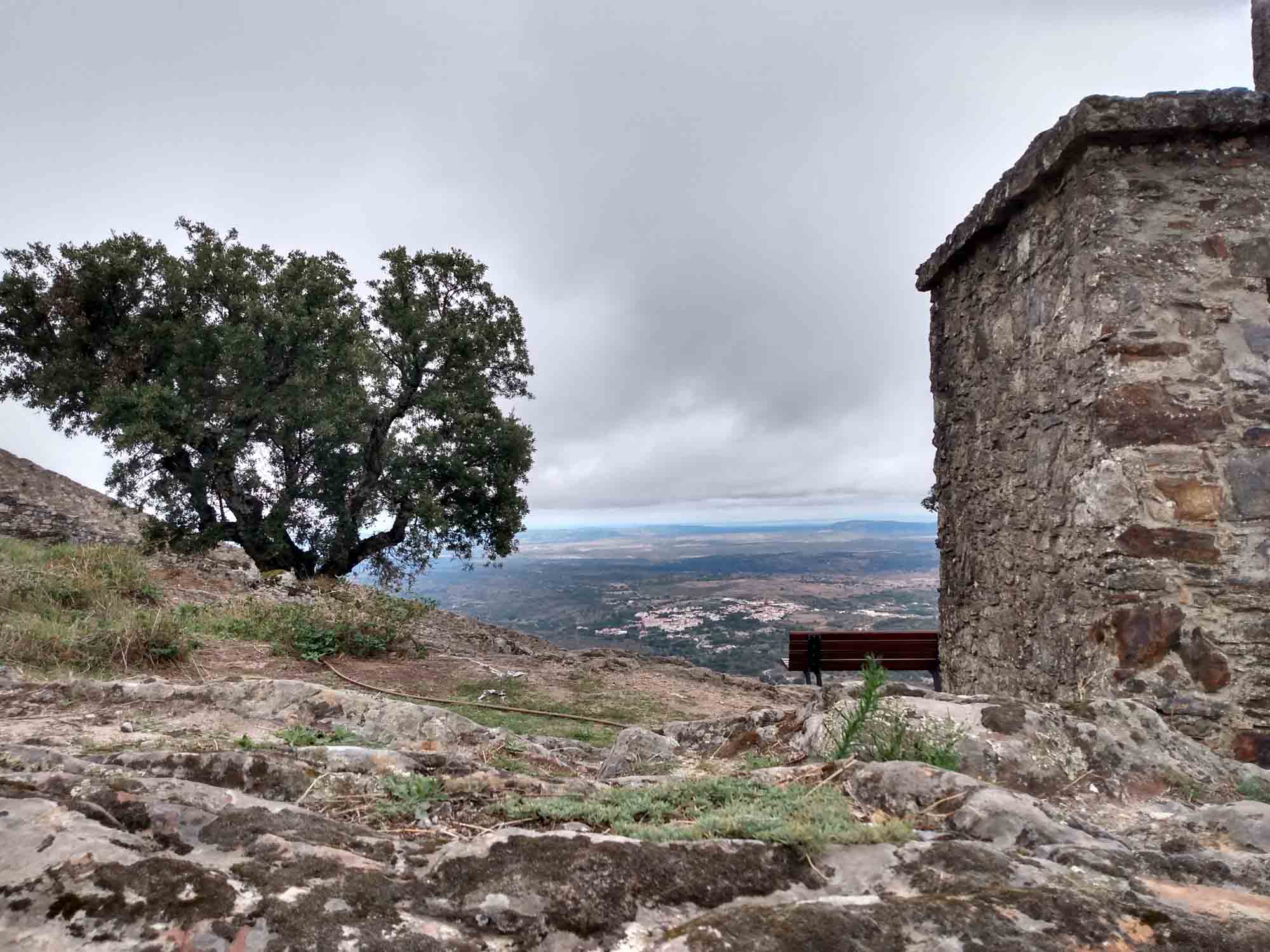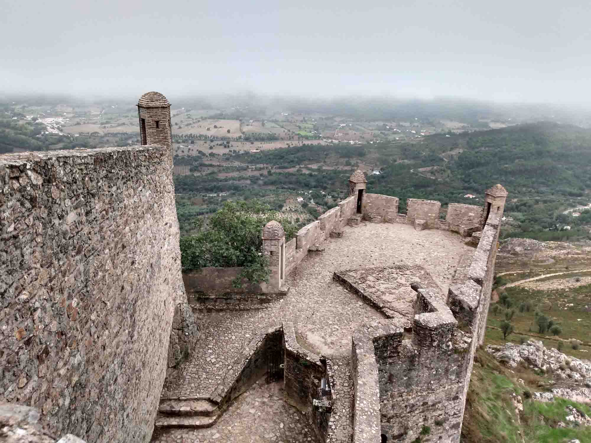 Morgens weckte uns eine Schar Wanderer, die sich just unseren einsamen Platz ausgesucht hatten, um ihre Wanderung zu beginnen. Auto um Auto kam und schnell war der kleine Parkplatz überfüllt. Die Fähre, die nach unseren Informationen stillgelegt sein sollte, sah bei näherer Betrachtung ziemlich neu aus. Sie hatte sogar Solarpanels auf dem Dach. Und siehe da, heute war der Tag, an dem die Fähre ihren Betrieb wieder aufnahm. Ganz leise fuhr sie bei ihrer ersten Leerfahrt über den Tejo. Für uns war die Fähre etwas zu klein, so dass wir nicht übersetzen konnten. Wir wollten aber ohnehin nach Süden und fuhren als erstes nach Marvão. Dort liegt auf einem Berg eine ehemalige Grenzfestung zu Spanien, die wir besichtigten und dabei ausgiebig auf den Mauern herumkletterten. In der darunter liegenden Stadt sind die Häuser alle herrlich weiß und man kann sehr schön durch die schmalen Gassen schlendern. Leider lag die Festung zunächst noch in Wolken und ringsherum hing der Nebel, so dass uns die schöne Aussicht auf Spanien noch verwehrt war. Später, als wir auch unseren obligatorischen Drohnenflug absolviert hatten und weiterfuhren, kam dann die Sonne heraus und wir bekamen doch noch den versprochenen Ausblick. Da Spanien in Reichweite war, fuhren wir kurzentschlossen zum Einkaufen und Tanken nach Badajoz. Das Preisniveau in Spanien ist erheblich niedriger, so dass sich dieser kleine Abstecher lohnte. Unterwegs hielten wir ein paarmal, um einzusammeln, was am Wegrand stand: Ein paar Feigen, Maronen natürlich und frische Kaktusfeigen, die wir von einem Kaktus pflückten. Nach dem Einkaufen waren wir zudem noch mit zwei frischen Fischen sehr gut versorgt. Unseren Stellplatz für die Nacht am Fluss Guadiana erreichten wir erst nach Sonnenuntergang. Aber nach einer kurzen Erkundung mit der Taschenlampe erschien er uns ganz brauchbar und zumindest heute Nacht nicht hochwassergefährdet zu sein.