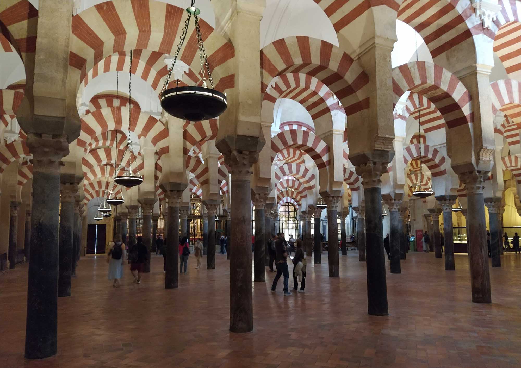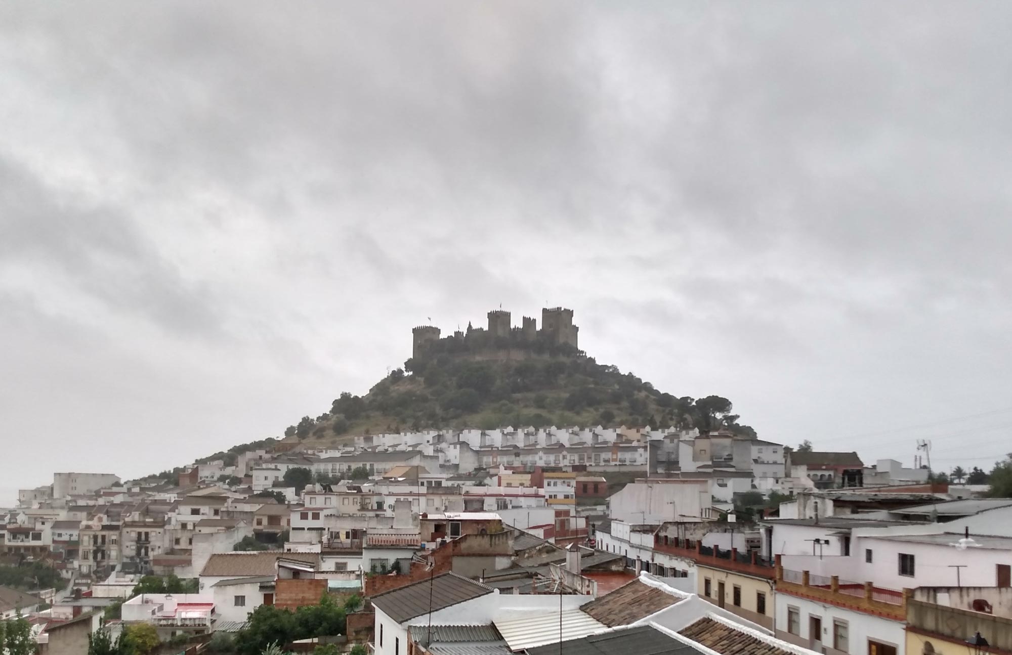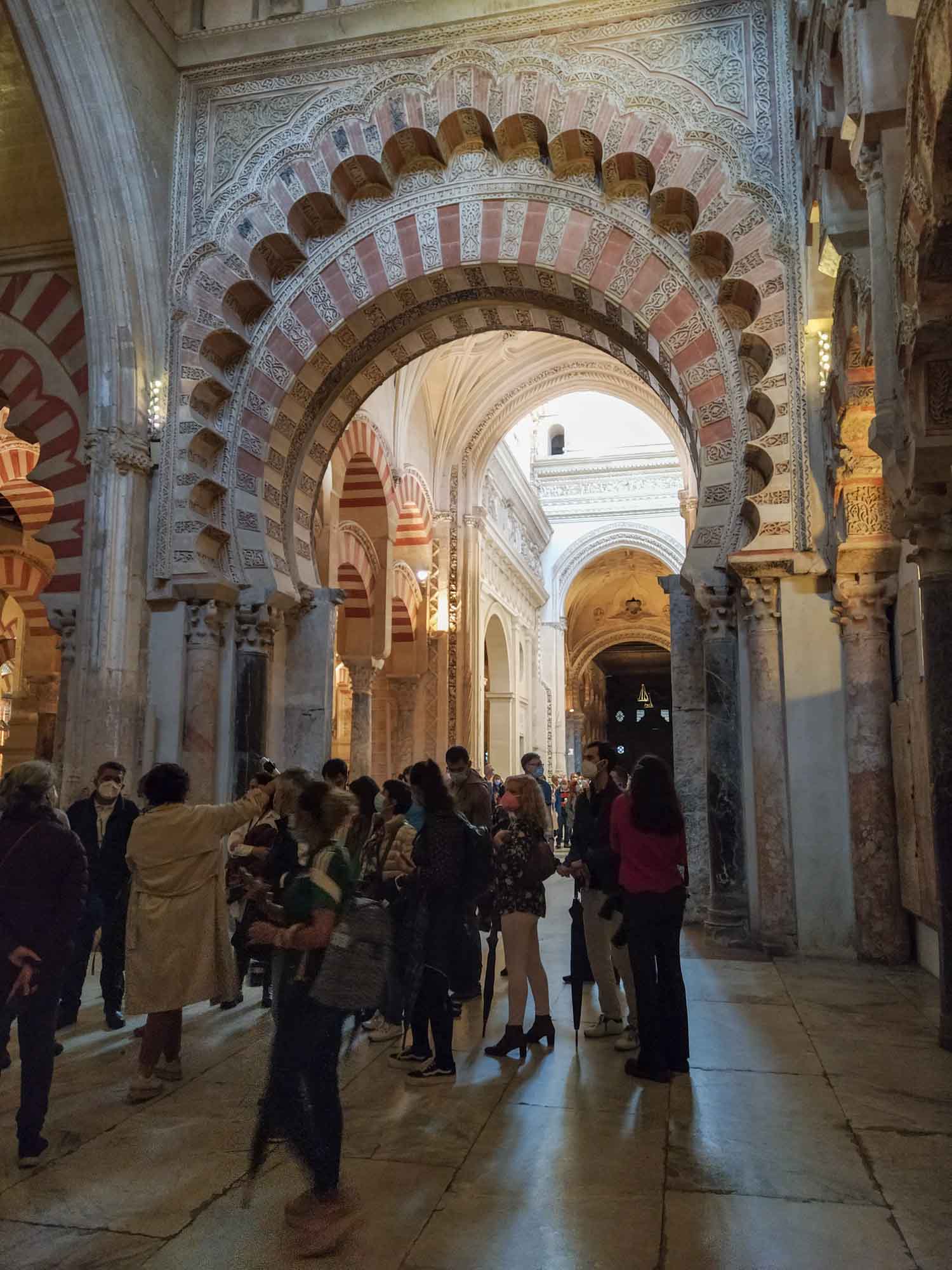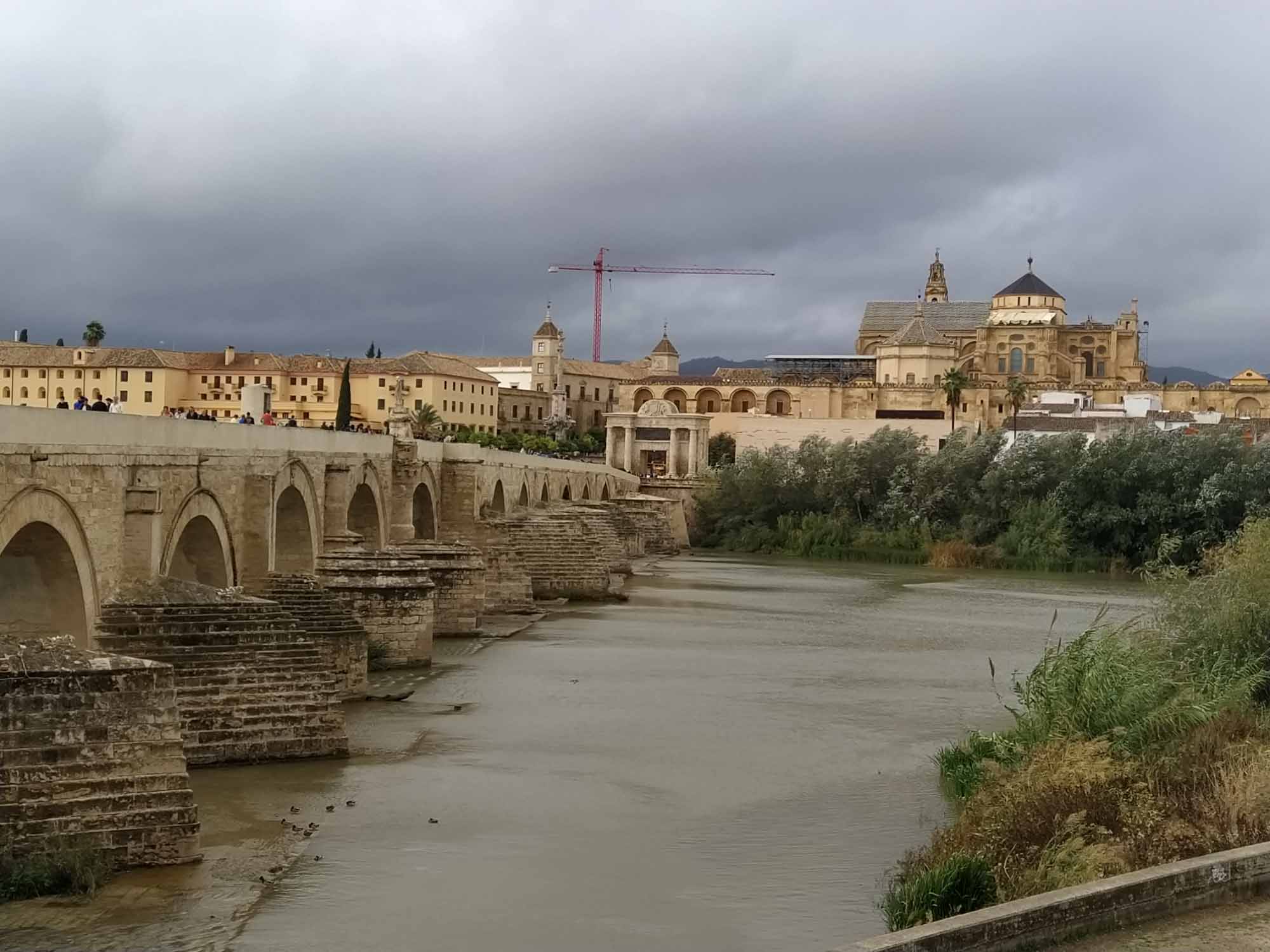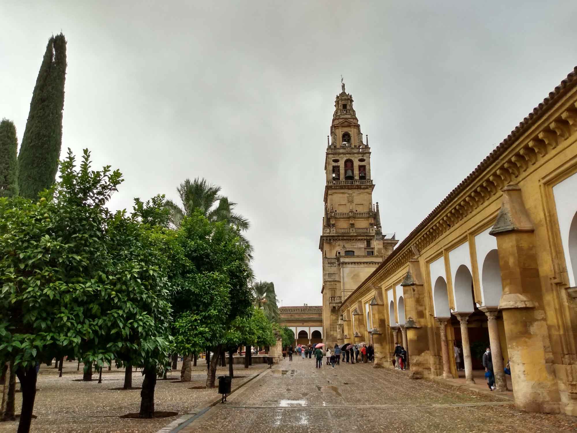 In der Nacht hatte es angefangen, zu stürmen und es dauerte auch nicht mehr lang, bis es anfing zu regnen. Heftig peitschte der Wind seitwärts. Draußen konnten wir so nicht sitzen. Stattdessen machten wir einen kleinen Ausflug nach Córdoba. Auf dem Weg dorthin fuhren wir nach Almodóvar del Rio, wo wir auf der Fahrt zu unserem Übernachtungsplatz ein Castillo gesehen hatten, das malerisch auf einem Berg thronte. Für die Drohne war es zu windig und zu nass, aber wir haben uns schon mal einen Startplatz ausgeguckt. In Córdoba parkten wir gegenüber der alten römischen Brücke und hatten nur einen kurzen Weg über den Fluß zur Kathedrale. Die Mezquita Cathedral de Córdoba ist schon etwas ganz besonders und vermutlich einmalig auf der Welt, da hier die muslimische und die christliche Relegion zumindest baulich in völliger Harmonie ineinander aufgehen. Tatsächlich wurde die Kathedrale auf einer großen Moschee aufgebaut, allerdings wurde diese in den neuen Bau integriert, so dass eine wirklich gelungene Mischung entstanden ist. Einzig die unglaublich vielen Besucher trübten das Bild ein wenig. So langsam kehrt wohl auch bei den Touristen wieder so etwas wie Normalität ein. Danach schlenderten wir durch das vermutlich älteste Judenviertel der Welt. In den engen Gassen der Altstadt gibt es zahlreiche kleine Geschäfte aber auch Museen und eine Synagoge aus dem 13. Jahrhundert, die eigentlich nur aus einem kleinen Raum besteht. Zum Schlafen fuhren wir zu unserem letzten Platz zurück und hofften auf besseres Wetter am nächsten Tag.