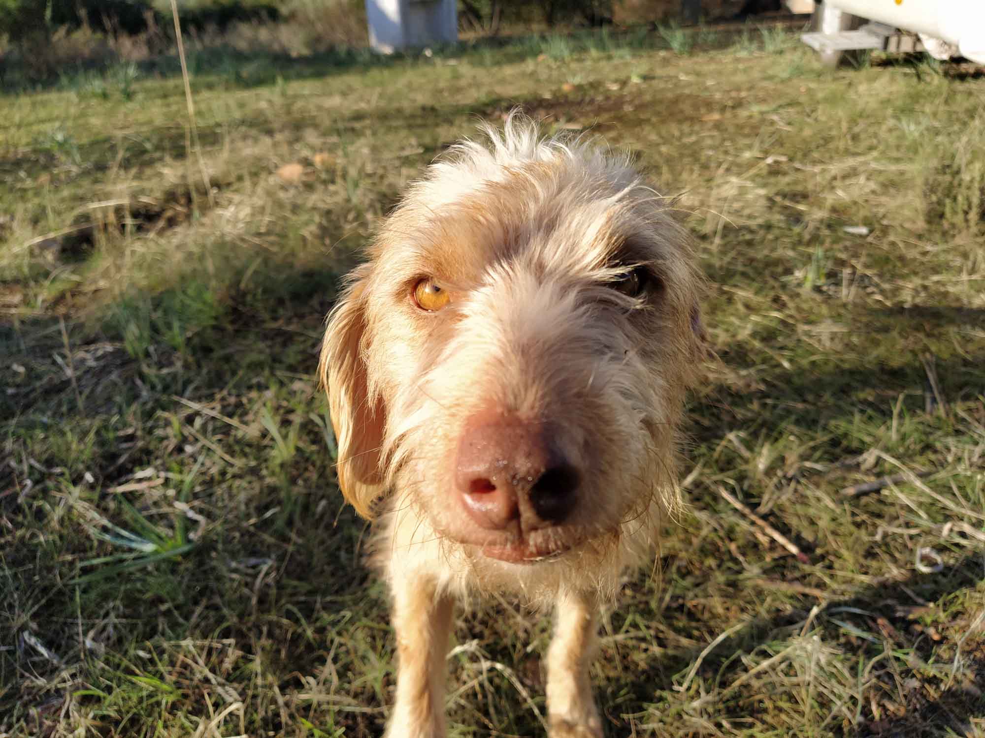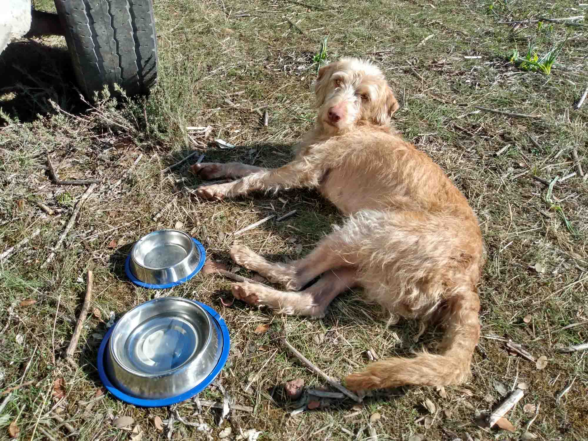 Berta begrüßte uns am Mitwochmorgen freudig, als wir nach dem Aufstehen die Tür öffneten. Sie hatte unter dem Auto geschlafen und offensichlich nur auf uns gewartet. Die notwendigen Gänge, egal ob groß oder klein, begleitete sie sowieso. Wir machten noch einen ausgiebigen gemeinsamen Spaziergang und auch hier begleitete sie uns perfekt. Sie stromerte mal hier- und mal dorthin, blieb aber immer bei uns. Damit war die Entscheidung für sie offensichtlich gefallen: Sie wollte adoptiert werden. Wir dagegen, waren uns nicht ganz so sicher. Hin- und hergerissen zwischen dieser unglaublich gutmütigen und lieben Hündin, die uns sofort ins Herz geschlossen zu haben schien und alle anderen auf dem Platz vollständig ignorierte und unseren Plänen, zu denen ein Hund so gar nicht passte. Immer wenn wir auf andere Reisende mit Hunden trafen, sagten wir uns, wie schwierig das sein müsste. Und so eng. Und der Geruch, wenn der Hund naß ist. Mit einem Hund kann man nirendwo rein. Man kann sich nicht mehr so einfach an den Strand legen. Und was sagt der Vermieter dazu? Wie würde sich sich in einer Stadt fühlen? Hat sie es hier in der Freiheit nicht vielleicht sogar besser? Es gab so viele gute Gründe, es nicht zu tun. Aber am Ende setzte sich dann doch das Herz durch und wir machten wir uns schlau, was man braucht, wenn man einen Hund aus Spanien nach Deutschland bringen möchte. Eigentlich nicht viel, wie wir schnell feststellten und alles vom Tierarzt: Natürlich muss der Hund gegen Tollwut geimpft sein und dazu gehört ein Chip, mit dem der Hund identifiziert werden kann. Das Ganze wird in einem Ausweis dokumentiert. Nach 21 Tagen gilt der Hund dann als geimpft und darf in Deutschland einreisen. Also musste der Hund zum Tierarzt. Im knapp 20 km entfernten La Carlota gab es sogar zwei Tierärzte. Der erste hatte keine Öffnungszeiten, sondern nur eine Telefonnummer und der zweite hatte bereits geschlossen und öffnete seine Praxis erst wieder morgen um 9:30 Uhr. Jetzt hatten wir nur noch das Problem, Berta in das Auto zu bringen. Aber all die Nähe, die wir aufgebaut hatten, half nicht. Sie ließ sich partout nicht zum Einsteigen bewegen. So fuhren wir dann trotzdem los, um zumindest mit dem Tierarzt zu sprechen und ein paar Einkäufe zu erledigen. Aber so einfach kamen wir nicht weg, denn Berta lief dem Wagen hinterher. Am Tor zu dem Picknickplatz, auf dem wir standen, hielten wir noch einmal, aber auch diesmal wollte sie nicht einsteigen. Das gleiche wiederholte sich noch ein paarmal auf der 1,8 km langen Schotterstraße und erst als wir trotz der vielen Löcher in der Straße knapp 50 km/h fuhren, kam sie nicht mehr hinterher. Mit etwas flauem Gefühl in der Magengegen fuhren wir in die Stadt und kauften ein, u.a. einen großen Sack Hundefutter. Bei der Tierarztpraxis fuhren wir auch noch vorbei, aber sie war geschlossen. Also würden wir es am nächsten Tag noch einmal versuchen müssen. Auf dem Rückweg kam uns Berta auf dem Schotterweg rennend entgegen. Auch diesmal versuchten wir mehrmals, sie zum einsteigen zu bewegen. Sie zog es jedoch vor, etwas langsamer als zuvor hinter dem Auto herzulaufen, um uns dann noch herzlicher als zuvor zu begrüßen, als wir wieder auf unserem Platz waren und austiegen. Den Rest des Nachmittags verbrachten wir draußen, Berta immer in unserer Nähe, bis Franz, unser Platznachbar mit seinem Hund Flocke vorbeikam und wir gemeinsam grillten und bis tief in die Nacht noch zusammensaßen und klönten. Tief in die Nacht bedeutete 20 Uhr, dann wurde es schnell so kalt, dass wir uns alle lieber in unsere Autos verzogen. Und siehe da, mit ein wenig Futter, konnten wir Berta dann doch noch zum Einsteigen überreden. Sie hüpfte ins Wohnmobil, legte sich auf die Decke, die wir an der Tür für die hingelegt hatten und schlief sofort ein. Etwas später, als Aneta noch einmal nach draußen ging, sprang sie ebenfalls hinaus. Wir dachten erst, dass sie es vielleicht doch vorzog, wieder unter dem Auto zu schlafen, als wir es laut schlabbern hörten. Sie hatte einfach nur Durst, trank schnell, lief dann zu uns zurück, sprang wieder hinein, legte sich hin und schlief weiter.