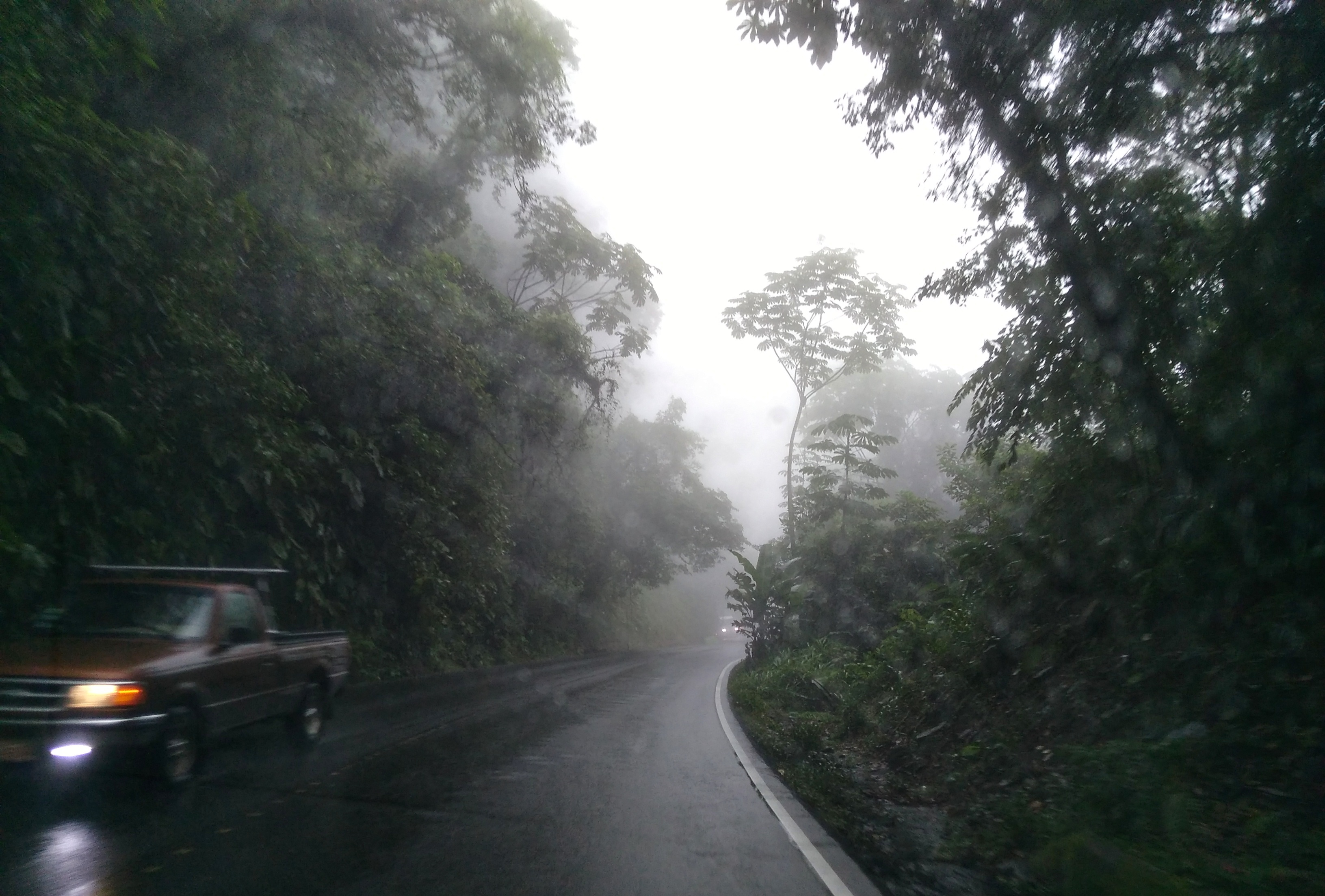 Heute wollten wir einen Ausflug zum Nationalpark Braulio Carrillo machen. Dort gibt es die Möglichkeit, auf einer kleinen Seilbahn in 30 m Höhe durch den Regenwald zu fahren und die Tiere zu beobachten. Das Wetter spielte heute aber leider nicht mit: Kurz bevor wir dort ankamen fing es kräftig an zu regnen und wir hatten unsere Regenjacken im Appartement gelassen. Durch mystische Nebelschwaden fuhren wir zurück nach San Jose und gingen stattdessen dort in der Innenstadt spazieren. Auf dem Heimweg hielten wir noch bei einer Pizzeria und nahmen und dort eine große Pizza mit, die wir genüsslich verspeisten, bevor wir früh zu Bett gingen. Morgen wollen wir um 6:00 Uhr aufstehen, um zeitig beim Irazu-Vulkan zu sein.
