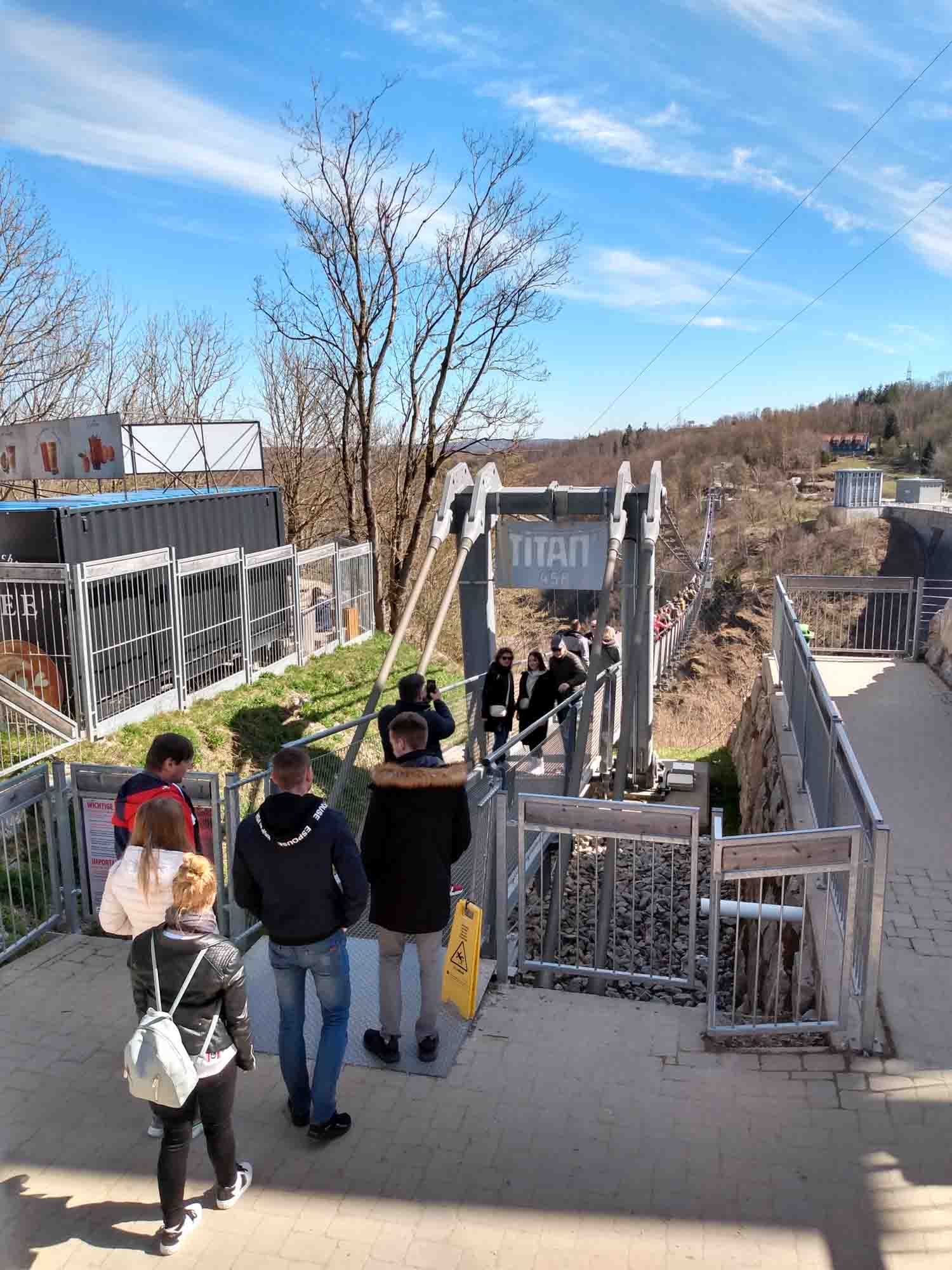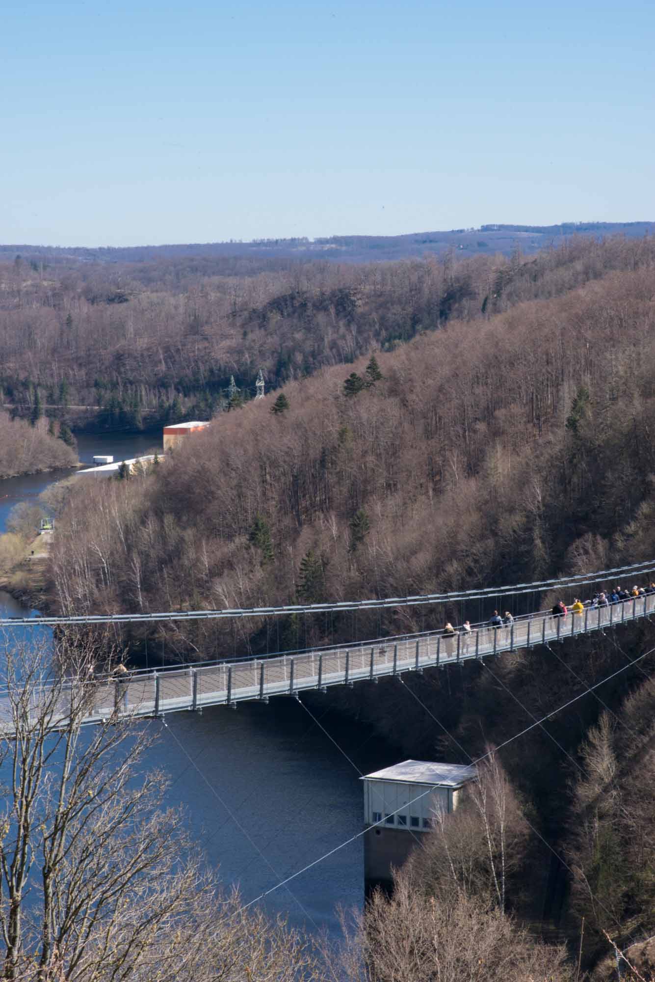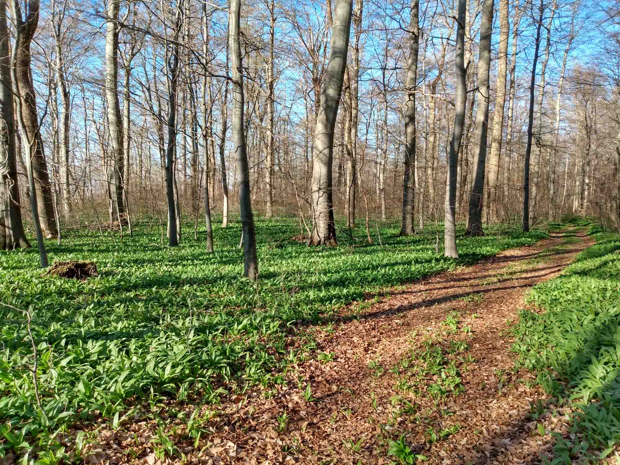Wir sind sehr früh aufgewacht und freuten uns über einen tollen Morgenspaziergang durch den Wald. Abseits der Wege liefen wir durch den lichten Kiefernwald und bekamen sogar zwei Rehe zu sehen. Danach machten wir uns auf in Richtung Harz. Über Braunschweig und Wernigeroge, das wir vor zwei Jahren bereits erkundet hatten, fuhren wir zur Rapptalsperre. Dort gibt es auch parallel zur Straße eine Hängebrücke für Fußgänger. Ganz Wagemutige können auch an einer Seilrutsche auf die andere Seite fahren. Die Frage, ob es auch mit Hund möglich wäre, über die Hängebrücke zu gehen, stellte sich nicht: Die Warteschlange war so lang, dass es über einer Stunde gedauert hätte, bis wir hätten gehen können. So beließen wir es bei einem kleinen Spaziergang und dem Ausblick auf die beiden Brücken. Danach ging es weiter nach Nordhausen, wo wir zwei Campingstühle abholen konnten, die wir bei Ebay gekauft hatten. Unsere alten Faltstühle haben langsam ausgedient und die neuen sind doch deutlich bequemer, auch wenn es in unserer Heckgarage langsam etwas eng wird. Schließlich fuhren noch ein Stück weiter, wo wir beim "Rondell" einen schönen einsamen Platz gefunden haben. Beim Spaziergang durch den Wald, dessen Boden mit Bärlauch bedeckt war, sammelten wir ein paar Blätter, mit denen wir dann unsere Bratkartoffeln würzen konnten.