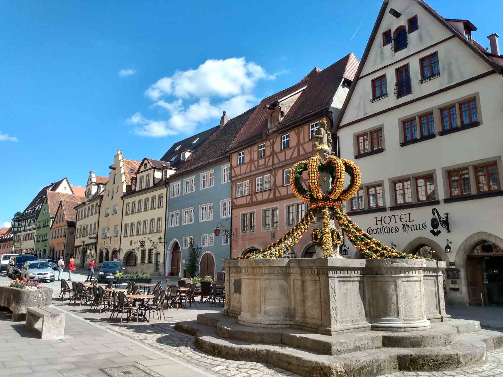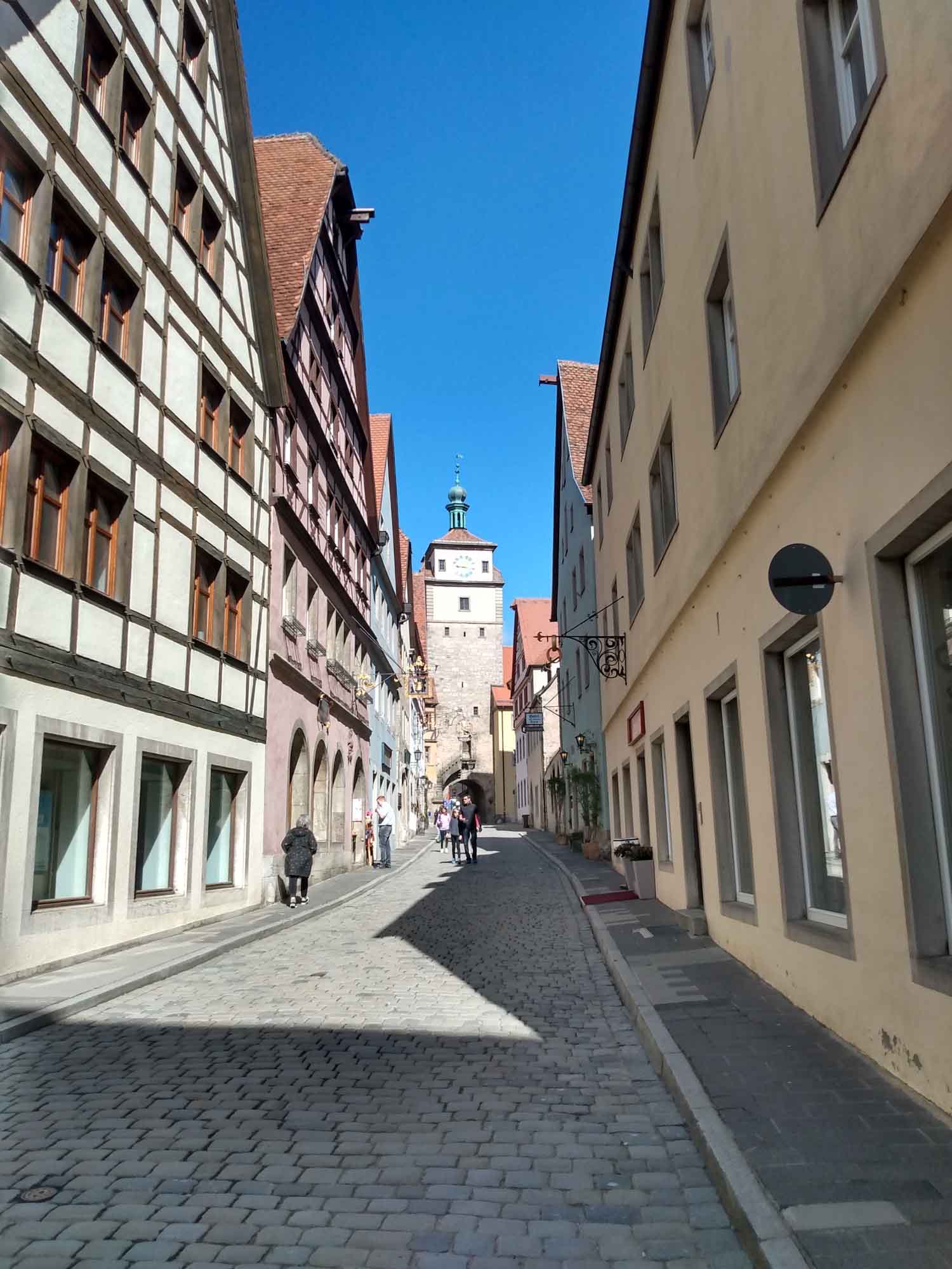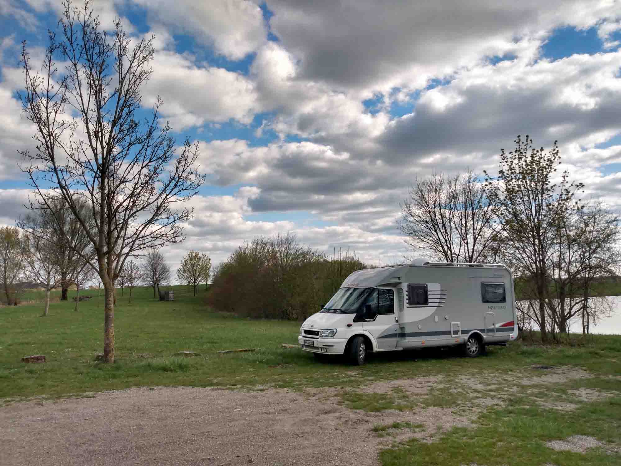 Morgens verabschiedeten wir uns mit einem einstündigen Spaziergang vom Thüringer Wald und machten uns weiter auf in Richtung Süden. Ursprünglich wollten wir bis nach Ulm. Nachdem uns Google aber etwas von 350 km und einer Fahrzeit von 5 1/2 Stunden erzählt hat, wollten wir zumindest heute nicht mehr dorthin. Stattdessen peilten wir Ansbach an, weil es dort in unserer allgemeinen Fahrtrichtung die nächste Filiale von Carglass gibt. Etwa ein Jahr hat unsere neue Windschutzscheibe immerhin durchgehalten bis sie gestern erneut von einem Steinchen getroffen wurde, den ein eiliger Thüringer hochgeworfen hatte, als er uns überholte. Dieses mal aber nicht im Sichtbereich des Fahrers, so dass es gute Chancen gibt, dass die Scheibe repariert werden kann und nicht erneut ausgetauscht werden muss. Zufällig unterhielten wir uns bei der Fahrt über den schönen Ort Rothenburg ob der Tauber und wie es der Zufall wollte, waren wir kurz davor. Also machten wir einen kleinen Schwenk und verlagerten unseren Nachmittagsspaziergang in die mittelalterliche Stadt mit der alten begehbaren Stadtmauer. Das Weihnachtsmuseum haben wir nicht besucht. Wir waren kurz nach Ostern noch nicht wieder in Weihnachtsstimmung. Aber die steilen Stufen auf die Stadtmauer, den engen Weg auf der Mauer und natürlich den noch viel steileren Abstieg ließen wir uns nicht entgehen. Danach fuhren wir noch etwa 20 Minuten in Richtung Ansbach zu unserem nächsten Stellplatz. Einem sonnigen Plätzchen an zwei kleinen künstlichen Bade- und Angelseen. Vor dem Abendessen machten wir noch einen Spaziergang und genossen noch ein wenig die letzten Sonnenstrahlen, bevor wir uns zum Abendbrot in unseren Forti verzogen.