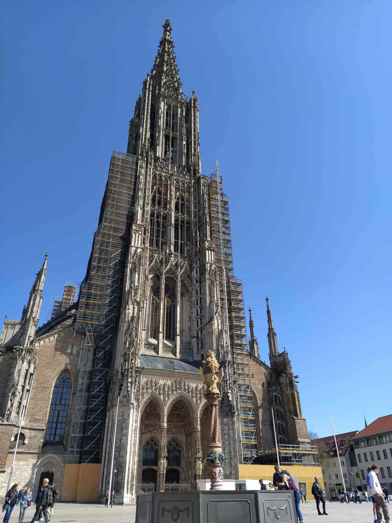 Die erste Fahrt führte uns heute nach Ansbach. Bei Carglass ging es sehr schnell. Der nette Mitarbeiter verkündete in herrlichstem Bayrisch, dass des ka Ding sei und das es nu a Schrammerl und Abblatzer isch. Also kein Problem und zum Glück nichts, was repariert werden müsste. So konnten wir gleich weiter nach Ulm fahren. Die Strecke führte uns an Oettingen vorbei, direkt an der Brauerei. Man könnte meinen, wir interessierten uns für Bier. Zuletzt Pilsen, Bitburg, Warstein und jetzt Oettingen. In Ulm wurden wir von recht unschönen Schildern mit einem grünen Symbol begrüßt, die uns die Weiterfahrt etwas erschwerten. Ulm hat eine Umweltzone, die wir erst einmal herausfinden und anschließend großzügig umfahren durften. Ob es der Umwelt wirklich dient, dass wir so eine knappe Stunde länger unterwegs waren? Aber wir erreichten trotzdem unser Ziel auf der Südseite der Donau von wo aus wir knapp 3 km zu Fuß in die Altstadt spazierten. Dort haben wir uns den Münster angesehen und sind noch ein wenig durch die Altstadt gewandert, bevor wir uns auf den Rückweg machten. Danach ging es weiter zu unserem nächsten Stellplatz. Diesmal an einem kleinen Stausee, dem Oberegger Stausee, den wir nach dem Abendessen (heute haben wir den Grill ausgepackt) noch bei einem kleinen Spaziergang umrundet haben. Dabei flüchtete sich ein Biber vor uns ins Wasser und begleitete uns dann schwimmend und tauchend ein Stück. Toll, dass es noch Gegenden gibt, in denen solche Tiere leben können.