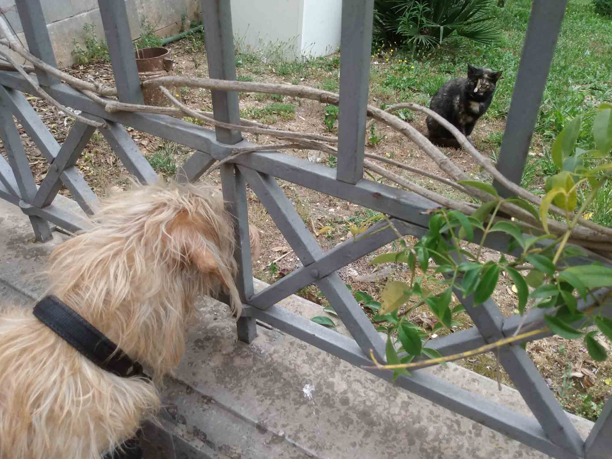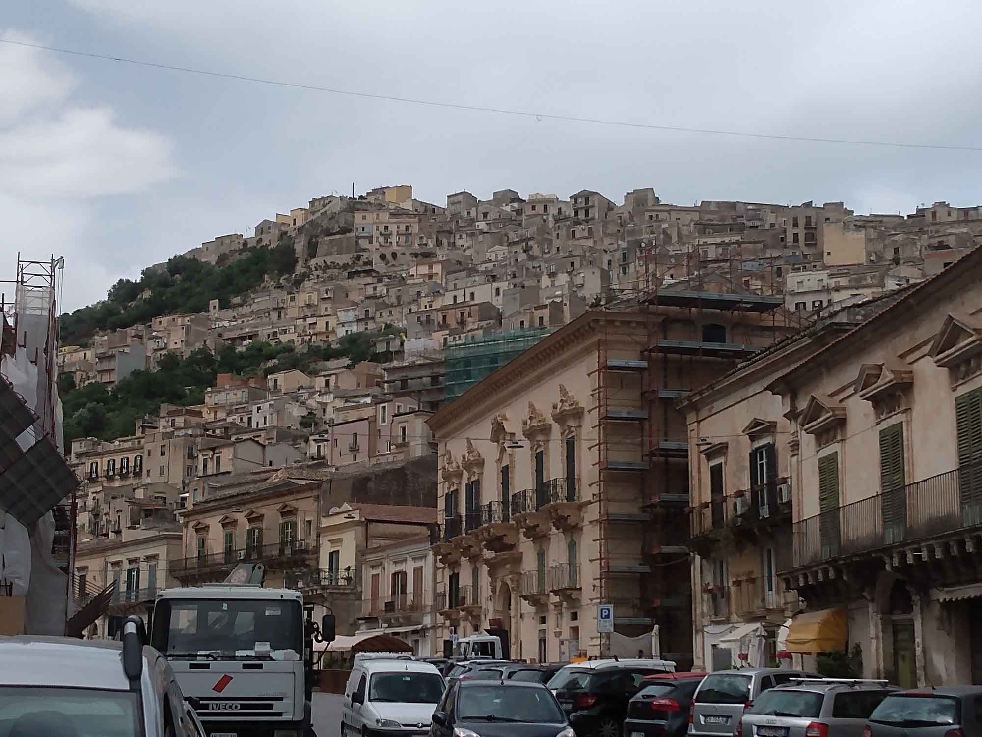 Einen nicht ganz so heißen Tag, es waren "nur" 29 Grad angesagt, nutzten wir, um mit dem Mietwagen von Jutta und Manfred, einem kleinen Fiat Panda, einen Ausflug zu machen. Als erstes sahen wir uns Syrakus an, waren aber zunächst etwas entäuscht, da wir viel mehr historische Bauten erwartet hatten. Stattdessen bot sich das typische Bild italienischer Kleinstädte: Lieblose Fassaden alter Häuser mit heruntergefallenem Putz. Aber der Weg auf der alten Mauer am Wasser auf der kleinen Halbinsel, auf der die Altstadt steht war schon sehr schön und als wir für den Rückweg quer durch die Altstadt gingen, gab es doch einen Platz, der uns sehr gut gefallen hat. Dort testeten wir Cannoli, eine syrakusische Spezialität bestehend aus einem Waffelröllchen gefüllt mit einer nicht-süssen Creme. Wir entschieden, das wir das nicht unbedingt noch einmal haben müssten. Etwas süsser wäre uns wohl lieb gewesen. Oder ein Eis. Ein Eis ist immer gut. Danach ging es über Noto nach Modica, einer Stadt, die zum Weltkulturerbe gehört und im Tal mehrerer Schluchten liegt. Hier gönnten wir uns das besagte Eis, das größtenteils sehr lecker war. Nur die Sorte "Nutella" hätten wir nicht wählen sollen. Dieses war nämlich lediglich sehr sehr kaltes Nutella und entsprechend süss und fettig und kaum zu essen. Wir teilten es auf und freuten uns über die anderen Sorten. Die Stadt selbst war kaum eine Reise wert: Alt und verfallen und eher aus der Ferne zu genießen. Weiter ging es nach Ragusa, der letzten Weltkulturerbe-Stadt an diesem Tag. Nachdem wir den Wagen abgestellt hatten, spazierten wir in die Altstadt. Die Stadt war in einem deutlich besseren Zustand, als die anderen, die wir heute gesehen hatten. Entlang einer kleinen Einkaufsstraße spazierten wir bis zum Dom in dessen Garten, geschützt durch einen Zaun, eine Katze saß, für die sich Berta sichtlich interessierte. Sie bellte immer wieder aber die Katze blieb einfach still sitzen. Nach einer Weile beruhigte sich Berta und hatten dann Zeit, die Katze zu beobachten. Allerdings nicht, ohne es hin und wieder mit einem weiteren Bellen zu probieren. Die Katze blieb geduldig sitzen und durch nichts aus der Ruhe bringen. Danach gingen wir wieder zum Auto und fuhren zurück zum Ferienhaus, wo bereits ein leckeres Abendbrot auf uns wartete.