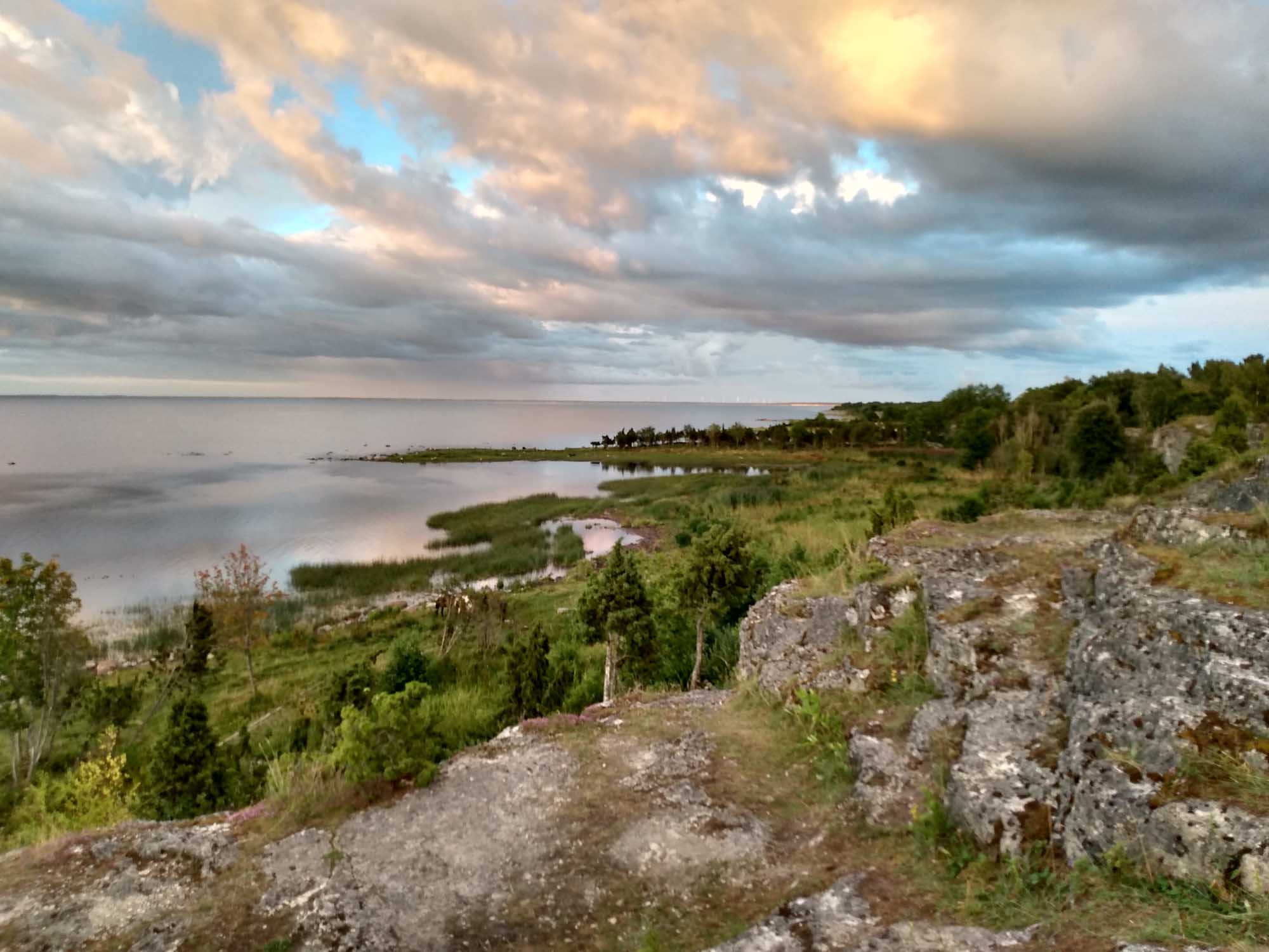 Die erste Fahrt war nur sehr kurz. Weniger als 10 Minuten brauchten wir bis zu unserer ersten kleinen Wanderung, einem Waldlehrpfad in den Dünen und am Strand der Ostsee bei Kabli. Es war zwar alles auf estnisch, aber die Wege waren kurz und so hatten wir einen wunderbaren Morgenspaziergang und bekamen von einem Aussichtpunkt aus noch einen guten Blick über die natürliche Küstenlandschaft. Weiter ging es nach Pärnu, einem hübschen kleinen Örtchen mit gut erhaltenen Holzhäusern und einer gemütlichen ruhigen Einkaufsstraße, der Rüütli. Dort schlenderten wir eine Weile, bevor wir uns auf den Weg zur Fähre in Virtsu machten, die uns zur Insel Muhu bringen sollte. Etliche entgegenkommende Fahrzeuge bedeuteten für uns, dass gerade eine Fähre angekommen war und tatsächlich war die Fähre noch am Ausladen als wir an erster Stelle in der Wartespur 7 anhielten. Dann legte die Fähre jedoch für uns unerwartet wieder ab und machte sich ohne uns auf den Weg zur Insel. Gleichzeitig legte jedoch eine weitere Fähre an. Und als auch alle Fahrzeuge raus waren, durften wir als letzte Reihe auf die Fähre fahren. 30 Minuten später waren wir auf der anderen Seite. Und wie wir immer sagen: Es kommt nicht darauf an, wer als erster auf die Fähre fährt, sondern darauf, wer als erster wieder herunterfahren darf. Und das war unsere Reihe. Wir hatten es auch nicht mehr weit. Nachdem aber leider unserer erster Stellplatz, der wunderbar einsam direkt am Strand gewesen wäre, bereits besetzt war, fuhren wir zu den Üügu-Klippen, um sie zu besichtigen und auch dort zu übernachten.