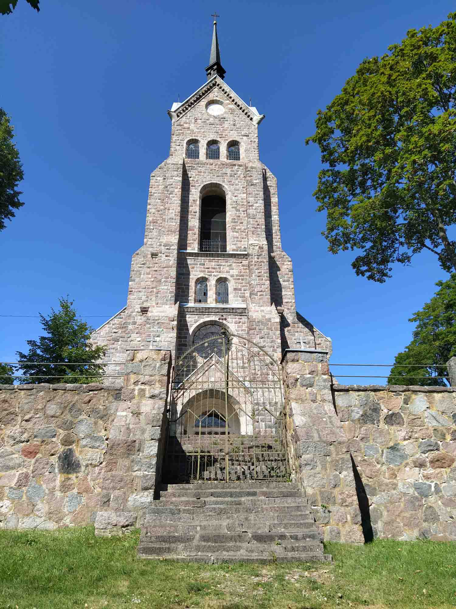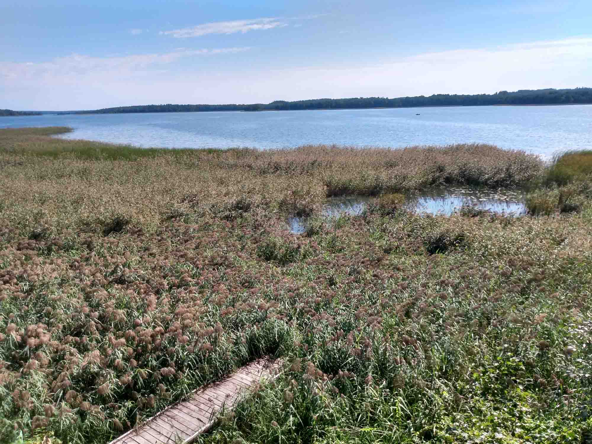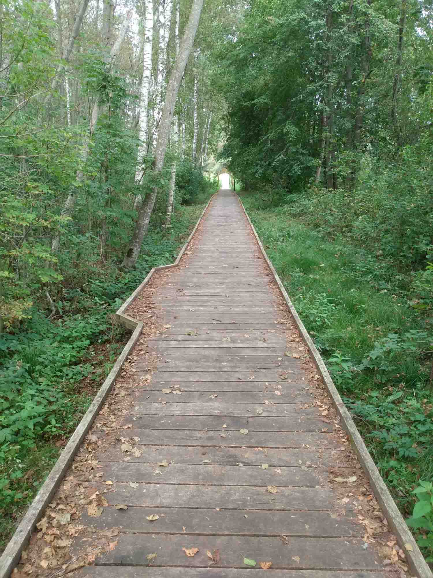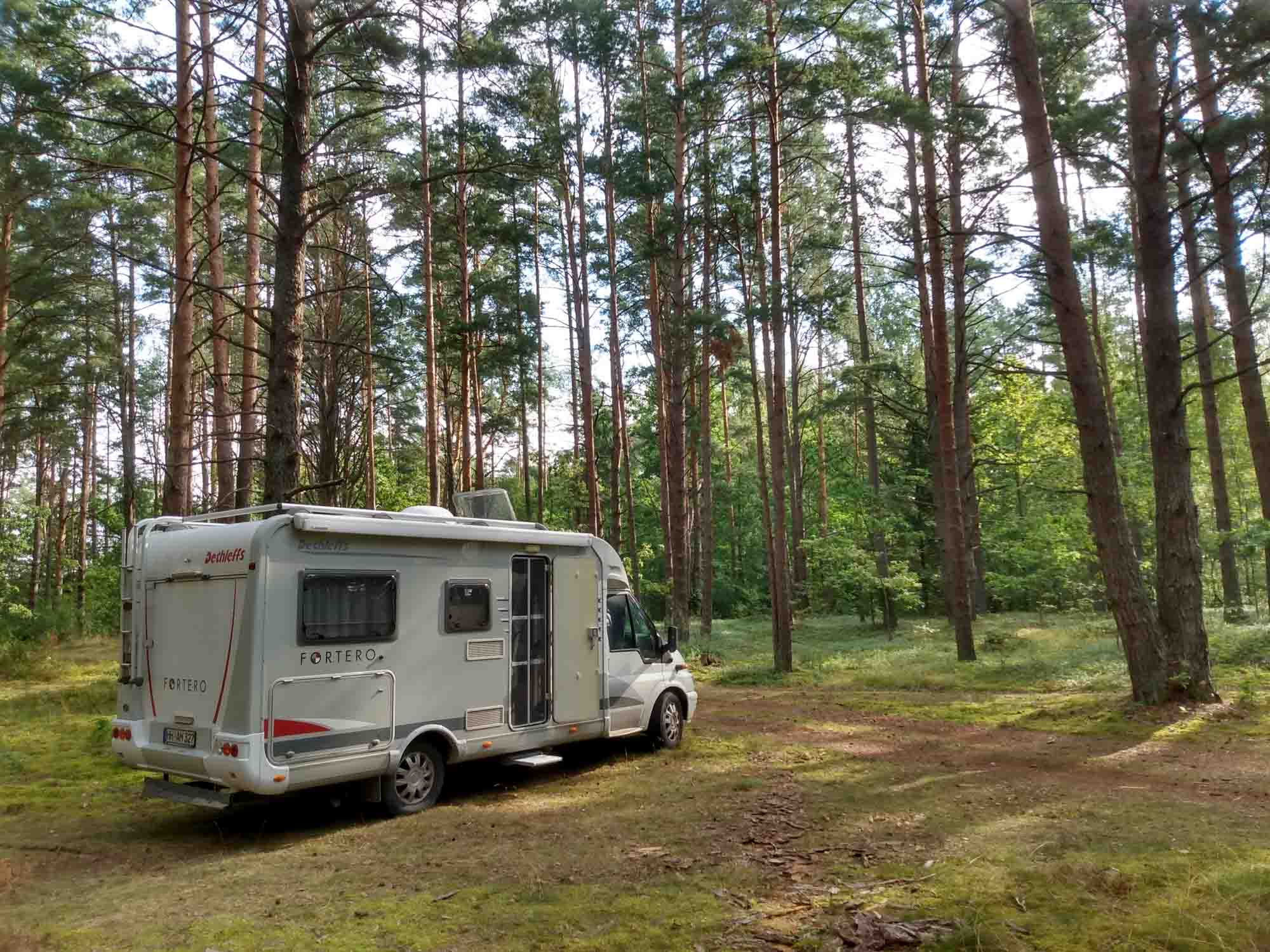 Auf der Suche nach einem schönen ruhigen Platz fuhren wir auf der 102 von Zarasai in den Nationalpark Gražutė. Eigentlich nichts besonders: Viel Wald und ein paar Seen. Irgendwo bogen wir nach links in einen Waldweg ab und fanden 2 km später einen menschenleeren Picknickplatz oberhalb eines Sees. Als wir den Platz erkundeten entdeckte Berta natürlich sofort alles Eßbare, was von vorangegangen Grillabenden übrig geblieben war. Daher entschlossen wir uns, noch etwas weiter zu suchen. Nach einem Abstecher nach Visaginas zum Einkaufen fuhren wir auf der 179 und bogen in Salako nach rechts in Richtung einer imposant wirkenden steinernen katholischen Kirche ab. Kurz danach kamen wir wieder zu einem Picknickplatz, der diesmal am See Luodis lag. Wir erkundeten den Platz zu Fuß und entdeckten zunächst eine Reihe von separaten Stellplätzen mit jeweils eigenem Grillbereich. Noch schöner war jedoch, dass der Weg dahinter in den Wald weiterging und es dort abseits vom eigentlichen Picknickbereich Stellmöglichkeiten gab. So standen wir völlig abseits alleine im Wald auf einer Mini-Lichtung, die auch ein wenig Sonne durchließ unweit aber außerhalb der Hörweite des Picknickplatzes. Das war auch gut so, denn am Freitagabend füllte sich der Picknickplatz und am Samstag waren nicht nur die Parkplätze besetzt, sondern auch sämtliche Wege voll mit Autos. Von unserem Platz aus bekamen wir all das nicht mit, erst als wir Abends einen Spaziergang machten, bemerkten wir, wie viele Menschen sich hier am See bei herrlichstem Sonnenschein und 30 Grad die Zeit vertrieben. Am späten Sonntagnachmittag fuhren wir noch nach Vilnius. Die Fahrt von ca. 2 Stunden war wenig spektakulär. Der erste Parkplatz war leider bereits voll und der zweite ziemlich laut. Zum Glück fanden wir bei einem kleinen Spaziergang noch ein ruhigeres Plätzchen, wo wir abseits des Verkehrslärms der Stadt die Nacht verbringen werden.