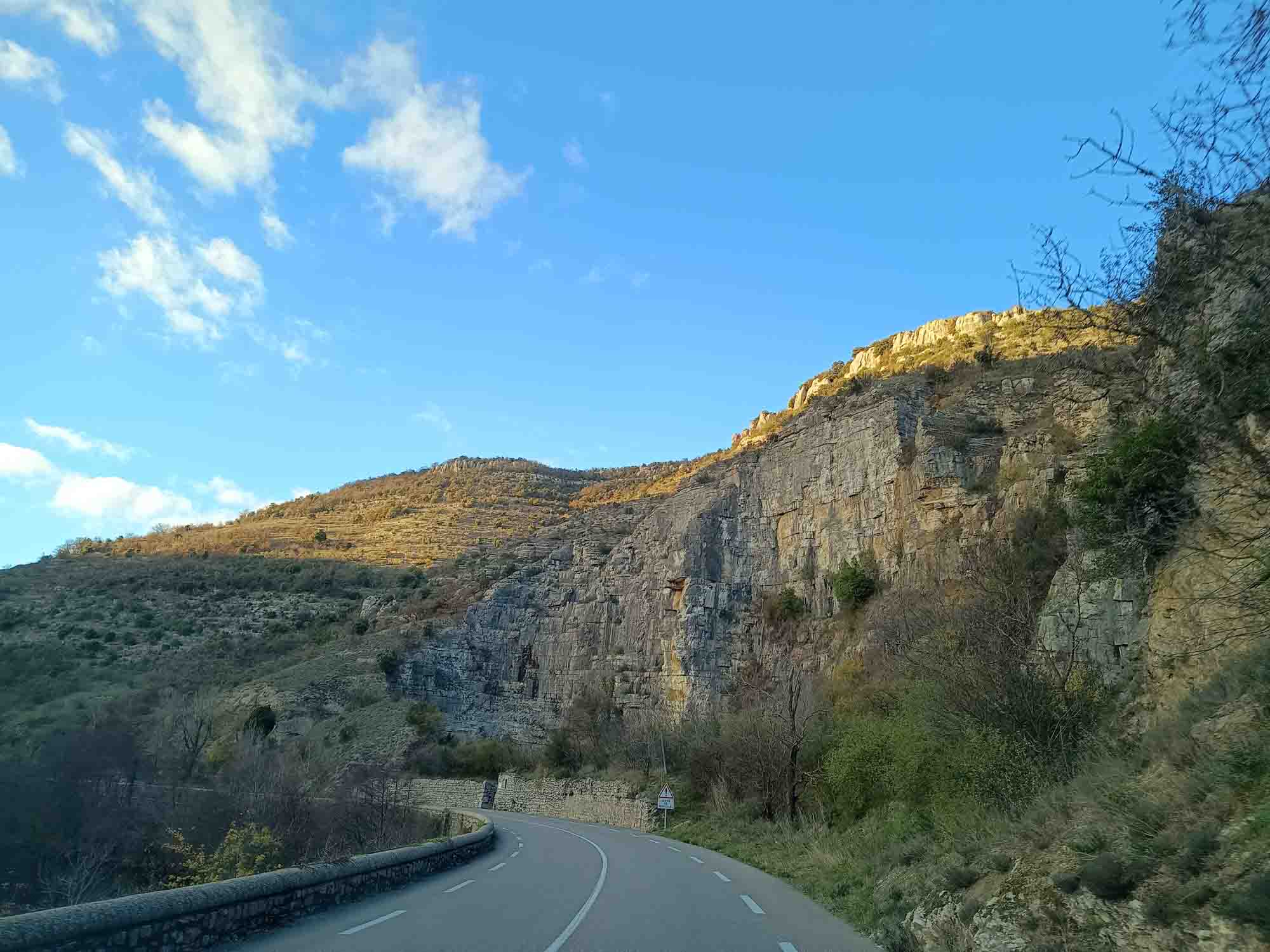 Der kleine Weg, an dem wir übernachtet hatten, hieß Weg zum Jäger. Das hätte uns zu denken geben können. Und tatsächlich kamen morgens zwei Jäger, parkten ihre Wagen etwas weiter unten am Weg und nach einiger Zeit waren Schüsse zu hören. Unsere erste Sorge galt jedoch unserer Batterie. Immerhin hatte sie die Nacht über durchgehalten und die Heizung war diesmal an geblieben. Zumindest ein Zeichen der Hoffnung. Der Spaziergang am Morgen war auch sehr schön. Die Jöger waren weit genug weg und wir genossen die herrliche Ruhe am Morgen. Bei der Weiterfahrt hatte Berta anfänglich wieder etwas Angst, die sich aber zum Glück bald legte. An einem Weingut legten wir eine kleine Pause ein und nutzten die Gelegenheit, etwas Wasser abzulassen. Kurze Zeit später konnten wir an einem Brunnen sogar unseren Trinkwasservorrat wieder auffüllen. Je weiter wir nach Süden kamen, umso mehr kam die Sonne heraus und so hielten wir noch einmal für einen Spaziergang an der Rhone entlang. Wie hatten wir uns nach der Sonne gesehnt. Und so genossen wir die Weiterfahrt durch die Berge der Ardèche in die wir kurz hinter Valence abgebogen sind. Die Straße schlängelte sich wunderschön durch die Berge. Diesmal erreichten wir unseren Stellplatz noch in der Dämmerung. Ein wunderschön einsam gelegener Ort inmitten der nach Thymian duftenden Berglandschaft der Ardèche. Dann machten wir noch einen ersten Erkundungsspaziergang, bevor wir uns ein fantastisches Abendbrot mit selbstgemachten Fischstäbchen und Bratkartoffeln zauberten. Was für ein fantastischer Abschluss für einen tollen Tag.