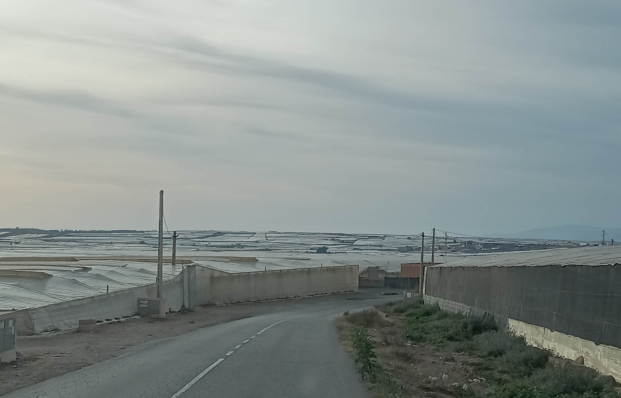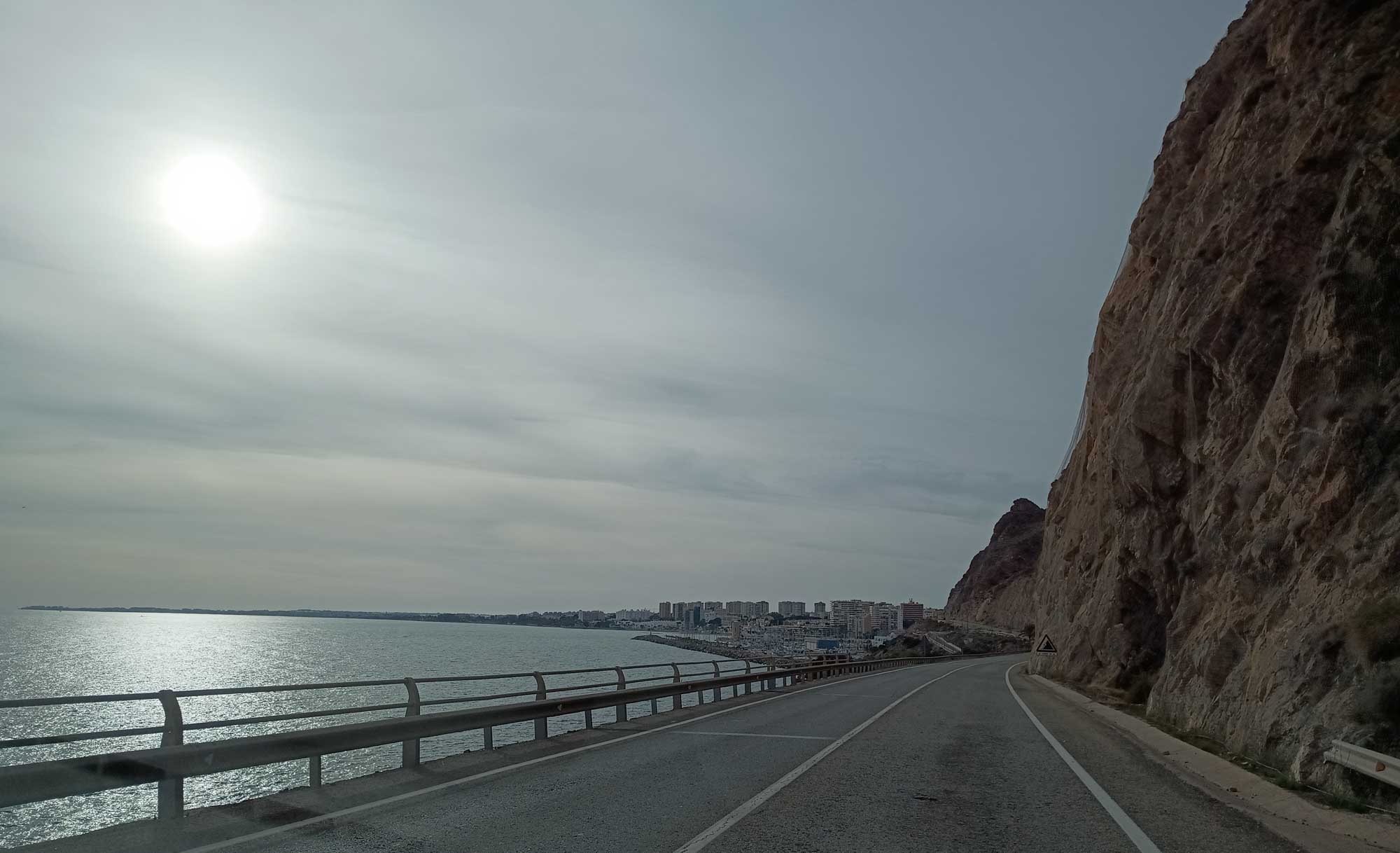 Nach dem Morgenspaziergang mussten wir uns mal wieder entscheiden, ob wir auf diesem wunderschönen, einsamen Platz bleiben wollten oder ob wir weiterfahren. Wenn es nach Berta gehen würde, wäre die Entscheidung einfach. Sie saß unweit des Autos in den Büschen, schaute und hoffte, dass wir hier bleiben würden. Morgen sollte es aber richtig warm und sonnig werden. Also müssten wir entweder einen tollen Tag als Fahrtag nutzen oder auch morgen noch hier bleiben. Allerdings wussten wir auch nicht, wie der nächste Platz aussehen würde. Wir hatten uns einen Übernachtungsplatz am Strand von El Ejido ausgesucht. Würden wir dort eine Stelle finden, wo wir den Sonntag schön am Wasser verbringen könnten? Allerdings gab es hier in der Einsamkeit der Steppe auch keinen Mülleimer und es hatte sich schon wieder einiges angehäuft. Das Wasser wurde auch schon wieder knapp und die Toilette war beinahe voll. Das gab letztendlich den Ausschlag. Wir sammelten eine unzufriedene Berta ein und fuhren los. Diesmal nahmen wir die Straße nordwärts, wo wir fast ebenerdig am Steinbruch vorbei zu einer Nationalstraße kamen. So einfach hätten wir also auch zu unserem Platz kommen können. Nach knapp 20 Minuten kamen wir bei einem Spielplatz an, wo sich Berta von ihrer ersten Fahrt etwas erholen und wir an einem Brunnen unseren Wassertank wieder füllen konnten. Danach ging es weiter durch die Wüste Tabernas bis zum Fort Bravo, einer Film-Westernstadt in deren Umgebung etliche Western wie z.B. "Spiel mir das Lied vom Tod" oder auch "Indiana Jones und der letzte Kreuzzug" gedreht wurden. Zufällig kamen wir bei einem kleinen Spaziergang just an der Felsformation vorbei, die wir sofort aus dem Film wiedererkannten. Danach machten wir kurz vor Almeria noch einen längeren Halt zum Einkaufen, Kaffee trinken und freies WLAN nutzen bevor wir hinter Almeria durch die riesigen Anlagen von Gewächshäusern fuhren. Kurz vor unserem Ziel konnten wir an einer Tankstelle noch unsere Toilette entleeren und waren so wieder für eine längere Pause vorbereitet. Der Platz am Strand von El Ejido erwies sich als annehmbar. Wir fanden etwas abseits von anderen Campern eine ruhige Stelle und bei unserem Abendspaziergang am Strand sahen wir noch ein tolles Ziel für unseren morgigen Nachmittagsspaziergang. Wir standen zufällig unmittelbar unter einer Festung, die wir bequem fußläufig würden erreichen können.