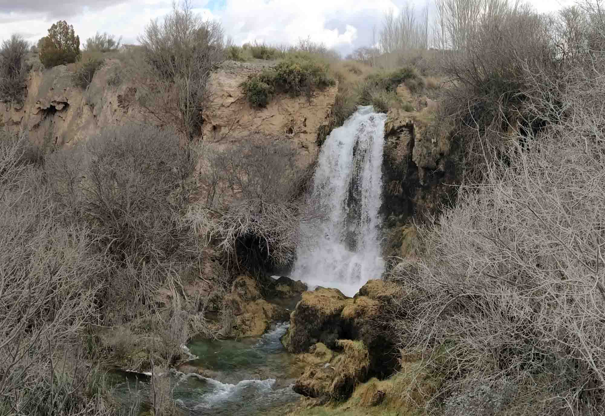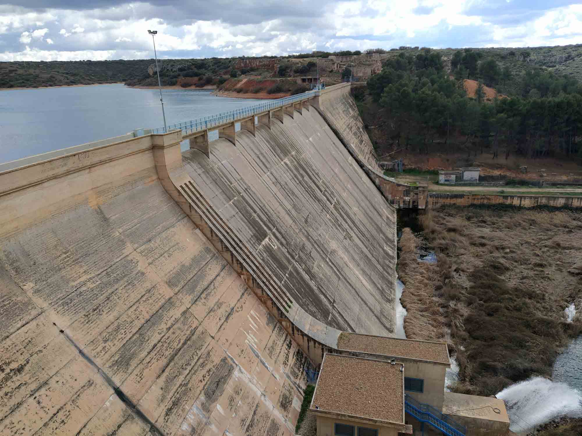 Eigentlich war für heute mal wieder Regen angesagt. Wie froh waren wir, als uns morgens stattdessen die Sonne begrüßte. Es gab zwar auch etliche Wolken, es war immer noch kalt und windig. Aber es blieb trocken. Zur Feier des Tages machten wir morgens gleich zwei Spaziergänge: Einen vor und einen nach dem Frühstück. Dann machten wir uns auf den Weg. Diesmal nahmen wir die befestigte Straße und nach knapp 40 Minuten kamen wir auf einem Friedhofsparkplatz im Naturpark von Raidera an. Von dort aus machten wir einen kurzen Spaziergang zum Cascada de Hundimiento. Der als Sehenswürdigkeit beschriebene Wasserfall war zu unserem Erstaunen deutlich kleiner als wir es erwartet hatten und auch den Spaziergang hätten wir uns in naturnaherer Umgebung vorgestellt. Dafür entschädigte uns das Castillo de Peñarroya, bei dem wir anschließend Halt machten. Es lag malerisch an einem kleinen Stausee unmittelbar an der Staumauer. Hier machten wir einen weiteren Spaziergang und anschließend eine länge Pause, da es hier freies WiFi gab. Danach ging es zum Einkaufen und Gas auffüllen nach Tornelloso. Von dort aus fuhren wir quer durch unglaublich plattes Land. Erst am Horizont zeigten sich ein paar Berge, auf die wir schnurgeradeaus zufuhren. Nicht ein einziger kleiner Hügel trübte die Sicht in irgendeiner Richtung und wir sahen das frische Gras auf den Äckern sprießen. Nach einem letzten Zwischenstopp in Puerto Lapice, wo wir Schwarz- und Grauwasser entsorgten holperten wir uns die letzten 7 km auf der vermutlich schlechtesten Straße, die möglich war zu unserem Ziel, der Zona Recreativa de Valdehierro. Dies war ein weitläufiger Picknickplatz an einer kleinen Ermita. Bei den vielen spitzen Steinen auf dem Weg hatten wir ziemlich Angst um unsere Reifen. Aber sie hielten und wir kamen tatsächlich unbeschadet, wenn auch etwas später als gedacht, an. Eine kleine Runde gönnten wir uns und Berta noch bevor wir uns ins Wohnmobil zum Abendessen zurückzogen.