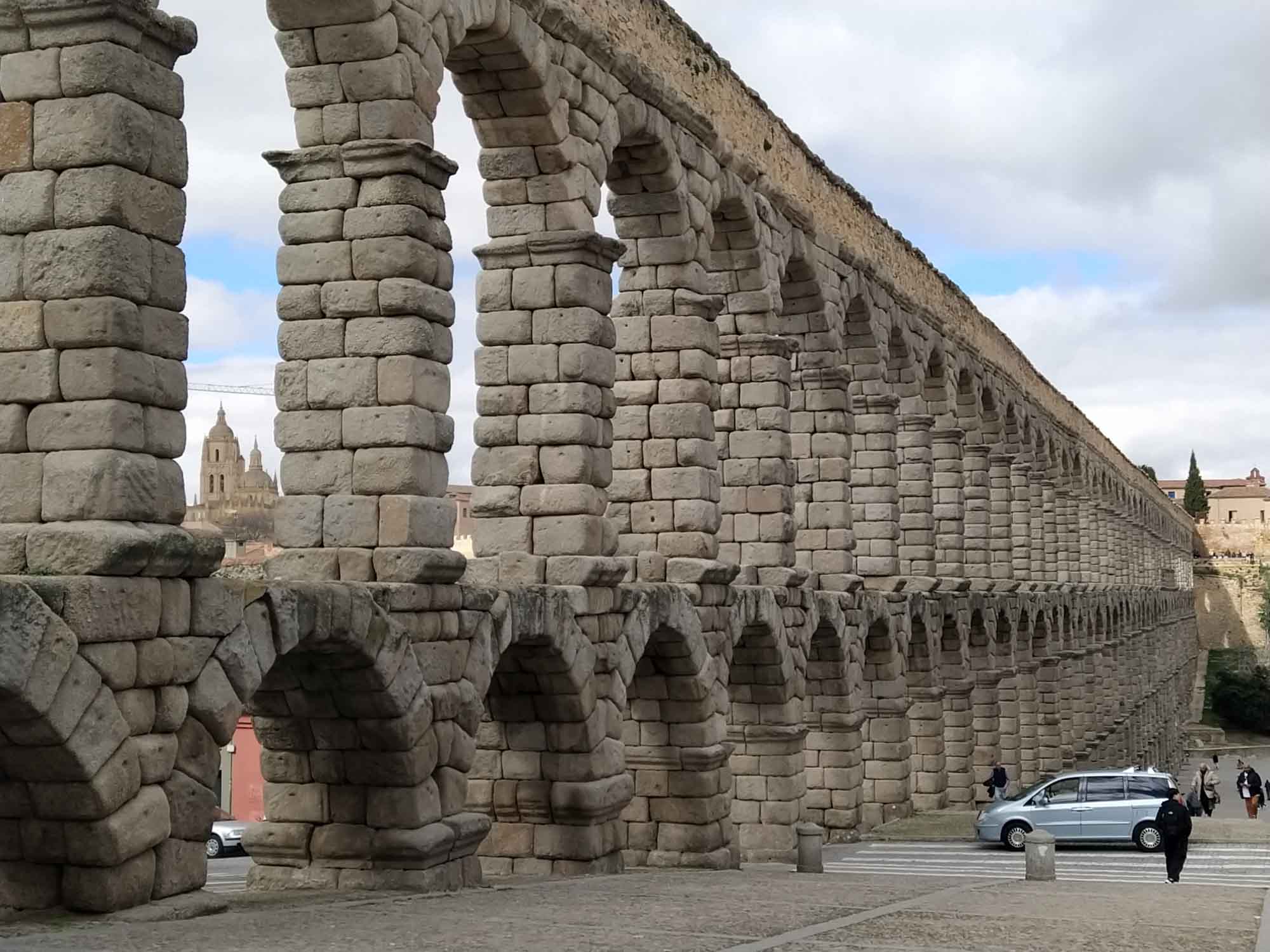 Für Berta war die Nacht schon um halb neun zu Ende. Eigentlich so gar nicht unsere Zeit. Aber was half es. Also angezogen und zumindest eine kleine Runde um die Sportanlage an der sich der niedliche kleine Wohnmobilstellplatz befand. Danach war sie wieder glücklich und legte sich gerne noch einem Moment zum Schlafen hin. Bei uns klappte das nicht ganz so gut und wir waren entsprechend früh unterwegs. Als erstes fuhren wir eine kleine Ermita an, die nur 10 Minuten entfernt war. Es war ein hübscher kleiner Platz aber für eine Übernachtung wäre er aufgrund der schrägen Parkmöglichkeiten völlig ungeeignet gewesen. Danach fuhren wir nach Segovia und machten eine ausführlicher Stadtbesichtigung. Die Altstadt hatte einiges zu bieten: Von einem Aquädukt aus der Römerzeit über eine große Kathedrale und eine Burg bis zu einer gut erhaltenen Stadtmauer rings um die Altstadt war alles da. Neben den üblichen Souvenierläden gab es auch etliche Geschäfte mit lokalen Spezialitäten, vor allem Fleisch und Wurst aber auch leckere Backwaren. Ein sehr schöner Ort, den wir eher zufällig entdeckt haben, uns aber sehr gut gefallen hat. Nachdem wir zurück und eine ausgiebige Kaffeepause gemacht hatten fuhren wir weiter nach San Ildefonso. Dort hielten wir direkt beim Königlichen Palast, eigentlich um dort durch die Garten- und Springbrunnenanlagen zu gehen. Der Wachmann am Eingang hatte leider etwas dagegen. Hunde waren im Park mal wieder nicht erlaubt. Also drehten wir um und fuhren das letzte kleine Stück bis zu einer verfallenen Kirche, der Iglesia de los Santos Justo y Pastor, die auf einem Hügel oberhalb des kleinen Örtchens La Mata liegt. Hier strahlte die Sonne bei herrlich blauem Himmel bis zum Sonnenuntergang, der den Himmel so wunderbar rot erstrahlen ließ.
