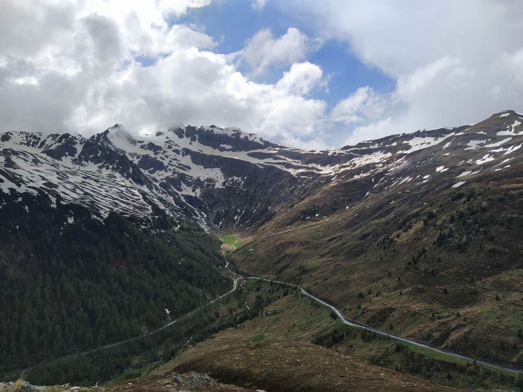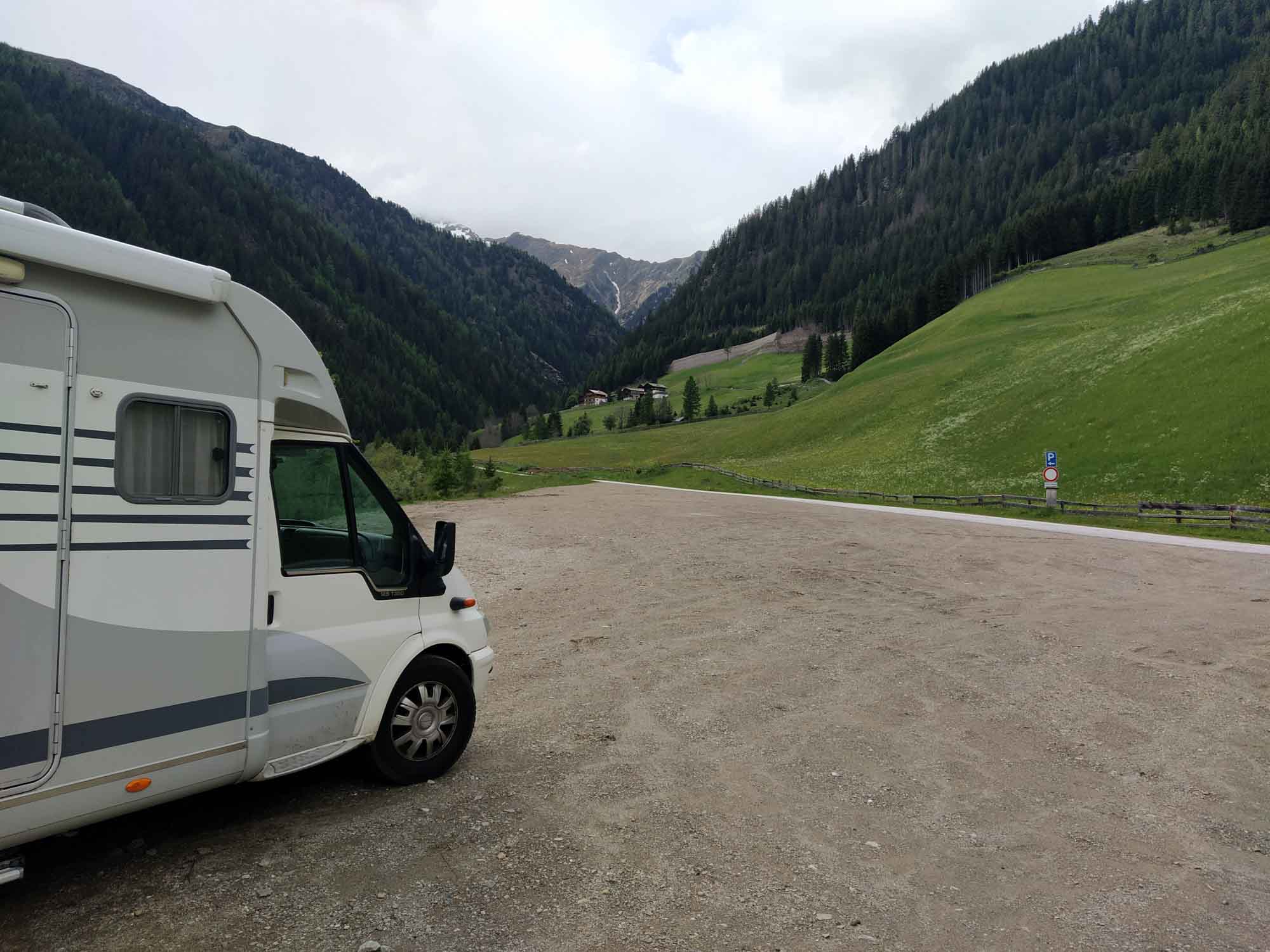 Der Tag begann wieder sonnig und die Wege waren auch schon wieder trocken. So machten wir einen ersten schönen Spaziergang in der warmen Sonne, frühstückten und fuhren dann nach Bad Tölz, um das letzten Mal in Deutschland einkaufen zu gehen. Von dem gestrigen Unwetter war schon nichts mehr zu sehen. Danach fuhren wir weiter südwärts und fuhren über den Walchenklamm nach Österreich. Weiter ging es über Achenkirch und den Achensee nach Strass im Zillertal. Danach fuhren wir in Richtung Innsbruck, wo wir noch einmal unseren Tank vollmachten. In Österreich sollte der Sprit günstiger als in Italien sein. Viele Tankstellen an der Route hatten davon gehört und ihre Preise entsprechend nach oben angepasst. Aber wir fanden die eine, die das nicht getan hatte. Bei unserer Fahrt kamen wir an etlichen Schildern vorbei, die die kleine Landstraße auf der wir fuhren für Kraftfahrzeuge aller Art sperrte. Allerdings nur an Wochenenden und an Feiertagen in der Zeit von 7 bis 19 Uhr und auch noch für solche Fahrzeuge mit Ziel Italien. Das war der Grund, warum wir uns in den letzten Tagen so beeilt und den heutigen Freitag für die Fahrt durch Österreich gewählt hatten. Und was für Abzocker die Österreicher sein können, zeigte sich kurz vor dem Grenzübertritt nach Italien am Brenner. Auf den letzten 100 m vor der Grenze standen Polizeibeamte mit einer Laserpistole bewaffnet, um fast unschuldige Auto- und Motorradfahrer um ihr kostbares Erspartes zu bringen. Wir fuhren bei erlaubten 50 km/h nur 40 und retteten damit nicht nur uns, sondern auch die 20 Fahrzeuge hinter uns, die wir im Schlepptau hatten. Im Vorbeifahren schauten wir uns die beiden Polizisten noch einmal genau an, die resigniert ihre Laserpistole gesenkt hatten. Danach ging es den Brenner auf der italienischen Seite wieder bergab bis nach Sterzing, wo wir auf eine kleine Passstraße abbogen. Diese hatte es in sich. Es war ziemlich steil und so fuhren wir im zweiten Gang langsamer als gedacht in vielen vielen Kurven bis zum Penser Joch hinauf, wo wir den noch immer schneebedeckten Pass auf 2.200 m Höhe überquerten. Als Übernachtungsplatz hatten wir einen Aussichtpunkt etwas unterhalb ausgesucht wo wir auch zunächst anhielten. Auf 2.000 m gelegen war es doch ziemlich frisch, um nicht zu sagen kalt. Wir stiegen trotzdem aus und erkundeten den kleinen Schotterplatz, um schließlich festzustellen, dass wir außer entlang der Straße nirgendwo spazieren gehen konnten und der Platz in anbetracht der noch immer instabilen Wetterlage mit möglichen Gewittern alles andere als geeignet war, um hier einen Ruhetag einzulegen. Aber nur 20 km weiter entlang der Straße fanden wir einen großen Schotterplatz, der nur noch auf 1.400 m lag und auf dem wir direkt an einem Bach völlig alleine stehen konnten und dazu noch einen befestigten Weg vor der Nase hatten, den wir auch gleich für einen ausgiebigen Abendspaziergang nutzen. Danach gab es noch schnell etwas zu essen, bevor wir müde und erschöpft ins Bett fielen.