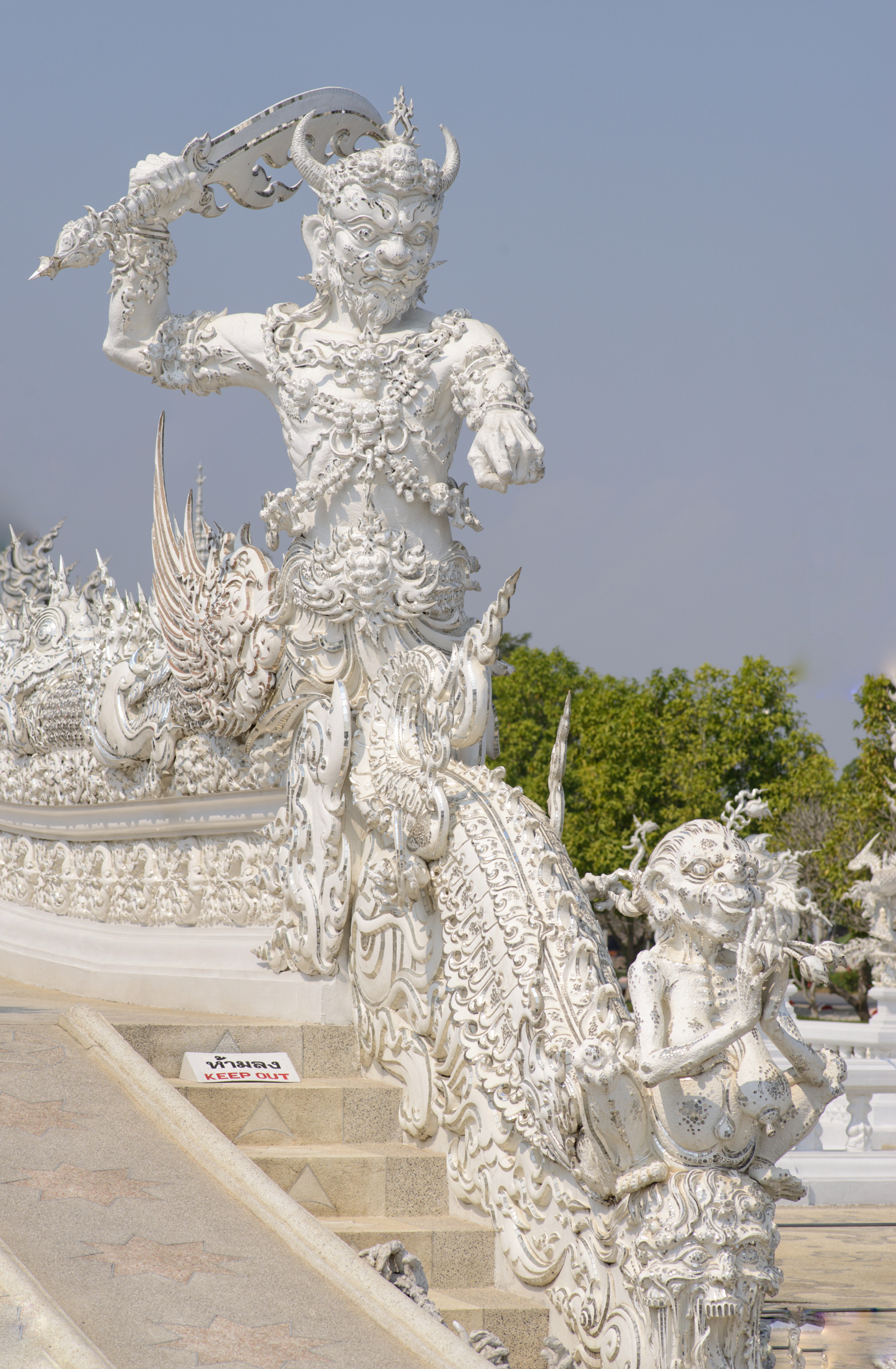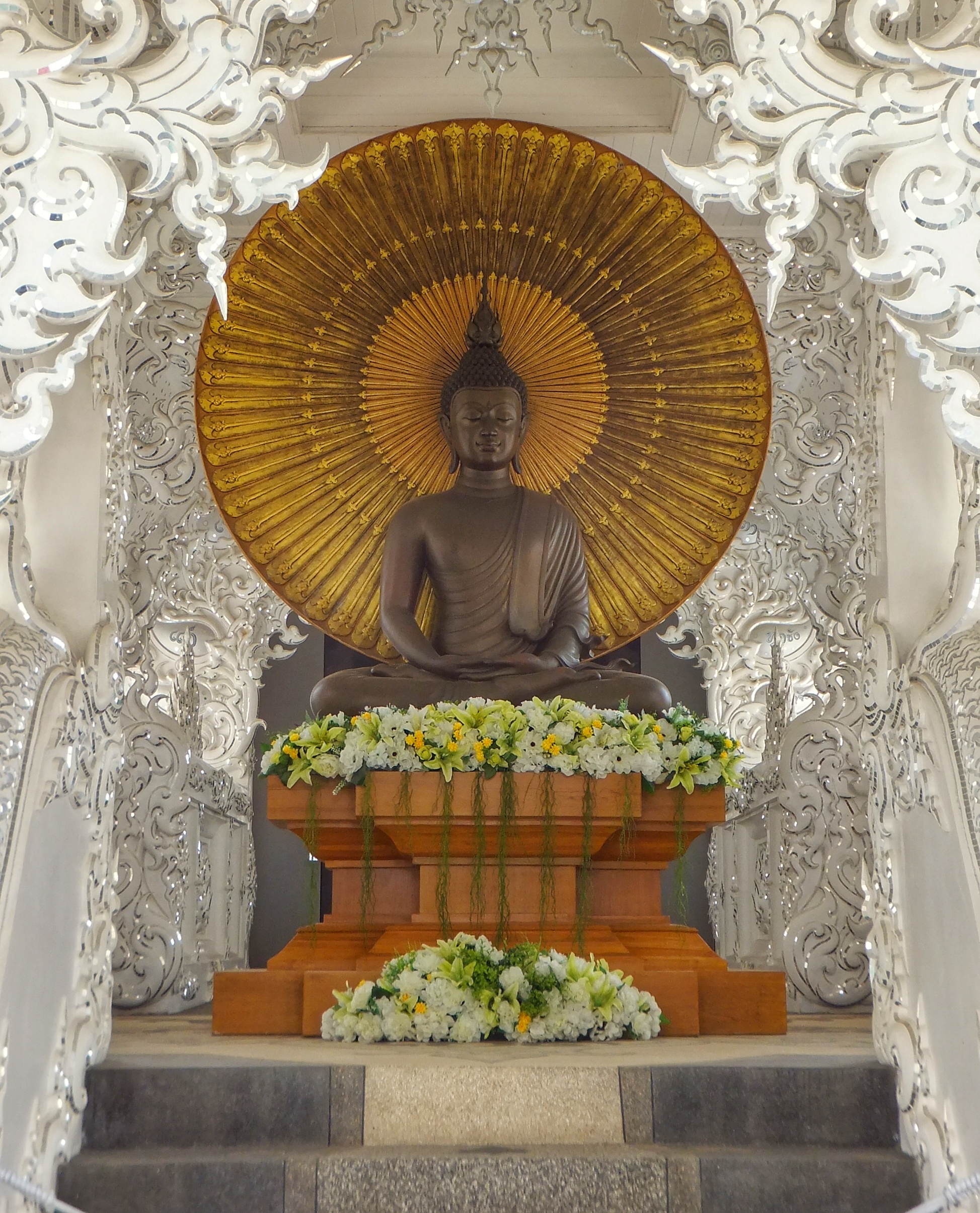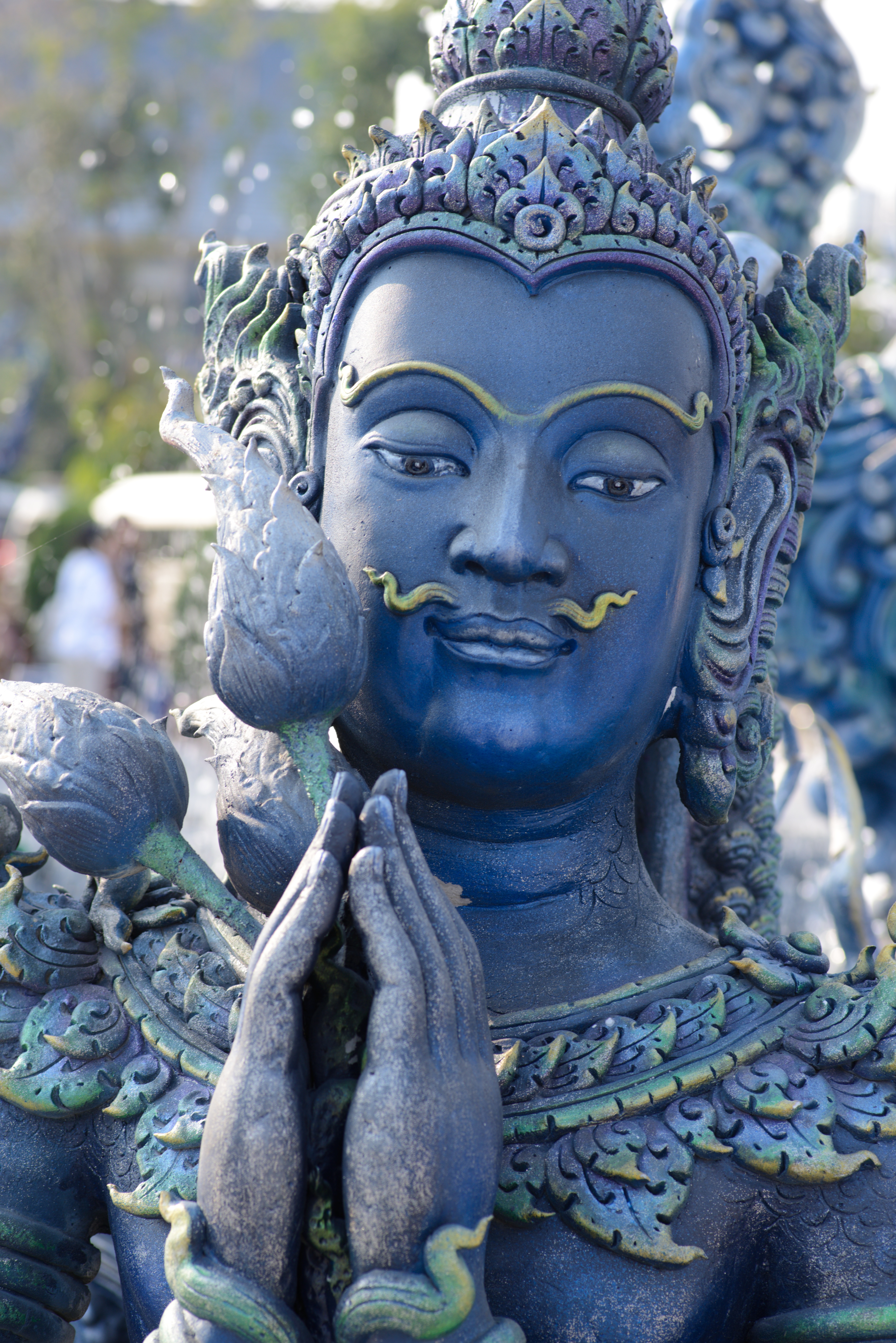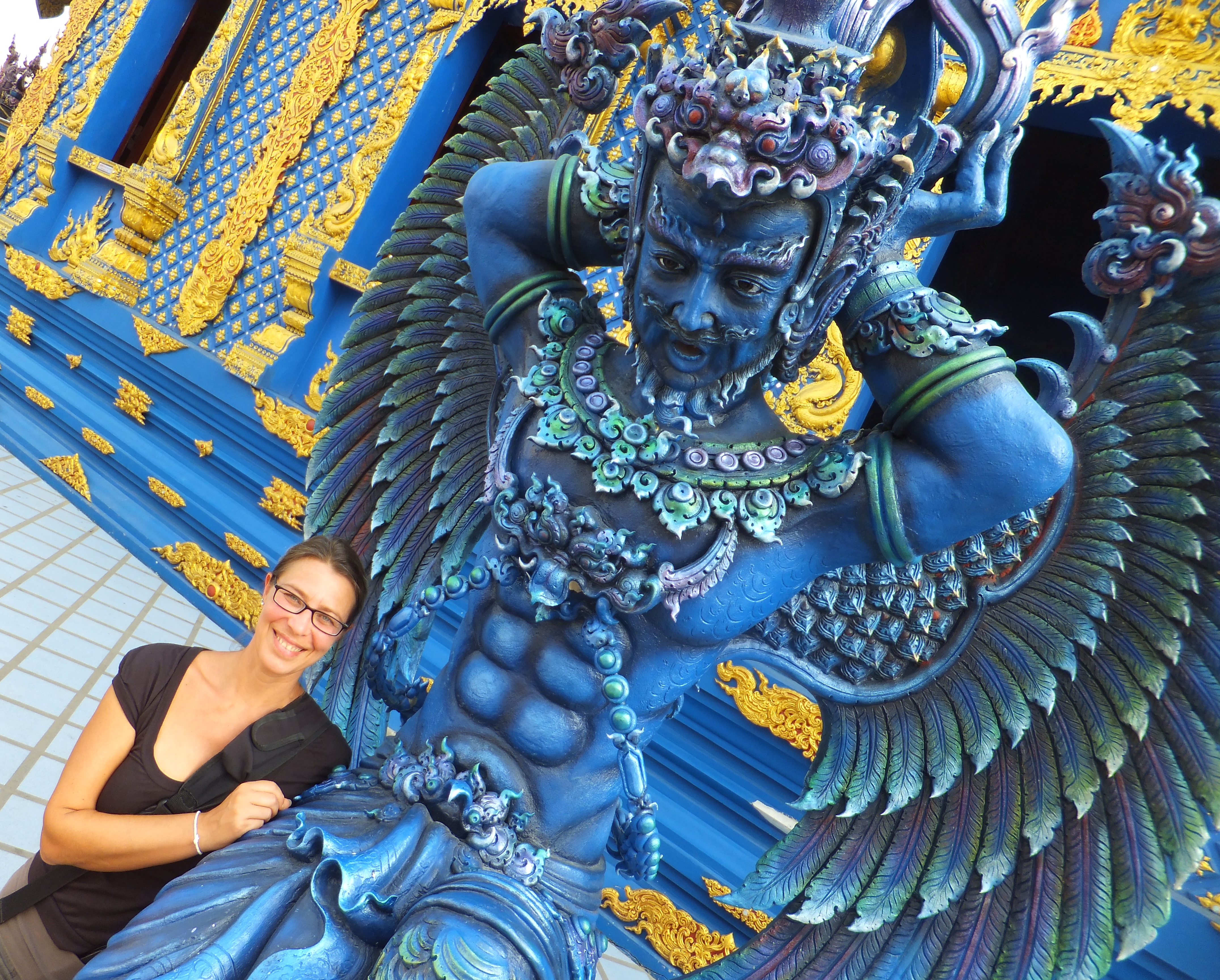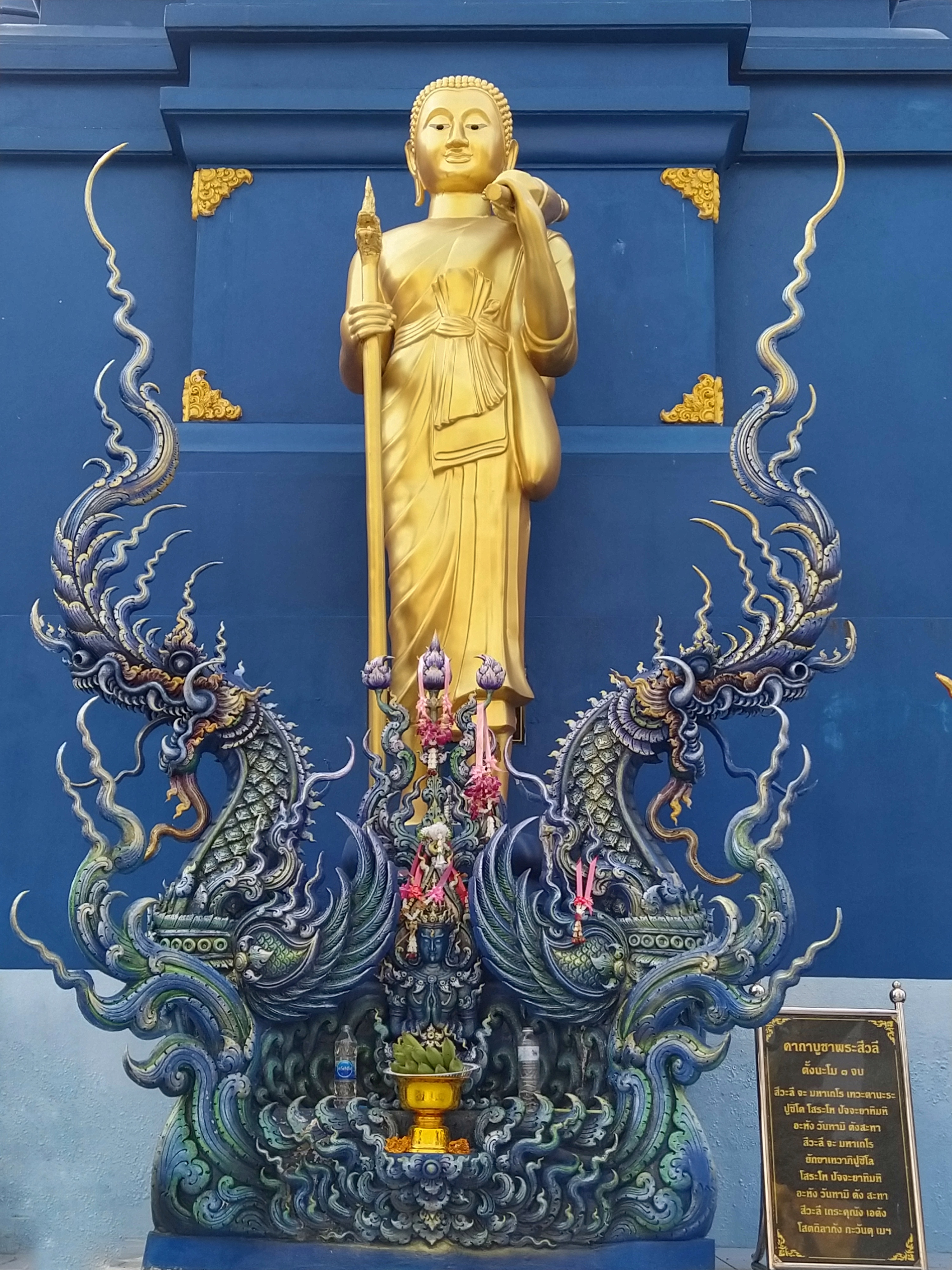 Wie immer pünktlich wurden wir um kurz nach 7:00 Uhr im Hotel abgeholt. Nachdem die anderen Gäste ebenfalls eingesammelt worden sind, fuhren wir mit einem kurzen Stopp nach Mae Kachan Hot Spring and Geyser, bestaunten das Kochen von Eiern im 90 Grad heißen Wasser und ließen uns dann zum weißen Tempel nach Chiang Rai fahren. Die Fahrt war etwas abenteuerlich vor allem wegen der abrupten Fahrweise unseres jungen Fahrers. Unentwegt musste er an den unmöglichsten Stellen überholen, nur um dann hart zu bremsen und erneut kräftig zu beschleunigen. Um 11:00 Uhr waren wir in Chiang Rai angekommen. Die Gruppe hatte sagenhafte 40 Minuten an diesem atemberaubenden Tempel. Wir hatten mit dem Guide besprochen, wo er uns Abends wieder in Chiang Rai abholen sollte. So schauten wir uns den Tempel in aller Ruhe an, aßen hier noch ein kleines Mittagessen und blieben so etwas mehr als 4 Stunden hier. Dann ließen wir uns von einem Taxi zum blauen Tempel fahren und waren überrascht, dass uns auch dieser Tempel noch einmal beeindrucken konnte. Zur verabredeten Zeit fuhren wir wieder mit dem Taxi, kauften im Einkaufszentrum noch eine Kleinigkeit ein und dann ging es auch schon wieder die 3 Stunden zurück nach Chiang Mai. Die anderen taten uns ein bisschen mehr leid, hatten sie doch den ganzen Tag hauptsächlich im Minivan verbringen müssen. Etwas schlecht war uns trotzdem, als wir um 21:30 wieder im Hotel waren. Wir schlenderten noch über den nahegelegenen samstäglichen Nachtmarkt ehe wir dort noch zu Abend aßen und anschließend todmüde ins Bett fielen.