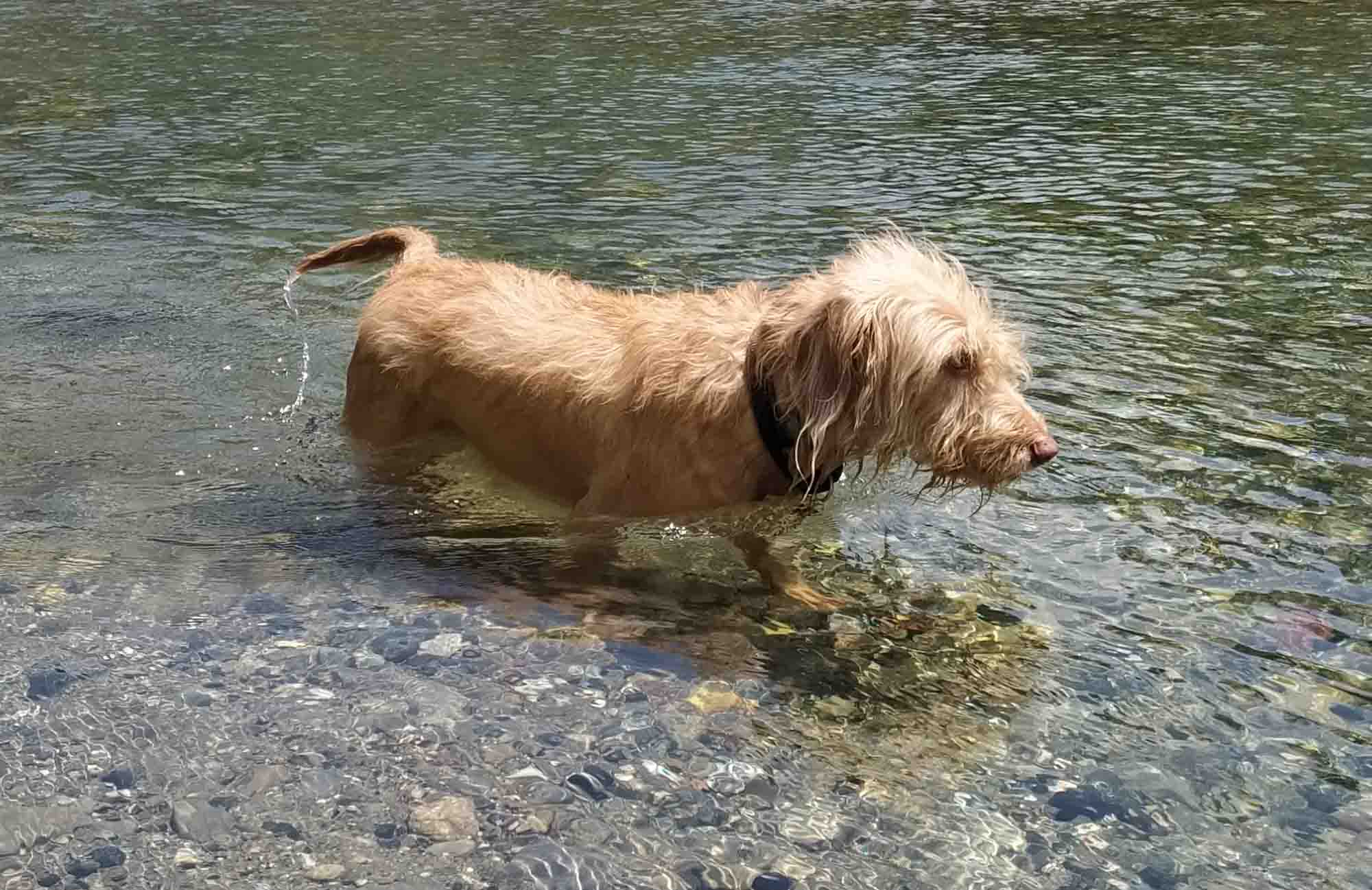 Der Platz war wieder mal so schön, dass wir gerne noch einen Tag länger blieben. Morgens standen wir noch im Schatten und so konnten wir die Kühle der Nacht noch bis in den späten Vormittag hinein genießen. Danach kletterte das Thermometer erneut bis auf 37 Grad. Aber das kannten wir schon und verbrachten den Tag ruhig spielend im Schatten der Markise. Zwischendurch konnten wir uns im Fluss etwas abkühlen und Abends gab es eine erfrischend kalte Dusche. Auf Abendessen waren wir nicht mehr eingerichtet. Aber aus den Resten zauberten wir uns eine wunderbare Spaghettikreation mit Erbsen und Tomaten, die überraschend lecker war. Natürlich blieben wir auch heute noch lange draußen sitzen, bis es kühl genug war, um reingehen zu können. Auch heute genossen wir vor dem Schlafengehen noch eine Folge unserer Serie.