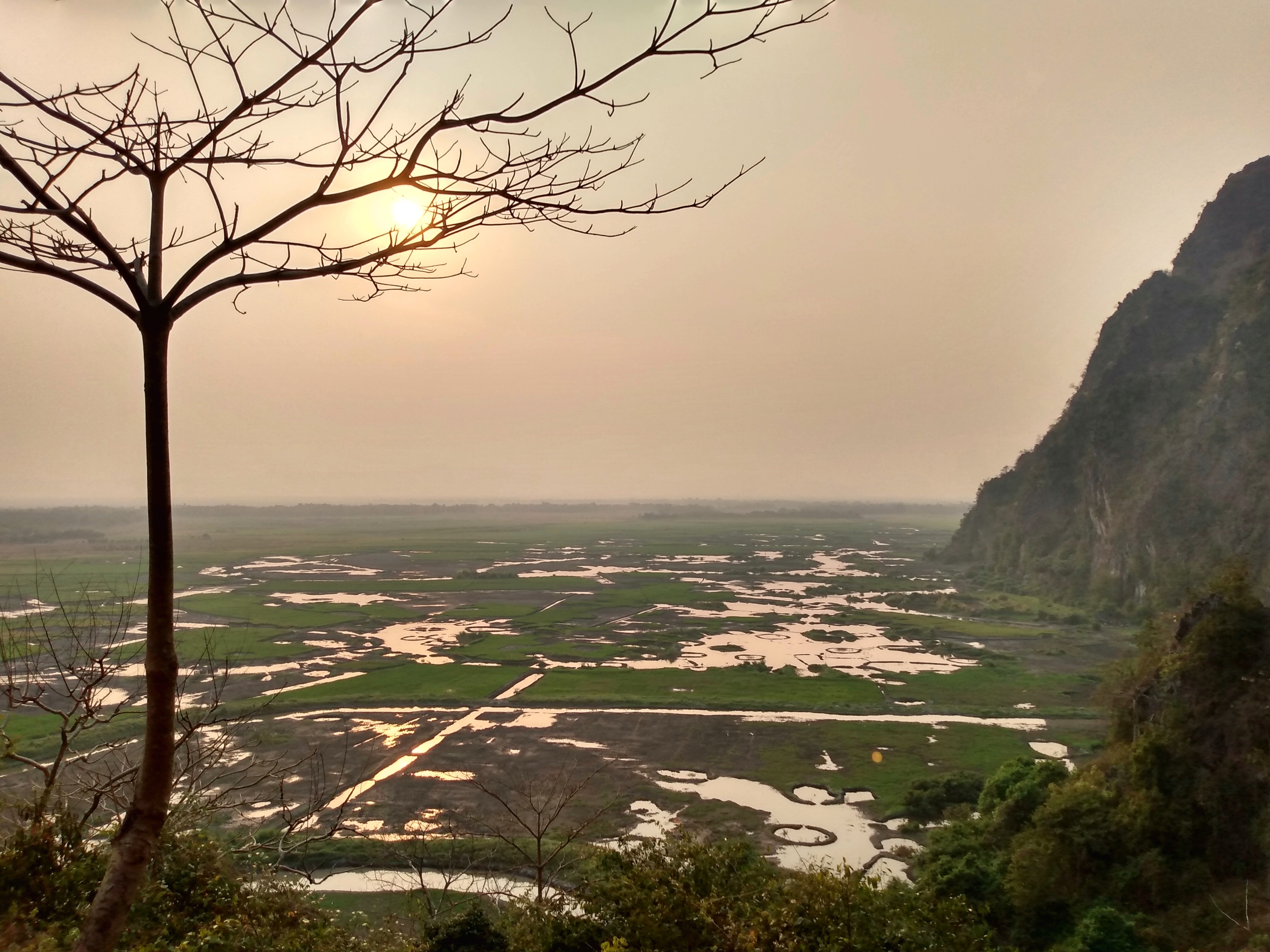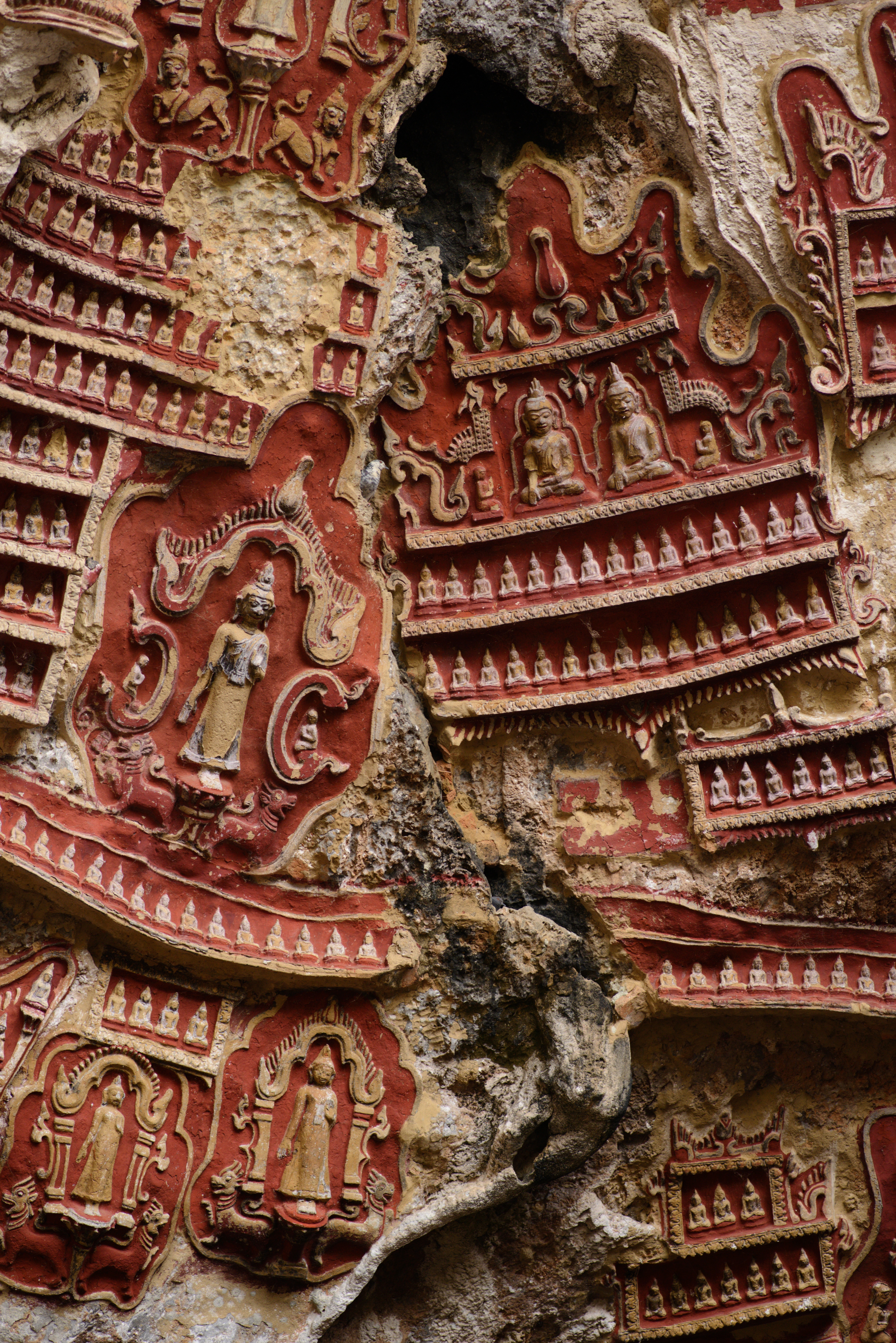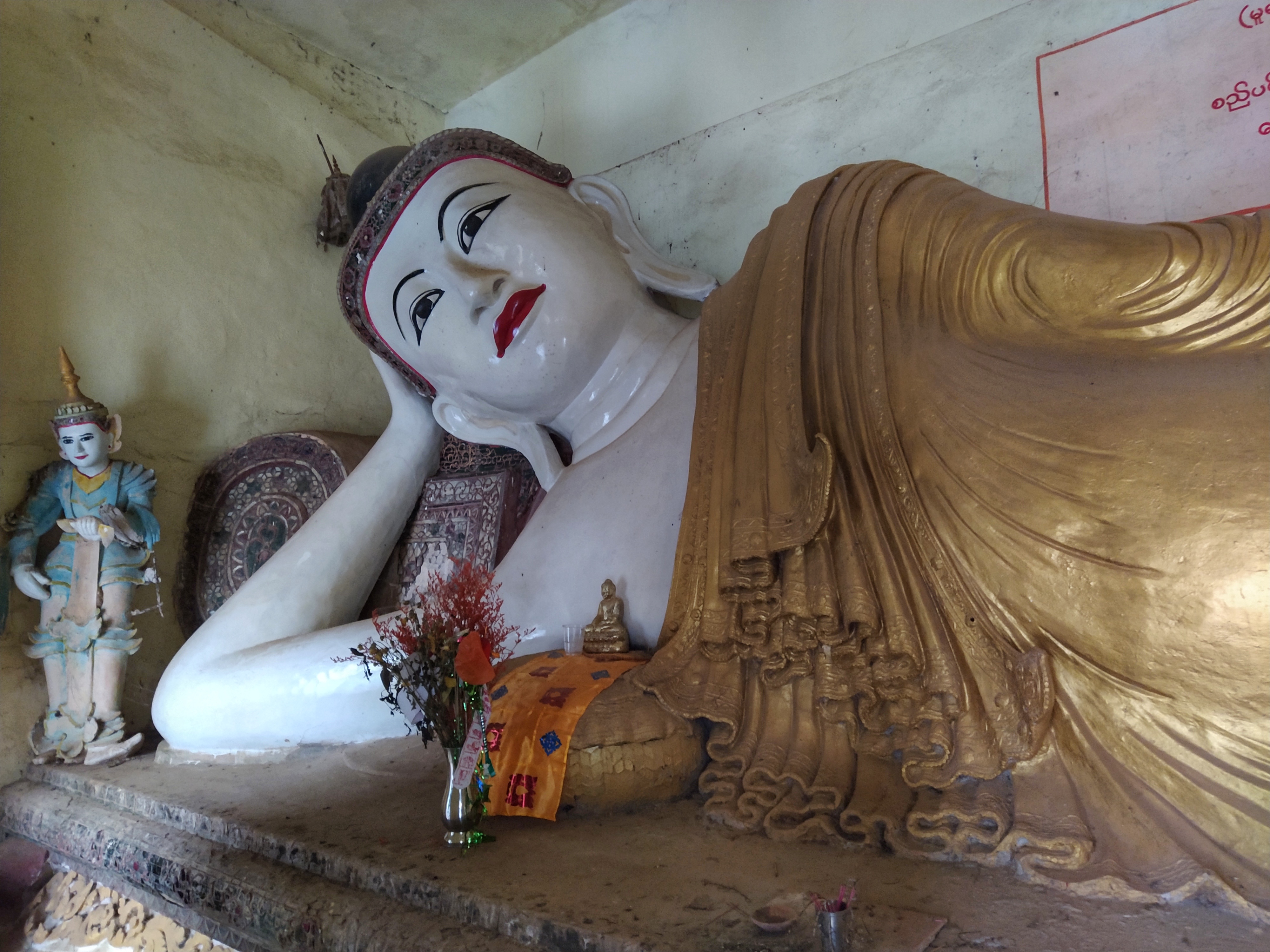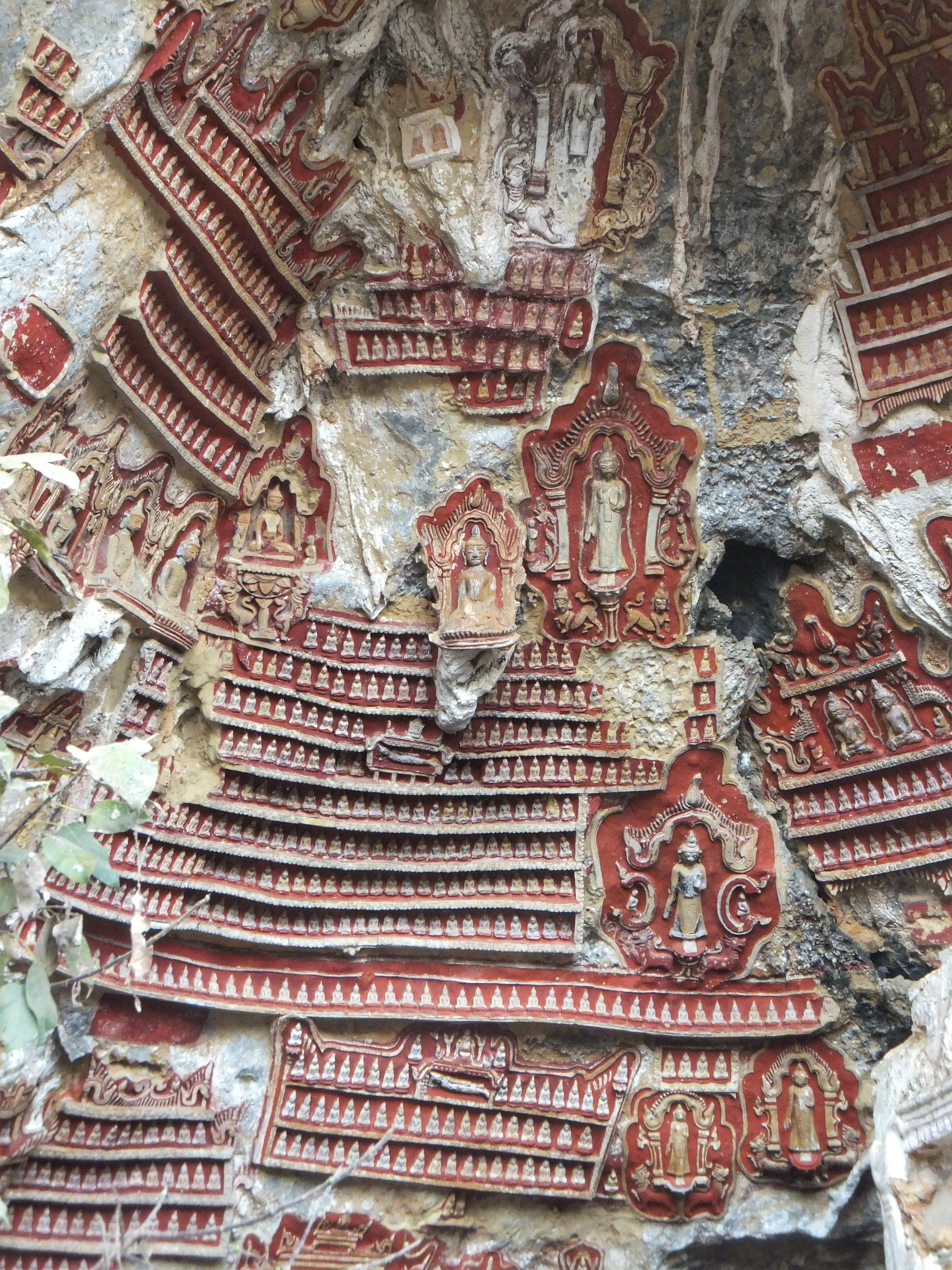 Nachdem wir uns ausgeschlafen hatten gingen wir zur Rezeption, wo uns die freundliche Mitarbeiterin uns einen Roller für die nächsten Tage organisierte. Zwanzig Minuten später war er da und wir fuhren los. Als erstes schauten wir uns die Kawgon-Höhle an. Bemerkenswert waren vor allem die vielen Ornamente am Eingang zur Höhle. Danach ging es weiter zur Yathay Pyan Höhle. Auch hier gab es schöne Ornamente und zahlreiche Buddha-Figuren. Die Höhle ging aber weiter nach hinten und wir konnten – natürlich barfuß – durchlaufen. Auf der anderen Seite gab es eine weitere Öffnung, wo wir einen schönen Ausblick über das Land bekamen. Zum Sonnenuntergang fuhren wir zur Bat Cave und beobachteten ein weiteres mal Millionen von Fledermäuse beim Ausflug aus ihrer Höhle. Diesmal standen wir unmittelbar unterhalb des Höhleneingangs und sahen die Tiere über unseren Köpfen ausfliegen. Allerdings bekamen wir auch den Gestank der Tiere zu spüren. Es war immer noch sehr warm, als wir im Dunklen wieder nach Hause fuhren. In einem kleinen Restaurant unterwegs aßen wir zu Abend. Zum Glück konnte einer der jungen Helfer ein wenig Englisch und so bekamen wir ein leckeres Abendessen.