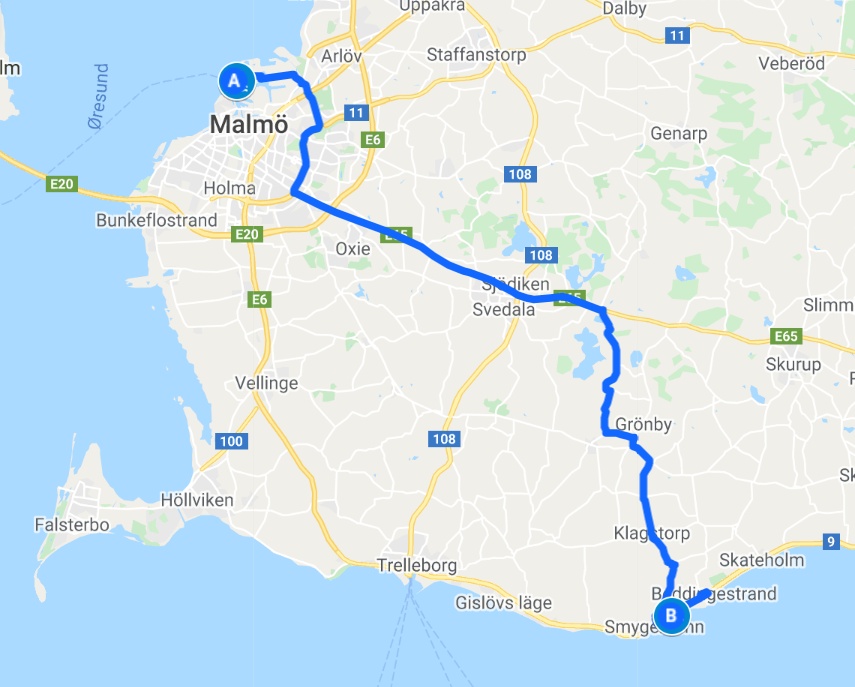 Etwas ungewohnt klingelte der Wecker morgens um 8:00 Uhr. Nach einem kleinen Frühstück und einer Tasse Kaffee fuhren wir in knapp 10 Minuten zum Fähranleger in Travemünde. Vor uns wartete nur ein Wagen und so hatte die Frau am Checkin schnell unsere Ausweise und den obligatorischen Corona-Antigentest kontrolliert. Wir stellten uns hinter die wartenden Fahrzeuge. Insgesamt waren es vielleicht 20 PKWs, darunter zwei Wohnmobile. Der Rest der Fähre wurde mit LKW-Auflegern beladen. Mit 1 1/2 stündiger Verspätung legten wir ab, kamen aber trotzdem fast pünktlich in Malmö an. Die Überfahrt verbrachten wir in unserer kleinen aber gemütlichen Kabine, wo wir kurz vor der Ankunft die vermutlich letzte richtige Dusche ausnutzten. In Malmö gab es überraschenderweise keinerlei Kontrollen und wir fragten uns, warum der Corona-Test unbedingt auf Englisch sein musste. Für die Übernachtung fuhren wir zu einem kleinen Strandparkplatz an der Südküste Schwedens und lauschten nach einem späten Abendessen dem prassen des Regens und dem Rauschen des Meeres.