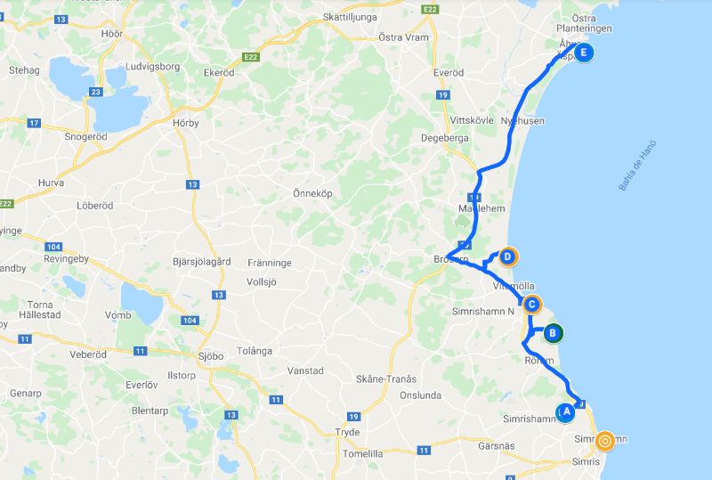 Nach einer wunderbar ruhigen Nacht und einem wie immer leckeren Frühstück machten wir uns auf zu unserem ersten Tagesziel dem Stenshuvuds Nationalpark. Hier wanderten wir durch die hügelige Dünenlandschaft, den langen einsamen Sandstrand und auf einen kleinen Berg von dem aus wir einen weiten Blick über die Bucht bekamen. Nach einer kleinen Stärkung fuhren wir in den Ort Kivik, wo es ein 3500 Jahre altes Königsgrab aus der Bronzezeit zu besichtigen gibt. Leider konnten wir es nur von außen sehen, da die Saison erst am 1. Mai beginnt. So war es nicht ganz so spektakulär. Abseits unseres Parkplatzes war jedoch ein großes Feld mit Bärlauch, wo wir uns einen großen Strauß gesammelt und anschließend zum Trocknen aufgehängt haben. Danach fuhren wir zum Strand Haväng, den wir ebenfalls zu Fuß erkundeten und Steine ins Meer warfen. Hier haben wir unseren zweiten Versuch mit der Drohne gemacht, was auch schon sehr viel besser funktionierte. Man übt sich halt. Für die Übernachtung fuhren wir nach Åhus. Auf einem Waldparkplatz am Strand waren wir wieder einmal völlig alleine. So wie wir es mögen.