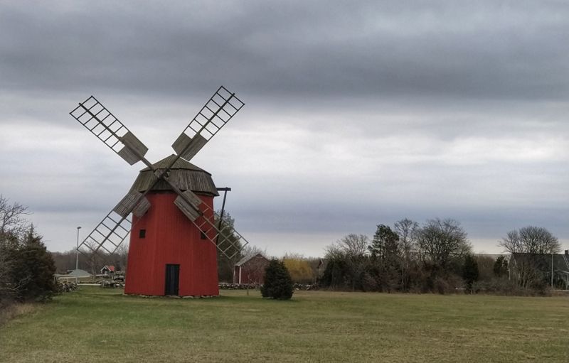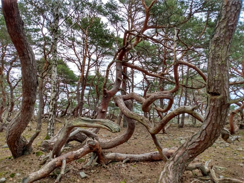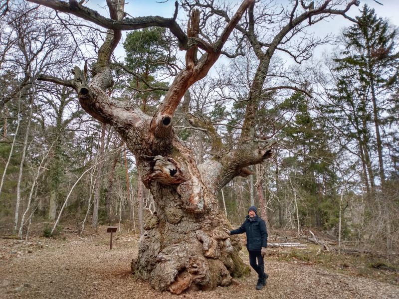 Wir haben gehört, dass es im Zauberwald auf Öland Trolle geben soll. Also fuhren wir hin, und schauten uns auf einem ca. 5 km langen Spaziergang durch den Trollkoogstiegen Nationalpark gründlich um. Gefunden haben wir neben einem alten Schiffswrack, knorrigen verbogenen Kiefern, Gräbern aus der Eisenzeit nur eine 900 Jahre alte Trolleiche. Ob diese wohl gemeint war? Es war kalt heute. Sehr kalt. Wir fuhren nach Borgholm zurück, wo wir gestern schon durchgefahren sind. Nach einem Halt bei einem Supermarkt, um ein paar Downloads zu machen fuhren wir zur Burgruine von Borgholm. Es war schon sehr ungemütlich: kalt und windig. Und so hielten wir es kurz. Genauso wie in dem nahegelegene Park der Sommerresidenz des schwedischen Königspaars Sommila. Wir entschlossen uns noch eine Nacht länger auf der Insel zu bleiben und stellten unser Wohnmobil in die Nähe einer weiteren sehr viel älteren Burgruine, der Burg Ismantorp. Ca. 350 m von unserem Parkplatz entfernt war dies ein schönes Ziel für unsere Drohne und die Bilder sind auch schon recht schön geworden. Erstaunlich wie anders die Landschaft wirkt, wenn man sie von oben betrachtet.