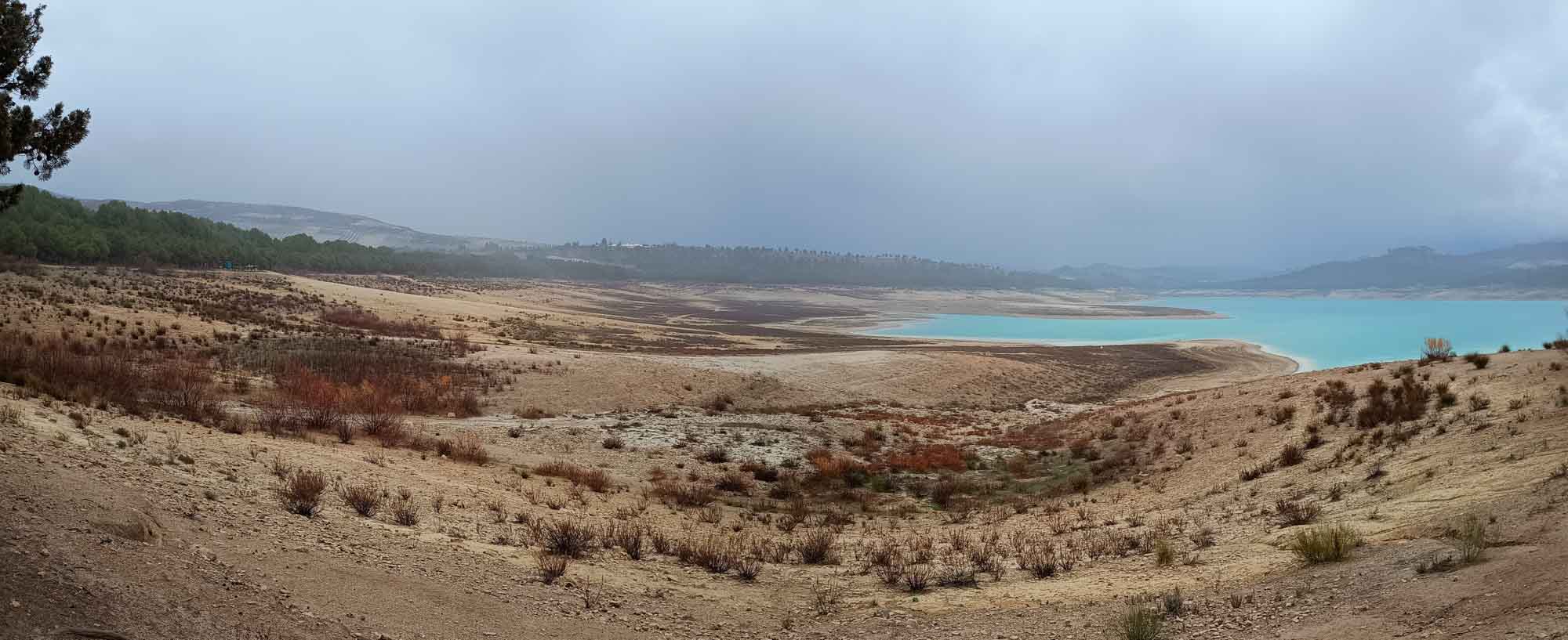 Natürlich passte Bruno in der Nacht auf uns auf. Und er war auch zur Stelle, als wir zu unserem Morgenspaziergang aufbrachen. Eigentlich wollten wir noch einmal nach dem Reh schauen, aber in Anbetracht, dass uns Bruno begleitete, entschieden wir uns für die andere Richtung. Wir waren kaum losgegangen, als ein weiter noch größerer weißer Hund, der offensichtlich ebenfalls ein Streuner war, aus einem Weg heraustrat. Mit Bruno fühlten wir uns sicher und marschierten mit Berta einfach vorbei während Bruno sich kurz mit seinem Kollegen beschnüffelte. Danach gingen wir zu dritt weiter. Es war ein richtiger gemeinsamer Spaziergang. Berta freute sich sichtlich hinter Bruno hinterher zu laufen, der unsere kleine Gruppe anführte. Hin und wieder blieb er stehen, damit wir aufschließen konnten. Als wir umkehrten lief er eine Weile neben uns und ging danach wieder nach vorne. Und dann blieben die beiden Hunde plötzlich direkt nebeneinander stehen. 20 m weiter stand der große weiße Hund mitten auf dem Weg. Offensichtlich überließen es uns es die zwei, den Weg frei zu machen. Michael ging voran, begrüßte den mächtigen Kerl, kraulte ihm dabei kurz hinter den Ohren und ging dann an ihm vorbei. Berta folgte unmittelbar danach. Nur Bruno war noch etwas länger stehengeblieben. Er wartete, bis der andere bei ihm war und knurrte ihn dann einmal an, bevor her gelassen hinter uns herlief. Wieder beim Wohnmobil bekamen alles etwas zu Essen. Berta im Wohnmobil und Bruno Draußen. Er bekam eine ordentliche Portion und wir hinterließen noch etwas mehr. Gebrauchen konnte er es. Dann machten wir uns langsam abfahrbereit. Aber zuvor mussten wir noch einmal nach dem Reh sehen. Michael signalisierte Bruno liegenzubleiben, was dieser bereitwillig tat und ging anschließend wieder zu dem Graben, in dem das Reh zuletzt gelegen hatte. Der kurze Moment der Freude, als das Reh nicht mehr an der Stelle zu sehen war, wo es gestern noch war, wich einem Erschrecken, als er die spärlichen Reste des Tieres etwas 10 m weiter im Graben sah. Der Kopf war noch vollständig und die Augen noch offen. Daneben das Gerippe. Die Hinterläufe fehlten vollständig und auch vom Fleisch und den Innereien war nichts mehr übrig. Also war es doch ein Assfresser gewesen, den Michael kurz zuvor hat wegfliegen sehen. Der Anblick war nicht ganz so schön, aber wir hofften, dass das Tier gestern irgendwann friedlich eingeschlafen ist und sich die anderen Tiere in der Nacht über das Fleisch gefreut hatten. Irgendwie ist es dann doch Natur. Bruno hatte brav gewartet und Michael verabschiedete sich schon einmal von ihm. Danach verschwand er, als hätte er geahnt, dass es ein Abschied werden würde und er es sich und uns etwas leichter machen wollte. Wir dachten noch eine Weile über ihn nach als wir gemütlich weiter entlang des Nationalparks fuhren. In dem kleinen Örtchen Jamala, hier hatten wir uns vor zwei Jahren eine Schraube in den Reifen gefahren, saßen auch zwei große Steuner, eine weiße Hündin und ein brauner Rüde am Randstreifen und liefen den langsam vorbeifahrenden Autos hinterher. Zufällig saßen sie direkt gegenüber einem Brunnen, aus dem wir eigentlich Wasser zapfen wollten. Also wendeten und hielten wir direkt bei den beiden, die auch gleich vor der sich öffnenden Tür standen. Nachdem sie eine kleine Streicheleinheit und eine erste kleine Portion Trockenfutter bekommen hatten, die aber schneller weg war, als wir sie hingelegt hatten, gab es noch einen ordentlichen Nachschlag. Das Wasser lief leider so langsam aus dem Brunnen, dass wir es gleich wieder aufgaben. Es hatte auch wieder angefangen zu regnen und wir wären sofort durchweicht gewesen. Also fuhren wir weiter und erreichten nach weiteren 20 Minuten den Stausee von Bermejales. So schön türkis, wie er uns anleuchtete hatten wir ihn gar nicht in Erinnerung. Hier war Berta vor zwei Jahren das erste Mal so schön über den Sand gewetzt. Eigentlich hatten wir vor zu bleiben, es war aber erst 14 Uhr, es regnete in Strömen und sollte laut Wetterbericht heute auch den ganzen Tag so bleiben. So fuhren wir weiter, tankten unterwegs an einem anderen Brunnen noch etwas Wasser auf und kamen gegen 16 Uhr in Granada zum Einkaufen an. Der Regen hatte zwischenzeitlich aufgehört und die Sonne hatte sich an der einen oder anderen Stelle ein kleines Loch geschaffen. So war mal ein Berg, die Alhambra, ein kleines Dorf oder einfach nur ein Haus strahlend hell erleuchtet, während alles andere im Schatten der Wolken lag. Danach fuhren wir quer durch die Stadt zur Alhambra, wo wir etwas oberhalb der alten Festung am Wegrand einen Übernachtungsplatz für uns fanden. Wir machten noch einen kleinen Abendspaziergang, der überraschenderweise trocken anfing aber schließlich doch ziemlich nass endete. Nachdem Berta wieder trockengerubbelt war, machten wir uns auch ein leckeres Abendessen und dann war mal wieder Spielen angesagt.