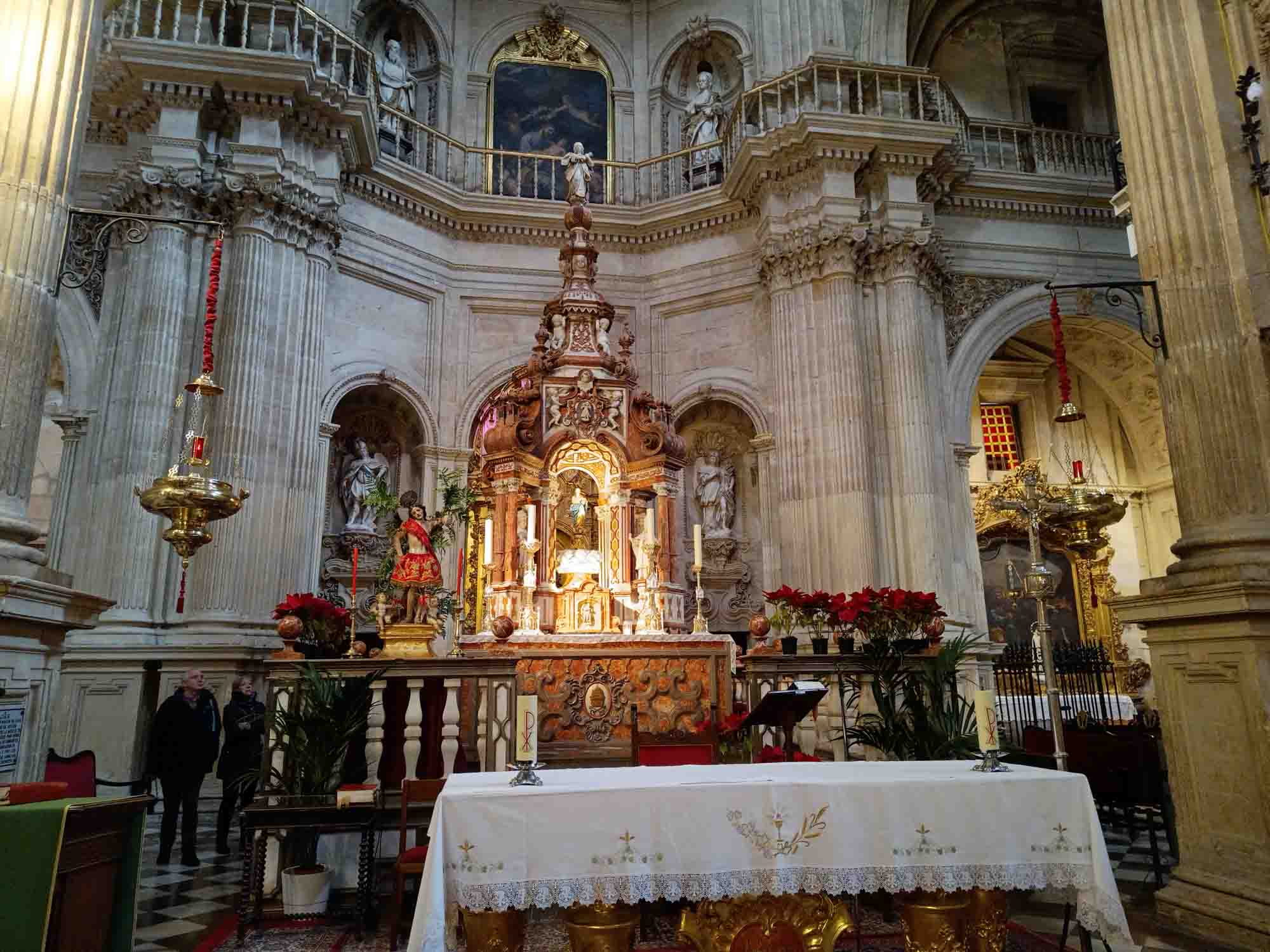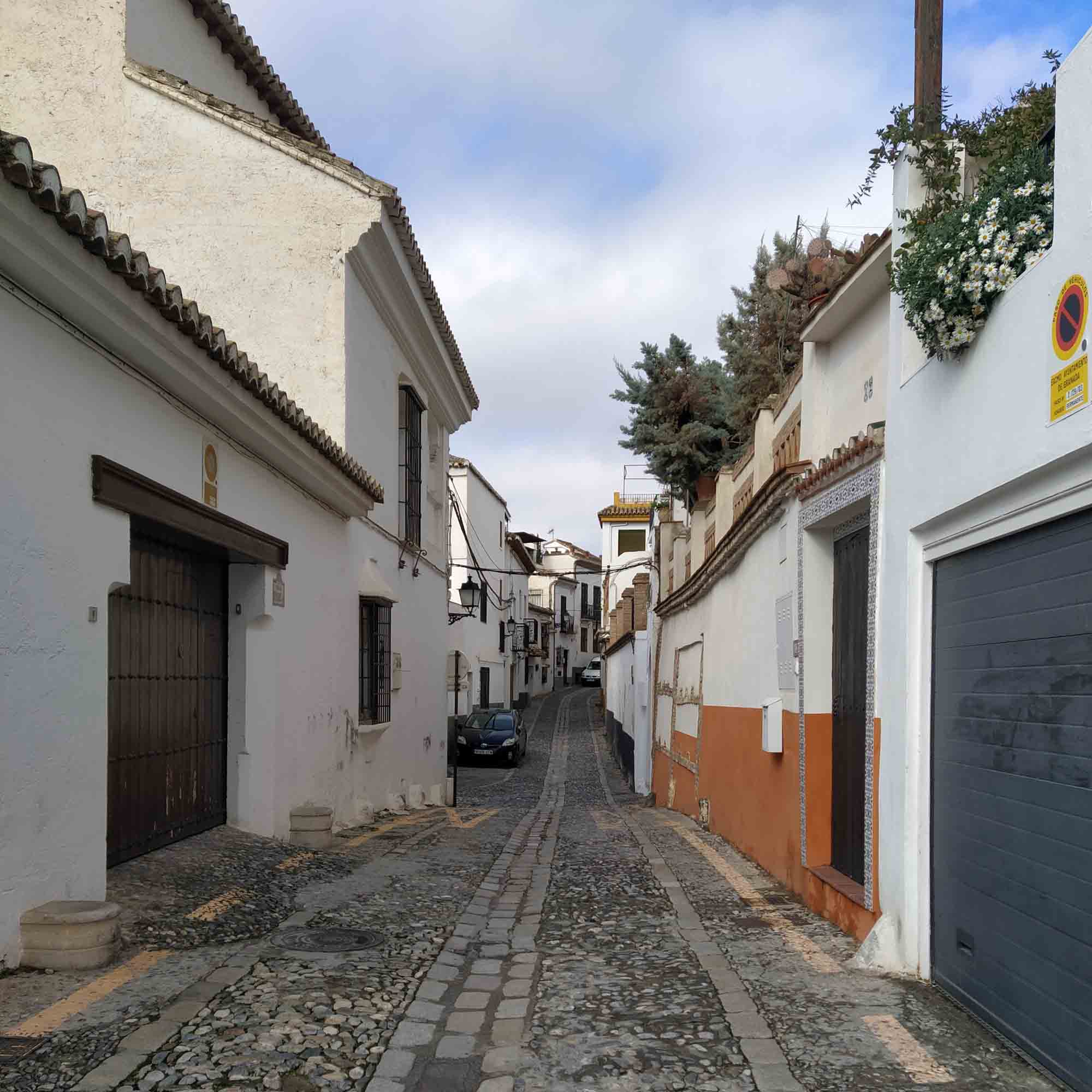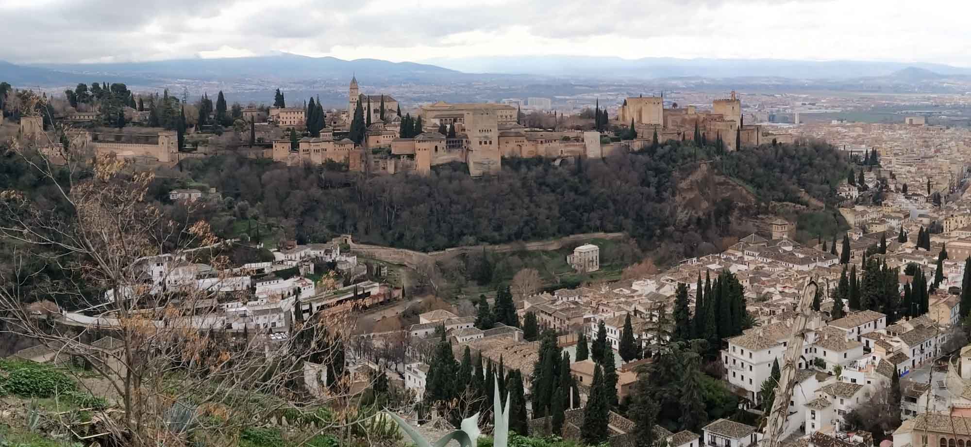 Es war sehr praktisch, unweit der Alhambra übernachtet zu haben. So konnten wir nach dem morgendlichen Spaziergang und Frühstück einfach zu Fuß in die Stadt hinunterlaufen. Dabei kamen wir natürlich an der Festung vorbei und konnten von außen bewundern, was wir vor zwei Jahren von innen gesehen hatten. Unser Weg führte uns als erstes in den Stadtteil Albacín, ein sehr alter und gemütlicher Teil der Stadt mit kleinen Häusern, engen Gassen und vielen vielen Treppen. Der Nachteil von Albacín war, das es auf einem Berg lag, auf den wir natürlich bis zum Aussichtspunkt San Miguel Alto hochlaufen mussten, um von dort einen tollen Blick auf die Alhambra und natürlich auf Albacín zu bekommen. Zurück nahmen wir den direkten Weg, der auf einem steilen Pfad quer durch die kleinen Behausungen der Zigeuner führte. Danach nahmen wir den Weg am Kanal entlang bis in die Altstadt von Granada wo wir, nachdem wir eine Palästinenserdemo durchquert hatten, bis zur Kathedrale gingen. Danach machten wir uns auf den Rückweg und waren 3 1/2 h später wieder bei unserem Wohnmobil, wo wir uns bei einem Kaffee und den unterwegs gekauften Teilchen stärkten. Nach einem kleinen aber nutzlosen Halt bei MediaMarkt (wir brauchten noch einen Satellitenstecker, den sie aber leider nicht hatten) fuhren wir nordwärts zu unserem avisierten Übernachtungsplatz. Dieser versprach sehr schön zu werden, war aber leider fast 80 km entfernt. Leider erwies sich die Strecke, die Google für uns ausgesucht hatte als nicht machbar. Erst standen wir mitten in einem kleinen eng verwinkelten Dorf in den Bergen und mussten einen Rückzieher machen und der 5 km zurückliegende ursprünglich von Google vorgeschlagene Weg war noch schlimmer. Erst führte er durch eine Furt, was noch kein Problem war, dann quer über ein Bahngleis, auf matschigem Weg durch eine Olivenplantage und dann auf einem ausgewaschenen Weg mit tiefen Furchen steil auf einen Berg. Als wir rechts und links wegen der eng stehenden Bäume nicht mehr ausweichen konnten, gaben wir auf und fuhren etwa 1 km auf diesem furchtbaren von Furchen durchzogenen Weg zurück bis wir im Matsch der Olivenplantage wenden konnten. Danach fuhren wir noch einmal 10 km die Straße zurück, die wir gekommen waren, um dann die Autobahn zu nehmen. Auf der rechten Seite sahen wir die Berge vorbeiziehen, an denen wir eben noch gescheitert waren. Etwa 1 1/2 h später als ursprünglich geplant kamen wir dann im Dunkeln auf unserem Platz an. Er war schön einsam und abgelegen inmitten von Feldern gelegen. Aber im Dunkeln beließen wir es auf dem lehmigen Boden bei einem eher kurzen Spaziergang. Wir machten es uns lieber drinnen gemütlich und erholten uns beim Abendessen und Spielen von den Aufregungen des Tages.