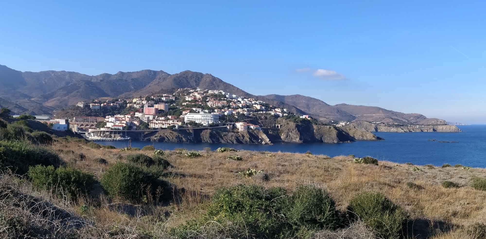 Den morgendlichen Spaziergang machten wir in dem kleinen Wäldchen, in dem wir standen. Mittendrin war eine freie Fläche, in der etliche Trimm-Dich-Geräte aufgebaut waren. Wir hatten aber Angst, uns zu verletzten und ließen, Reck, Barren, usw. lieber unbehelligt stehen. Nach dem Frühstück fuhren wir zum Einkaufen und dann weiter unmittelbar der Küstenlinie folgend am Rande der Pyrenäen entlang nach Spanien. Ein wenig erinnerte die kurvige, nicht enden wollende Straße an die Amalfiküste, die wir im letzten Jahr verbotenerweise befahren hatten, allerdings in der französisch/spanisch breiten Version. Immer wieder boten sich sehr schöne Blicke von ober herab auf die in den Taleinschnitten liegenden Ortschaften und meistens gab es auch einen kieseligen Geröllstrand, der im Sommer bestimmt ziemlich voll sein dürfte. Zu dieser Jahreszeit war dies nicht so und auch die Straßen waren leer. Nach einer Kaffee- und für Berta Schlafpause fuhren wir weiter zum Cap de Creus, wo wir eigentlich bis zum Leuchtturm fahren wollten, um dort spazieren zu gehen. Allerdings hinderte uns ein Verbotsschild für Wohnmobile 5 km vor dem Ziel an der Weiterfahrt. Zum Glück gab es 1 km zurück einen Stellplatz, auf dem wir uns dann auch gleich für die Nacht einquartierten. Also machten wir aus der Not eine Tugend und gingen vor dort aus zu einem nahegelegenen Strand. Dort entdeckten wir zufällig, dass an diesem Strand ein Haus von Salvatore Dali steht, das man (natürlich nur ohne Hund) auch besichtigen kann. Wir verzichten auf das Innere und bewunderten die schönen weiß getünchten Häuser und die perfekte Lage. Wie schön muss es damals hier gewesen sein, als noch nicht so viele Touristen (zu denen natürlich auch wir gehören) diesen kleinen malerischen Ort bevölkerten. Wir waren überrascht, wie viele es selbst im Winter waren. Nicht nur unser Parkplatz hatte sich gefüllt. Der Parkplatz unmittelbar am Strand war dicht an dicht mit Wohnmobilen zugestellt. Nachdem wir zurück waren, gab es noch ein kaltes Abendessen mit einer ausgesprochen leckeren dunklen fleischigen Tomate, die Michael's Vater uns mitgegeben hatte. Hoffentlich finden wir hier ebenso tolle Tomaten. Andere werden wir wohl nie wieder essen können, so lecker war sie.