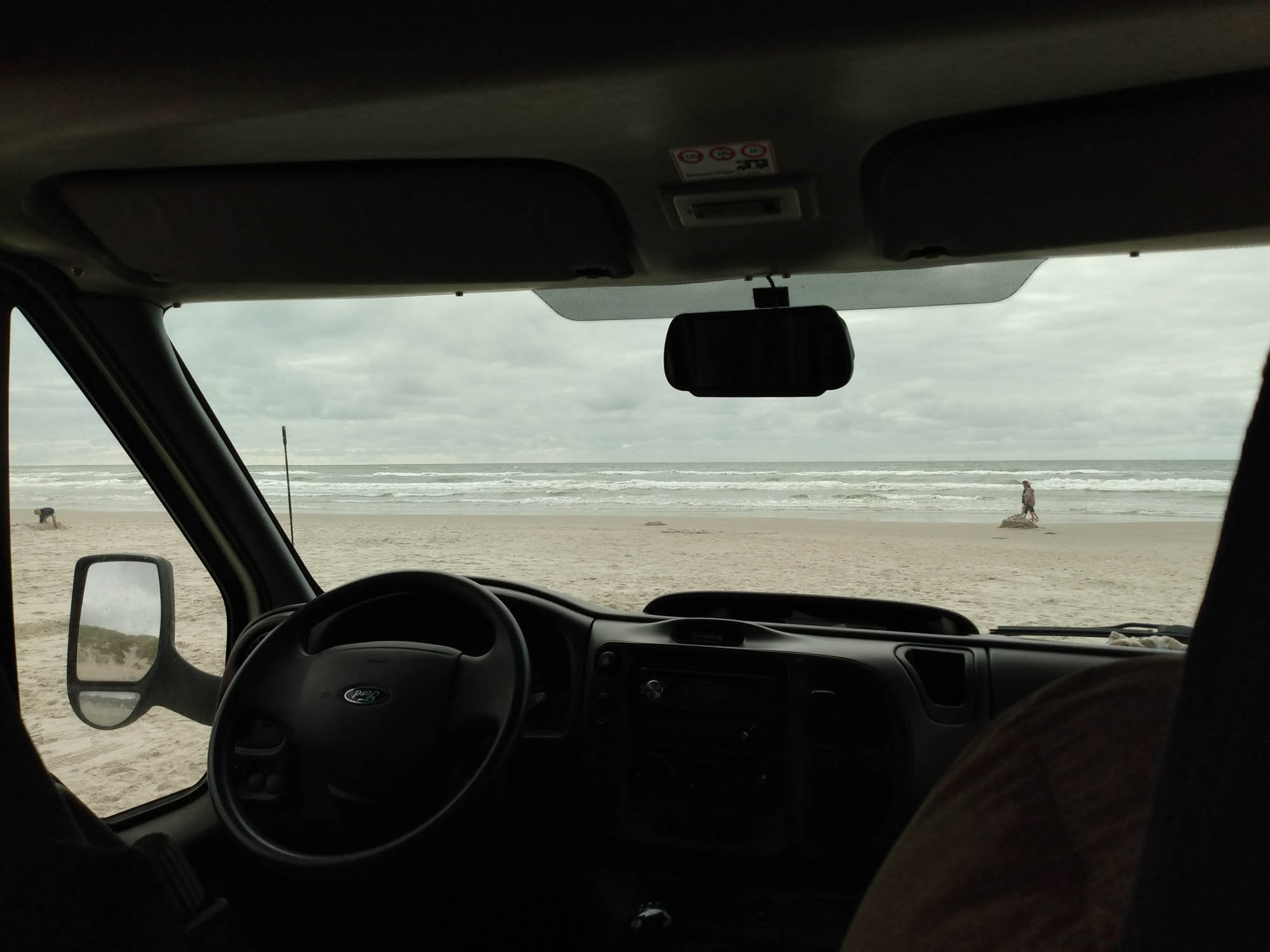 In der Nacht hatte es mal wieder geregnet und es war auch morgens noch ziemlich trüb als wir aufstanden. Geschlafen haben wir alle mal wieder sehr gut. So gut, dass Berta nicht wirklich aufstehen wollten und dann überhaupt keine Lust hatte, spazieren zu gehen. Mit großer Mühe und ganz viel Überredenskunst ging es dann doch. Nach dem Frühstück machten wir uns dann bei Nieselregen auf den Weg nach Ringkøping. Erst zum Einkaufen und dann in die "Altstadt" zum Schlendern. Etwas besonderes hat die Stadt nicht zu bieten. Einen Hafen, eine verkehrsberuhigte Fußgängerzone mit zahlreichen Geschäften und eine einfache Kirche. Danach fuhren wir nach Søndervig zum Sandskulpturenfestival. Aufgrund des Nieselregens verzichteten wir auf einen Besuch und fuhren über Hvide Sande südwärts bis zum Vejers Strand. Unterwegs kamen wir an einem aktiven Schießgebiet vorbei, in dem sich etliche Soldaten tummelten und es waren auch einige Militärfahrzeuge unterwegs. Auch am Vejers Strand konnten wir mit dem Wohnmobil auf den Strand und direkt vor das Wasser fahren. Dort angekommen hörte es auf zu regnen und wir machten gleich einen ausgiebigen Spaziergang über den langen und breiten Strand aus feinstem Zuckersand. Am Ende des befahrbaren Strandes machte sich Berta mit zwei Franzosen bekannt, die dort übernachten wollten und sich gerade Abendbrot machten. Es gab Lammkeule. Und Berta guckte so lieb, dass die beiden ihr die frischen Knochen gaben, die vom entbeinen übrig geblieben waren. Sie freute sich sehr und hing auf dem Rückweg mit der Nase die ganze Zeit an den beiden Knochen, die Michael netterweise für sie trug. Wieder beim Wohnmobil machte sie sich gleich darüber her und schlief anschließend erschöpft ein, während wir ein wenig spielten. Gegen 18:30 Uhr fuhren wir weiter. Auch wenn es am Strand kein explizites Verbotsschild gab, ist es in Dänemark grundsätzlich nicht erlaubt am Strand zu übernachten. Auch wenn es vermutlich kein Problem gewesen wären, wollten wir es nicht darauf ankommen lassen und fuhren in Richtung Esbjerg. Dort fanden wir auf einem kleinen etwas versteckten Rastplatz eine ruhige Ecke und teilten uns den Platz nur mit einem Wagen aus Frankreich. Die Insassen haben wir weder gesehen noch gehört. So verbrachten wir den Abend in Ruhe, abgesehen von einem leichten Rauschen des Windes in den Blättern der Bäume, das jedoch kein Vergleich war zu dem Brausen der Wellen am Strand, das wir am Nachmittag genossen haben.
