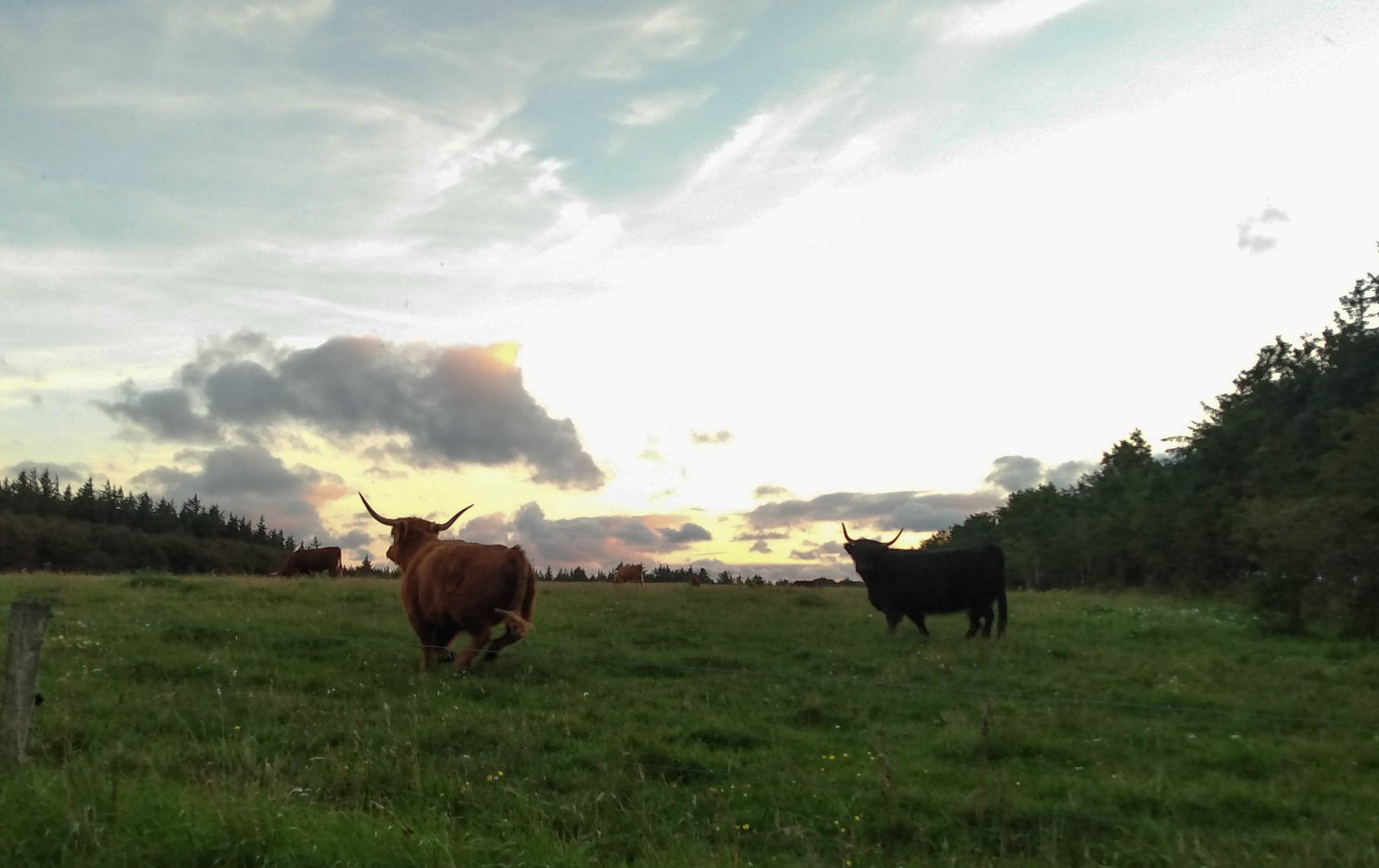 Es war völlig ruhig und einsam auf unserem kleinen Picknickplatz. Trotzdem waren wir relativ früh wach und machten erstmal einen kleinen Spaziergang durch die Heidelandschaft. Nachdem wir auch gefrühstiückt hatten, machten wir uns wieder auf den Weg. Die Landschaft änderte sich auch bei unserer Fahrt um den Fjord Nissum Bredning nicht. Typisch Dänische Kulturlandschaft, die von einer mit Heide und Strandhafer bewachsenen Dünenlandschaft ersetzt wurde, als wir wieder an die Küste kamen. Hier war auch unserer erster Halt, wo wie entlang der Steilküste von Lemvig eine Wanderung bis zum Leuchturm von Bovbjerg machten. Auf dem Hinweg war es in herrlichstem Sonnenschein ein Strandspaziergang auf dem wir erst eine tote Robbe entdeckten und dann die Startversuche von einigen Paraglidern beobachten konnten. Zurück gingen wir oberhalb der Steilküste und konnten so die abfallende Küste, den Strand, das Meer und die Küstenlandschaft gleichzeitig bewundern. Als wir zurück waren, machten wir noch eine Kaffeepause. Berta konnte in dieser Zeit ein wenig schlafen. Dann ging es auch schon immer hinter der Düne, die uns vom Meer trennte, entlang zu einem Minirastplatz inmitten von Weizenfeldern, der aber ringsherum von Bäumen umsäumt war und uns somit etwas Wind- und Sichtschutz gab. Da nicht genug Platz für einen zweiten Wagen gewesen ist, machten wir uns auch keinerlei Gedanken darum, ob wir oder ob wir nicht alleine bleiben würden. Aber aus kam auch niemand, um es zu versuchen.