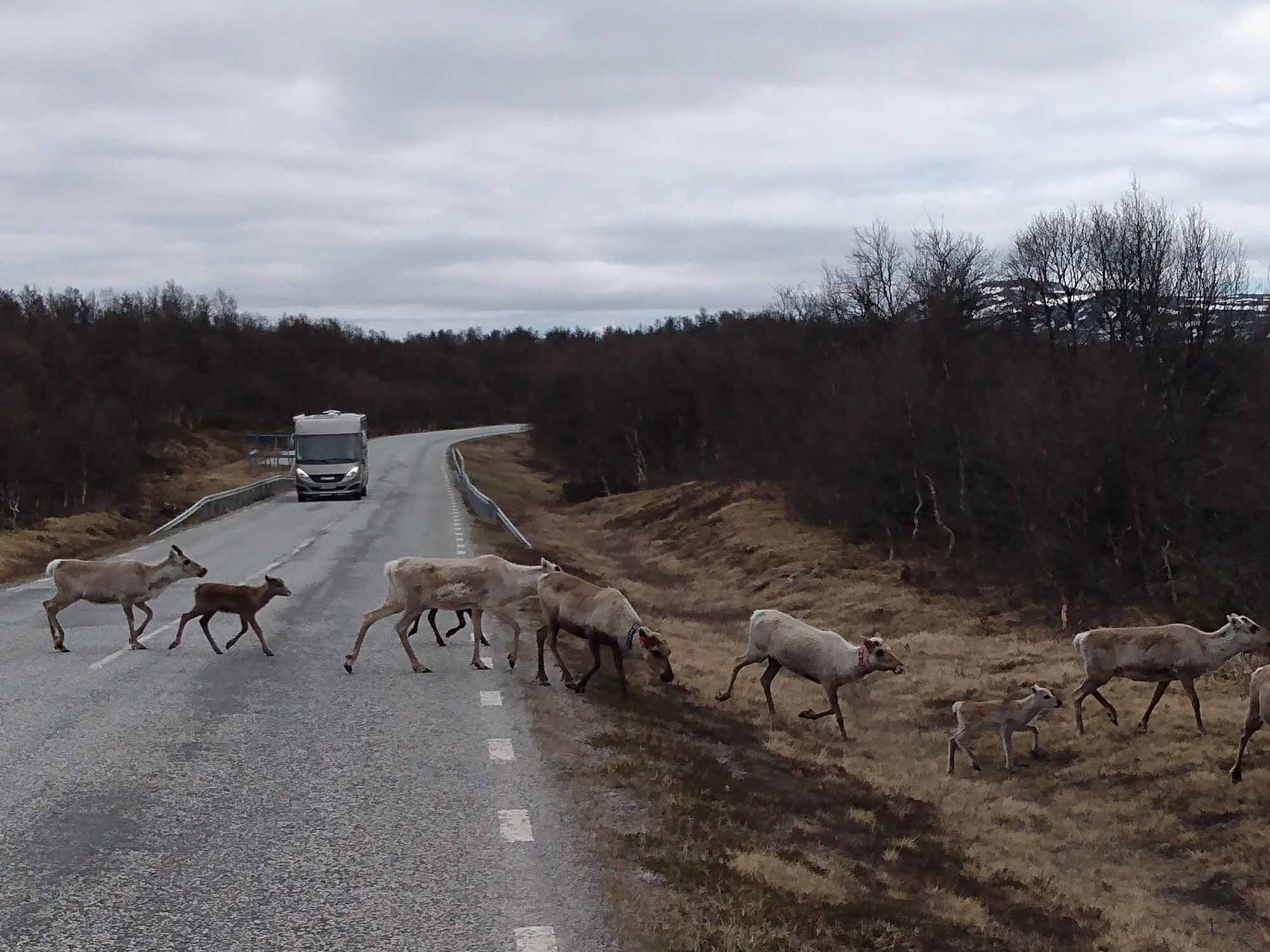Strahlend blauer Himmel begrüßte uns am Morgen. Die Berge sahen ganz anders aus, als wir sie das erste Mal so richtig zu sehen bekamen. Heute bekam Berta nach ihrem Morgenspaziergang kein Frühstück. Das Essen gab es diesmal während der Fahrt. Dadurch war sie so abgelenkt, dass sie eine Weile vergessen hat, daß sie Angst beim Autofahren hat. Für uns ein voller Erfolg, wenngleich auch nur ein erster Anfang. Als wir das Sonnental weiter in Richtung Oppdal fuhren, passte der Name endlich. In Oppdal hielten wir kurz für einen Einkauf und machten, nachdem wir auf die E6 in Richtung Trondheim abgebogen waren, kurz danach eine Pause in einem Wald. Hier verbrachte Berta die Zeit draußen auf der Decke und konnte sich ein wenig erholen ehe wir weiterfuhren. Ca. 60 km vor Trondheim bogen wir nach rechts in die Berge ab und richteten uns auf dem Parkplatz einer Entsorgungsstation in Bondal für die Nacht ein. Bei einem Spaziergang entdeckten wir einen noch schöneren Platz bei der örtlichen Langlaufskiarena, entschieden uns aber dennoch dafür, einfach stehen zu bleiben. Danach wie üblich Abendbrot, Spielen, Schlafen gehen.
