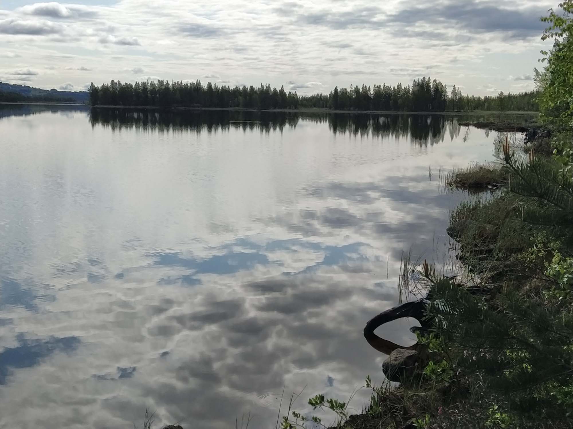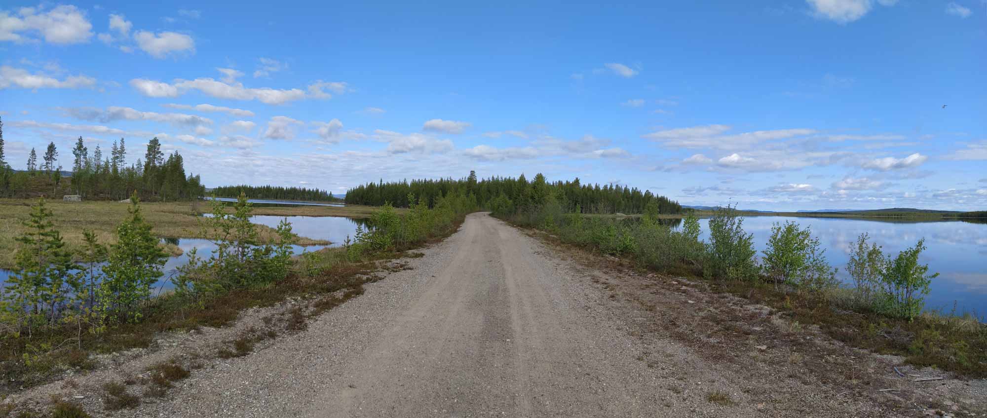 Der Platz war sehr schön aber es war morgens noch etwas bewölkt und da wir noch relativ hoch in den Bergen waren, stand zu befürchten, dass wir heute nicht so viel draußen sitzen könnten. Also entschieden wir uns bis nach Sveg hinunter zu fahren. Dort kannten wir bereits einen Platz am Stausee von Sveg, an dem wir es vor zwei Jahren sehr schön fanden. Also machten wir uns nach dem Morgenspaziergang wieder auf den Weg. Aneta und Berta liefen wieder zu Fuß zur Straße zurück, um das anfängliche Geruckel zu vermeiden. Aber wir hätten auch bei der neuen Routine mit dem Futter bleiben sollen. Auch wenn die Straße weiterhin schön glatt und gerade war, zitterte Berta noch eine ganze Weile. Nach einem Halt zum Einkaufen in Hede war es aber nicht mehr weit. Den Platz erkannten wir auch sofort wieder. Nur dass in der Zwischenzeit Schilder aufgestellt worden waren, dass Camping hier verboten ist. Also mussten wir uns entlang der holprigen kleinen Straße etwas anderes Suchen. Unsere Alternative am Wasser war leider auch keine. Nachdem wir 10 km gefahren und weitere 600 m zu Fuß zum See gelaufen waren, war klar, dass wir nicht bis zum Ufer kommen würden. Der Weg war auf einem kleinen Stück einfach zu zugewachsen. Wir fuhren also ein kurzes Stück zurück und platzierten uns auf einem großen freien Platz neben der Schotterstraße. Dort standen wir immerhin mit Blick auf den See in zwischen feuchten Wiesen auf denen die Kraniche herumliefen.