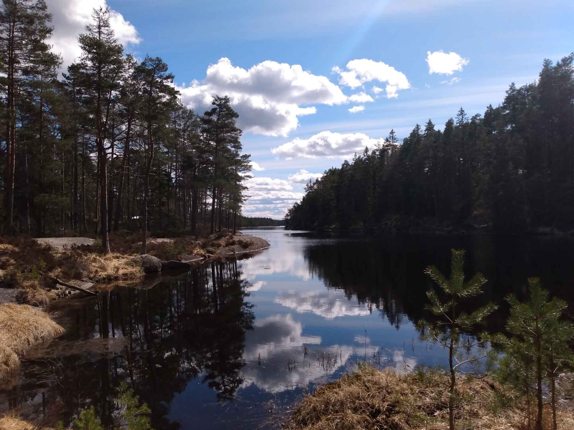 Nach all den Wanderungen der letzten Tage gönnten wir uns einen Tag Pause. Keine Wanderung. Noch nicht einmal ein Spaziergang. Nichts. Einfach mal ausruhen. Gegen Abend fuhren wir dann aber doch los. Zunächst noch einmal zurück zu dem Örtchen Ed. Wir hatten herausgefunden, dass es dort ein Feuer anlässlich der heutigen Walpurgisnacht geben sollte. Wegen Corona waren vor zwei Jahren alle Feuer abgesagt worden und so nutzten wir diesmal die Gelegenheit. Das Feuer war auf einem Floß im See unweit des Ufers aufgebaut worden. Auf dem Terassenplatz des Ortes hatten sich bereits einige Menschen versammelt die immer in kleinen Gruppen mit 3-4 Leuten locker verstreut darauf warteten, dass es los ging. Um 21:30 Uhr (exakt zum Ende der Dämmerung) war es soweit. Ein Mann trat auf die Bühne und hielt eine Rede (natürlich auf Schwedisch). Danach sang ein Männerchor (ziemlich gut) und das Feuer auf dem See wurde entzündet. Dann gab es weitere Reden und der Chor gab noch das eine oder andere Ständchen zum Besten. Zum Abschluß gab es noch ein Feuerwerk, das wir aber nur am Rande mitbekamen, da wir uns bereits auf den Weg zum Wohnmobil gemacht hatten. Es ging gerade los, als wir einstiegen und Berta schien es gar nicht mitbekommen zu haben. Wir fuhren die 20 km wieder zurück, am Nationalpark Tresticklan vorbei und anschließend über die Grenze nach Norwegen. Außer einer Kamera, die unser Kennzeichen registrierte gab es an diesem Übergang keine Kontrolle. Völlig unspektakulär also. Es war spät geworden und so hielten wir kurz vor Mitternacht einfach auf einem Parkplatz an der Straße, um dort zu übernachten. Nicht ganz so schön, wie der letzte Platz aber immerhin waren wir jetzt in Norwegen.