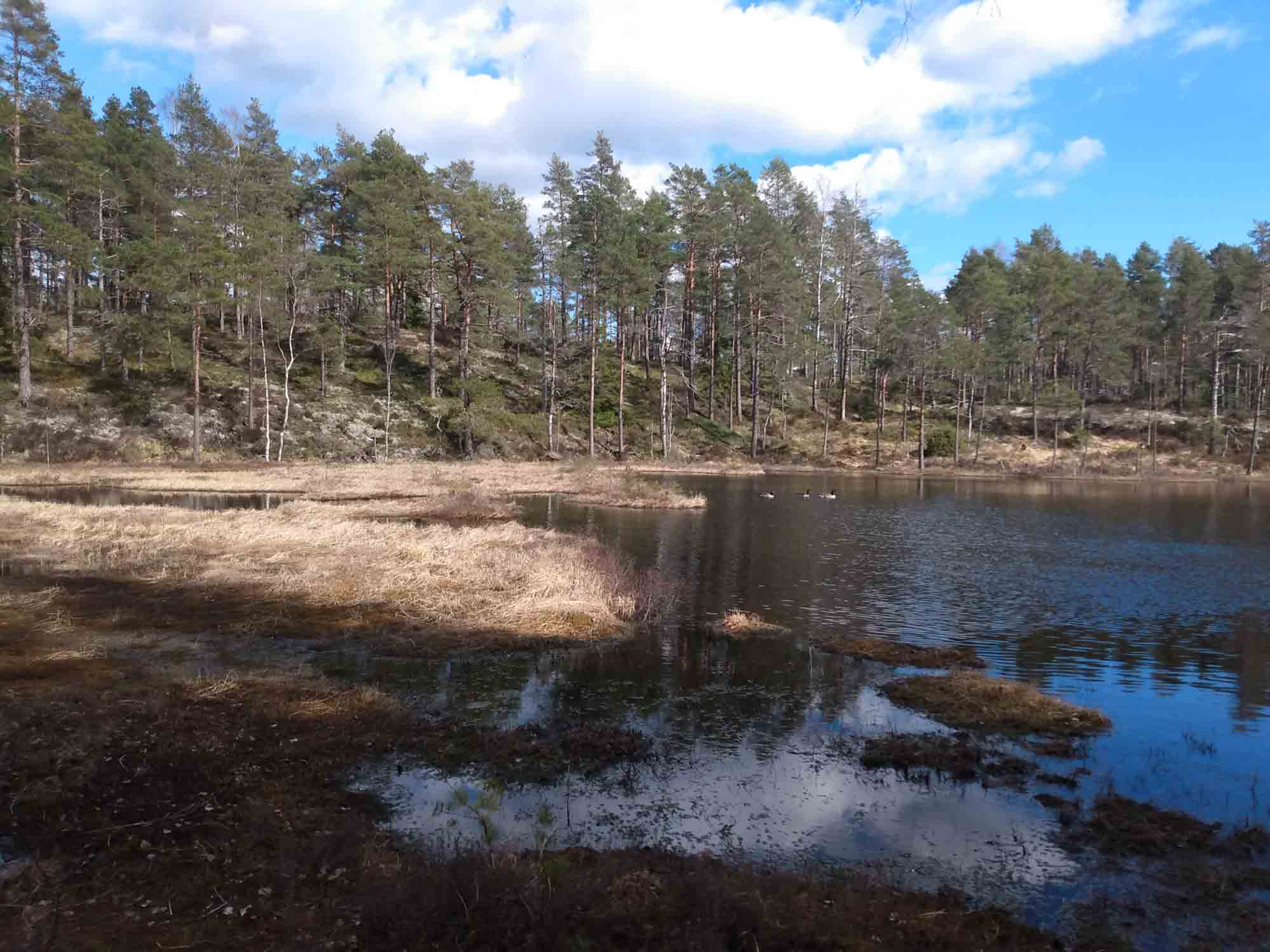 Die zweite Wanderung, die wir im Nationalpark Tresticklan machten, war ein gelber Rundweg von 10,5 km Länge. Bergauf und bergab ging es quer durch die von Furchen und Seen durchzogene Waldlandschaft. Berta lief die meiste Zeit frei. Nur auf dem Rückweg nahmen wir sie in Erinnerung an ihren gestrigen Ausflug wieder an die Leine. So liefen wir uns müde und verbrachten den restlichen Teil des Tages im Wohnmobil. Draußen war es zwar schön sonnig aber immer noch zu kalt, um dort zu sitzen.