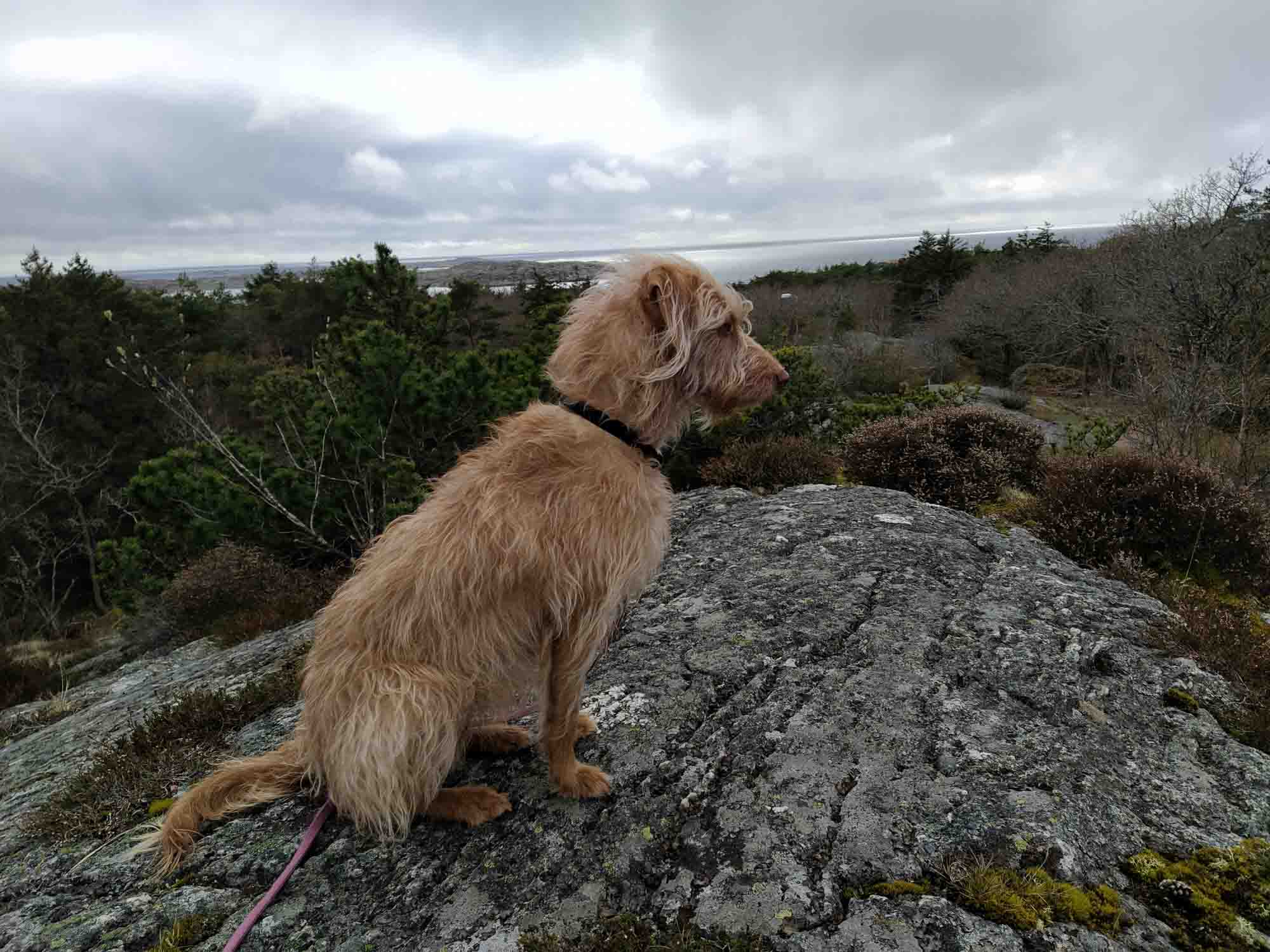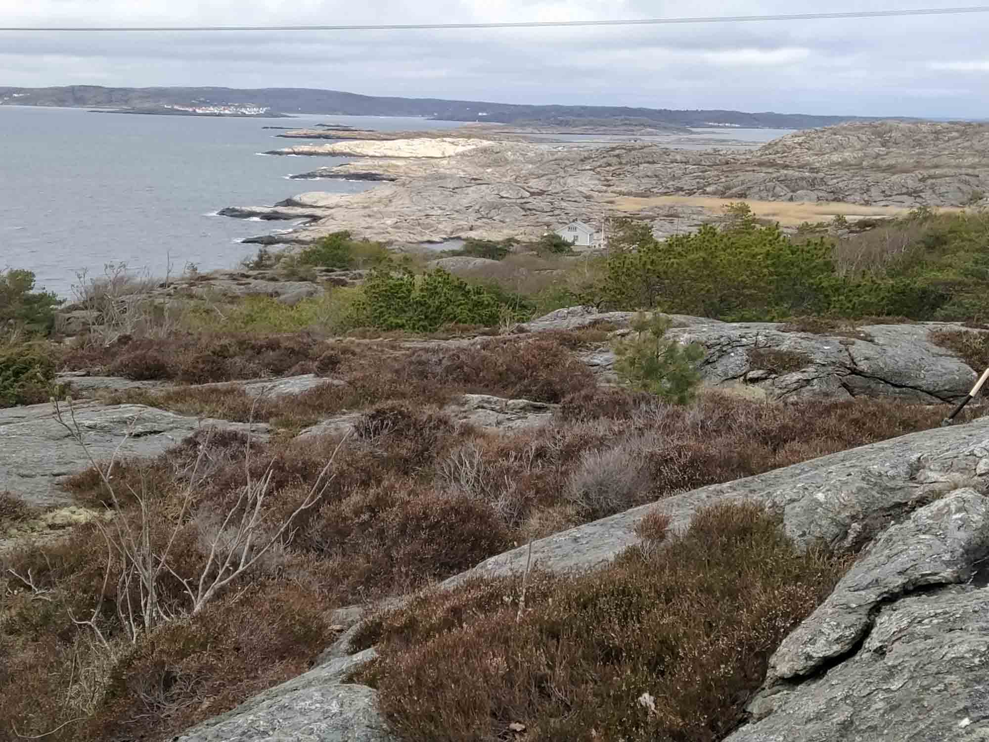 Nach einem kurzen Spaziergang, in der Nacht hatte es geregnet und alle Wege standen unter Wasser, fuhren wir um Göteborg herum und dann nach Marstrand. Die zahlreichen kostenpflichtigen Parkplätze sind Zeugen, dass dies ein beliebter Urlaubsort für Schweden ist. Noch waren sie alle leer, aber im Sommer dürften sie gut besetzt sein. Wir fanden einen Wanderparkplatz ca. 500 m außerhalb des kleinen Ortes, dem wohl einzigen kostenlosen Parkplatz in ganz Marstrand. Dann wanderten wir zurück in den Ort und ließen uns von einer kleinen Fähre auf die vorgelagerte Insel übersetzen. Dort spazierten wir zur Festung, die als Hotel genutzt wird und weiter durch das Naturschutzgebiet der Insel. Eigentlich wollten wir Berta hier frei laufen lassen. Gerade noch rechtzeitig entdeckten wir die wilden Gemsen und nahmen Berta dann doch lieber an die Leine. Auf dem Rückweg trafen wir einen Schweden, mit dem wir uns sogar auf Deutsch unterhalten konnten. Er lebt einsam auf einer der kleinen Scheereninseln und hat einen Bruder in Garmisch-Partenkirchen, weswegen er dort häufig zum Wandern ist. Danach fuhren wir von der Küste weg ins Inland und übernachteten an einem kleinen See im Naturresevat Svartedalen