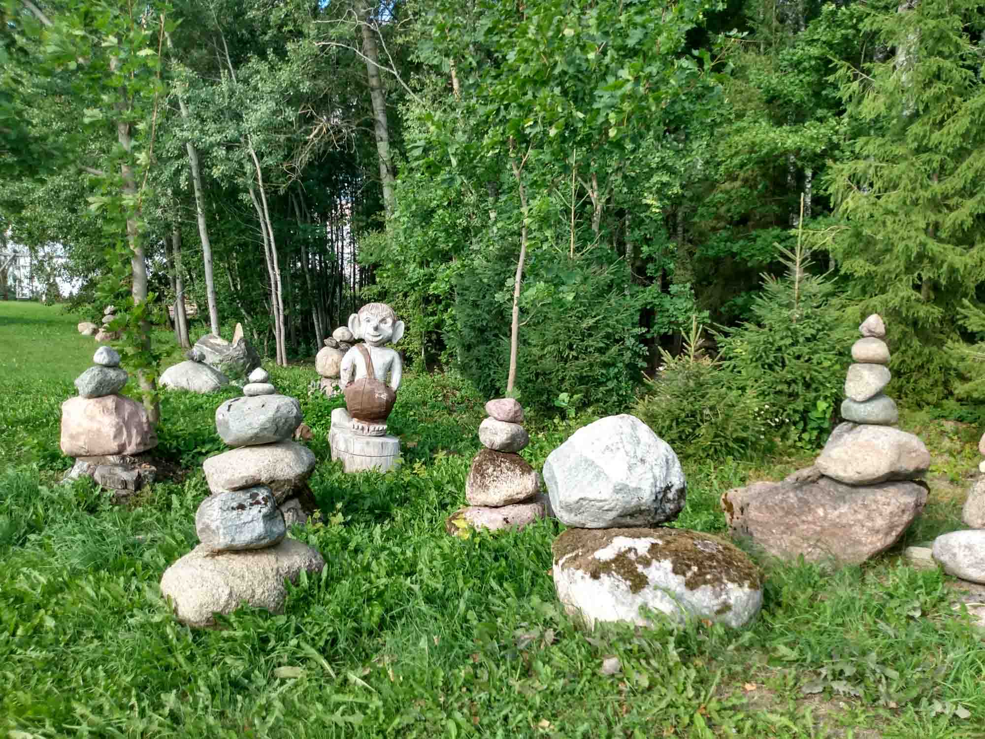 Die Tage waren heiß. Sehr heiß. Und das im nördlichsten Teil des Baltikums. Bei 34 Grad verzogen wir uns in den Wald und dort ließ es sich im Schatten der Bäume ganz gut aushalten. Spaziergänge machten wir morgens und am späten Abend, wenn es etwas kühler war. Tagsüber spielten wir und hingen einfach ein wenig herum. Am Abend machten wir uns dann immer ein kleines Feuerchen und konnten so noch lange draußen sitzen. Die Jungens mit ihrer lauten Musik im Auto kamen auch jeden Abend vorbei, um zu sehen, ob wir noch da waren.