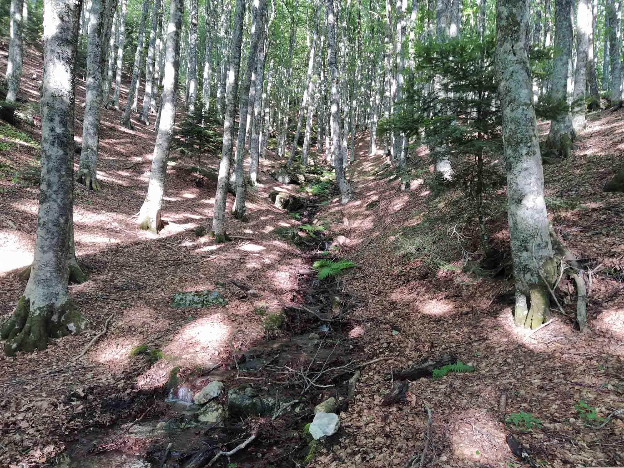 Heute sollte es weitergehen. Aber erst nach dem Frühstück und nach dem Spaziergang. Ein letztes Mal die schöne Runde gehen, die wir seit einer Woche kannten. Diesmal links herum. Aber wir waren kaum an dem Haus mit dem bellenden Hunden vorbei, als wieder einmal Kanonenschläge zu hören waren. Und noch dazu ziemlich nah. Im Haus hätte sich Berta sofort in die hinterste Ecke verkrochen, so wie sie es in den letzten Tagen immer gemacht hatte. Aber hier? Würde sie vermutlich instinktiv einfach loslaufen, wie sie es bei dem Feuerwerk in Bianco gemacht hatte. Aber sie war in Griffnähe und Michael hielt sie erstmal fest. Dann kam der nächste Kanonenschlag und Bertas Zittern war deutlich zu spüren und auch ihr Impuls, sich freizumachen und loszulaufen. Kurzerhand nahm Michael sie auf den Arm und sie war schlagartig ruhiger. Auf dem Arm tragend ging es wieder in Richtung Haus. Dann kam wieder ein Donnerschlag, Berta zappelte kurz, beruhigte sich dann aber sofort wieder. Kurz danach durfte sie auch schon wieder herunter und lief munter - fast als sei nichts gewesen - wieder zur Gittertür. Sie reagierte sogar auf das Wartesignal, als mal wieder ein Auto vorbeikam. So waren wir dann etwas früher als erwartet wieder zurück und frühstückten noch kurz, bevor wir uns daran machten, die letzten Sachen ins Auto zu laden und dann die 100 m die Auffahrt hinunter bis zum Wohnmobil zu fahren. Nach einer guten Stunde war alles verstaut. Dann noch ein kurzes erfrischendes Abschiedsbad im Pool und dann war es soweit, dass wir uns verabschieden mussten. Es waren wunderbare drei Wochen im Ferienhaus von Jutta und Manfred. Ach, wie haben sie uns verwöhnt mit leckerem Essen, gemütlichen Unterhaltungen und das allabendliche Spielen nicht zu vergessen. Es war eine tolle Zeit, aber jetzt wollten wir doch wieder langsam weiter. Das Ausrangieren war bei Tageslicht deutlich leichter als das letzte Mal bei Dunkelheit und auch die kurze Passage mit den zu engen Serpentinen hatten wir schnell hinter uns gebracht. Hinter uns fuhren Jutta und Manfred. Allerdings trennten sich unsere Wege in Lentini. Sie fuhren rechts nach Lentini zum Einkaufen, während wir nach links auf die Umgehungstraße fuhren und dann in Richtung Autobahn, um Catania zu umfahren. Kurz vor Taomina machten wir noch einen Halt, um unseren Frischwassertank mit allerbesten Quellwasser vom Ätna zu befüllen. In Taomina war sehr viel mehr los, als bei unserer Herfahrt. Ein sehr schöner Ort, um Strandurlaub zu machen. Die vielen Restaurants und die schmalen Gassen sahen sehr einladend aus. Und auch das antike Theater ist sicher einen Besuch wert. Wir beließen es beim Vorbeifahren. Mit Ausnahme von einem kurzen Halt am Strand, der Berta allerdings viel zu heiß war, fuhren wir ebenso an den zahlreichen langen Kiesstränden mit ihren weniger ansehlichen Unterkünften hinter der Straße vorbei. Einer davon hieß "Nizza von Sizilien". Aber das echte Nizza ist dann doch etwas hübscher. In Messina fuhren wir direkt bis zum Wartebereich der Fähre durch. Unser Ticket hatten wir ja schon. Die Fähre war bereits eingelaufen und als nach 5 Minuten alles entladen war, konnte wir auch schon rauf. 20 Minuten später waren wir auf der anderen Seite. Dort ging es geradewegs hinauf in die Berge des Parco National deli Aspromonte. Merklich ging die Temperatur herunter. Auf der Fähre hatten wir noch bei knapp 35 Grad geschwitzt und als wir 30 Minuten später auf dem kleinen Wanderparkplatz angekommen waren, auf dem wir übernachten wollten, waren es nur noch 21 Grad. Eine Wonne für Berta, die es gar nicht erwarten konnte, durch den Wald zu rennen. Dies ging allerdings ziemlich steil bergauf. Es wurde eine richtige kleine Wanderung, bei der wir zwischenzeitlich einem kleinen Bachlauf folgenden ziemlich am klettern waren. Die Füße blieben halbwegs trocken und glücklicherweise auch heil. Das nächste Mal sollten wir wirklich unsere Wanderschuhe anziehen. Danach freuten wir uns auf ein leckeres Abendbrot und eine kühle Nacht, in der wir bestimmt wieder gut schlafen werden.