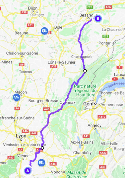 Es war 7:30 Uhr als wir am Morgen aufstanden. Das war ungewöhnlich. Vor allem für Berta, die auf dem Beifahrersitz schlief und noch gar nicht aufstehen wollte. Es brauchte noch ein Weilchen, bis sie für den Spaziergang bereit war. Nach dem Frühstück fuhren wir weiter in Richtung Heimat. Erst zu einer Tankstelle, wobei wir dann rechts und links der Straße Schnee hatten. Nach weiteren 1 1/2 Stunden kauften wir bei E.Leclerc den letzten Wein ein. Danach sollte es nicht mehr weit sein, bis zu unserem Platz auf einem Weinberg. Dieser stand bei unserer Ankunft jedoch völlig unter Wasser was ungute Erinnerungen an unser Steckenbleiben in Schweden hervorrief. Also weiter zum nächsten Platz an einem Fluß. Aber auch hier das gleiche Bild: Völlig durchweichter Boden und akute Einsinkgefahr. Der nächste Platz lag unmittelbar an einer Straße und schied ebenfalls aus. Kurz hinter Besançon fanden wir dann endlich unseren ersehnten ruhigen und einsamen Platz. Und wie es der Zufall wollte: Auf diesem Platz waren wir letztes Jahr schon einmal gewesen. Nur dass wir diesmal die Umgebung bei einem Nachtspaziergang erkundeten. Danach gab es Abendbrot, mal wieder eine heiße Dusche und ein paar Spiele. Berta war hundemüde und schlief ein paarmal im Stehen ein bevor sie sich auf ihrem Platz einrollte und sich durch nichts mehr stören ließ.