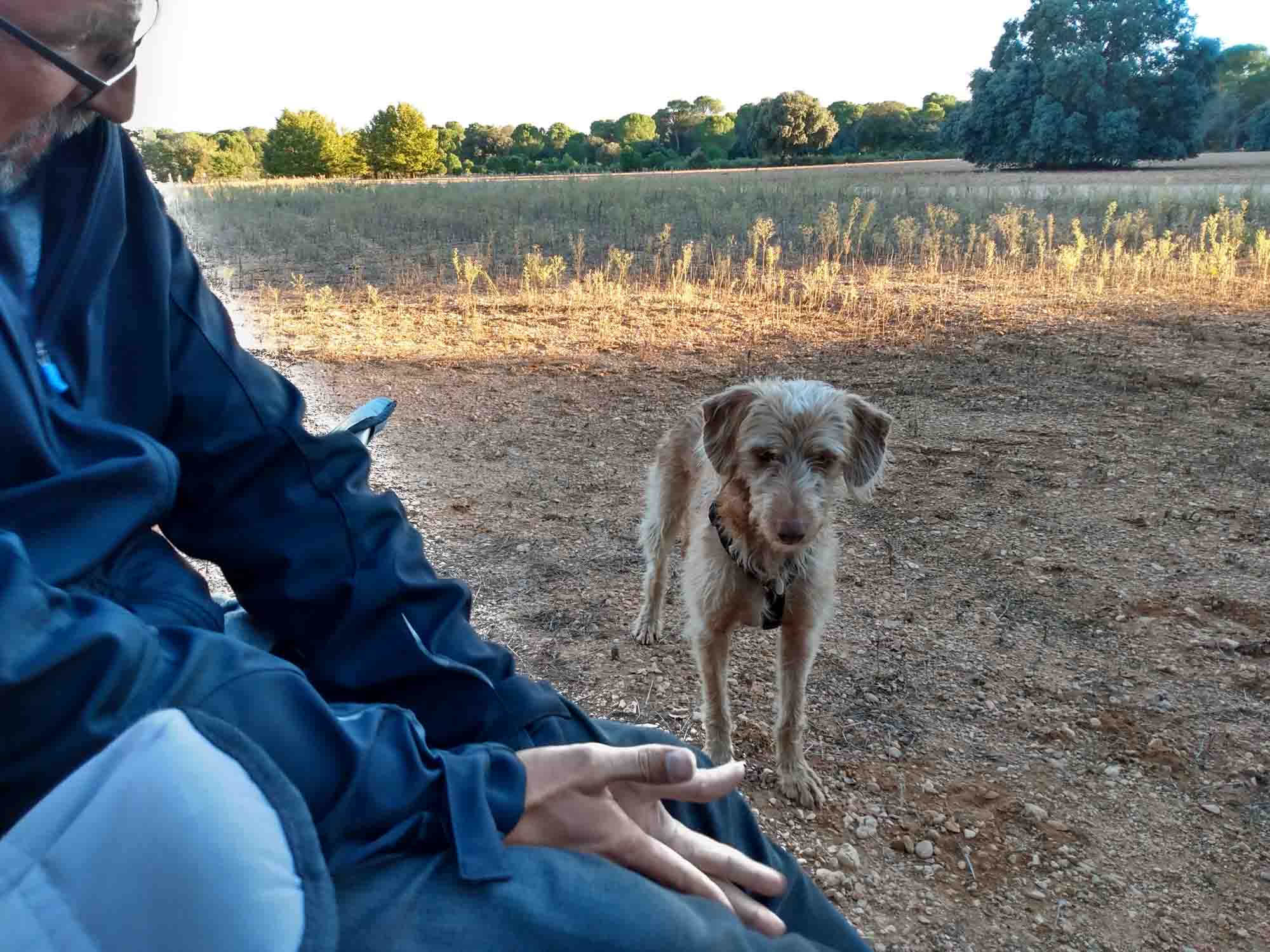 Der Spaziergang am Morgen war heute nur sehr kurz. Es war Sonntag und rund um uns herum waren bereits am frühen Morgen die Jäger am Herumballern. Nach dem Frühstück setzten wir unsere Suche nach dem idealen Platz fort. Bis zum ersten Kandidaten, einer kleinen Wiese oberhalb der Kirche von Alcaraz, war es nur etwas mehr als eine halbe Stunde. Die Wiese war leicht befahrbar und wir fanden auch schnell ein ebenes Plätzchen. Die Gegend erkundeten wir bei einem kleinen Spaziergang, trotz dem andauernden Geballere. Allerdings war die große Landstraße so gut hörbar, dass wir uns entschieden, weiterzusuchen. 45 Minuten später erreichten wir den nächsten Platz. Dieser war unweit einer etwas kleineren Landstraße und bot weitere Stellmöglichkeiten etwas tiefer im Wald. Dieser war aber ebenfalls Jagdgebiet und wir wären dort quasi mittendrin in einem privaten Jagdgebiet gewesen. Also fuhren wir noch einmal weiter, diesmal war das Ziel eine Entsorgungsstation in San Clemente. Kurz bevor wir diese erreichten, fuhren wir durch einen Pinienwald, in den einige kleine Sandpisten führten. Wir wählten zufällig einen Weg aus und kamen am anderen Ende des Waldes auf einer Wiese wieder heraus, an die ein Feld angrenzte. Der Pinienwald selbst war kein Jagdgebiet, die Felder dahinter jedoch schon. Wir stellten das Wohnmobil auf der Wiese ab und machten einen Erkundungsspaziergang am Waldrand entlang. Da wir in dieser Zeit keinen einzigen Schuß gehört hatten, entschlossen wir uns zumindest für heute hier zu bleiben, packten die Stühle aus und machten es uns in der Sonne bequem. Berta lief die ganze Zeit frei herum, blieb aber immer in unserer Nähe. Wir spielten ein wenig mit ihr, übten Apportieren und machten auch die ersten Versuche, ihr Sitz beizubringen. Das wollte zunächst überhaupt nicht gelingen, sie schien gar nicht zu verstehen, was wir von ihr wollten. Umso überraschter waren wir am Abend, sie war da deutlich weniger aufgeregt, als sie sich dann doch immer mal wieder hinsetzte. Natürlich lobten wir dieses Verhalten vorbildlich mit Leckerli. Und morgen wird weiter geübt. Abends machten wir noch einen weiteren Spaziergang, bevor es ans Abendessen ging. Anschließend spielten wir noch ein wenig und gingen dann erneut relativ zeitig schlafen.