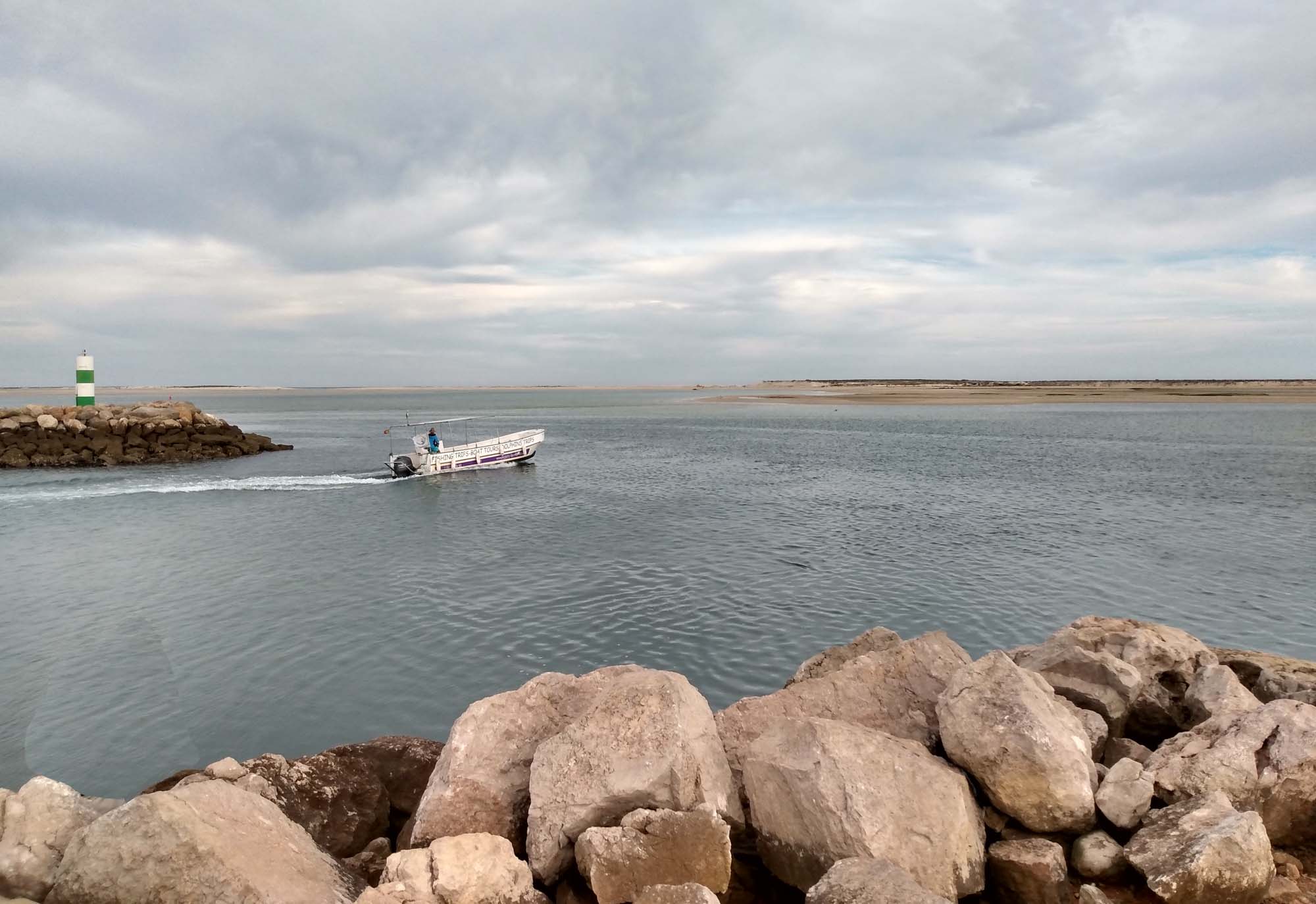 Ganz allein sind wir dann doch nicht geblieben. Gegen Abend gesellte sich noch ein Transporter aus Deutschland hinzu und um kurz vor 1 Uhr kam noch ein weiteres Wohnmobil, das sich zwischen uns quetschte. Dieses fuhr jedoch bereits weiter, als wir gerade beim Frühstücken waren. Das Pärchen aus dem Transporter entpuppte sich als ausgesprochen nett. Nachdem wir sie angesprochen hatten, kamen so sehr ins quatschen, dass wir erst nachmittags weiterfuhren. Wir fuhren durch Silves, an der dort stehenden Burg vorbei, weiter über Lagoa und Abufeira (dem Ballermann Portugals, fest in britscher Hand), an Faro vorbei bis nach Fuseta. Die gesamte Zeit fuhren wir - für uns nicht wirklich unerwartet, aber trotzdem nicht schön - durch touristisch gut erschlossenes Gebiet. Viele viele große Hotelanlagen, daneben zahlreiche Bauruinen. Das Extrem war ein riesiger Rohbau, der gerade wieder abgerissen wurde. Dem Pauschaltouristen, der seine Zeit im Pool am Meer verbringt, mag das egal sein. Wir vermissten die gemütlichen kleinen Ortschaften aus den Bergen. Das Äquivalent eines netten kleinen Fischerdorfs ist an der gesamten Küste jedenfalls nicht mehr zu finden. Zwischen Faro und Tavira ist das noch ein bisschen anders. Hier gibt es einige weniger besuchte Strände, die der Küste vorgelagt und durch einen Fluß getrennt sind, also eigentlich kleine Inselstrände. Bei Fuseta gingen wir ein wenig an diesem Strand spazieren, ohne allerdings auf die andere Seite überzusetzen. Für die Nacht fuhren wir danach zum Barragem de Beliche, einem Stausee nahe der spanischen Grenze. Hier standen wir zwischen zwei Olivenbäumen und waren uns sicher, dass wir heute Abend alleine bleiben würden: Der Platz reichte gerade einmal so für uns.So konnten wir völlig ungestört bei Sonnenuntergang ein fantastisches Farbenspektakel bewundern.