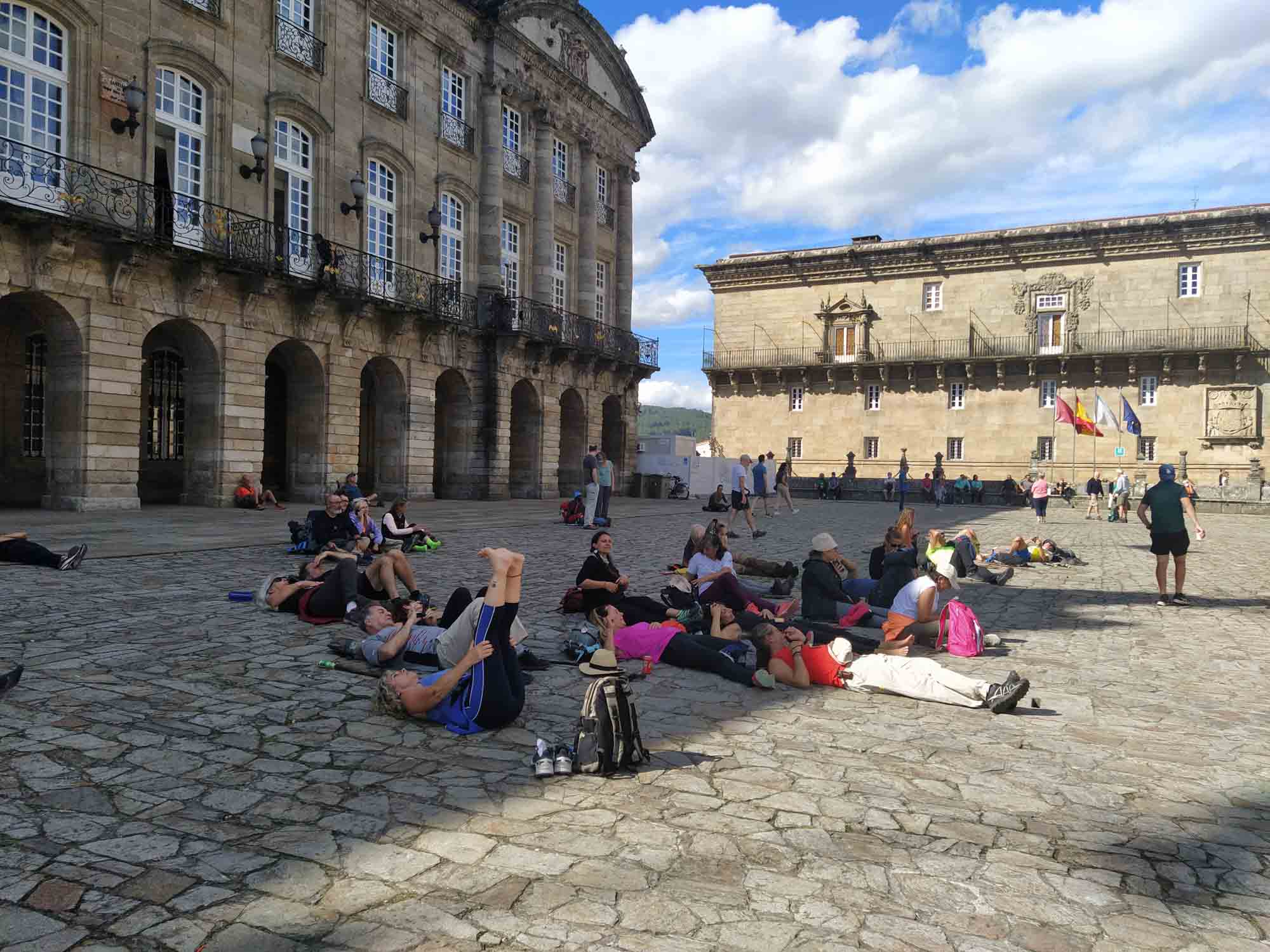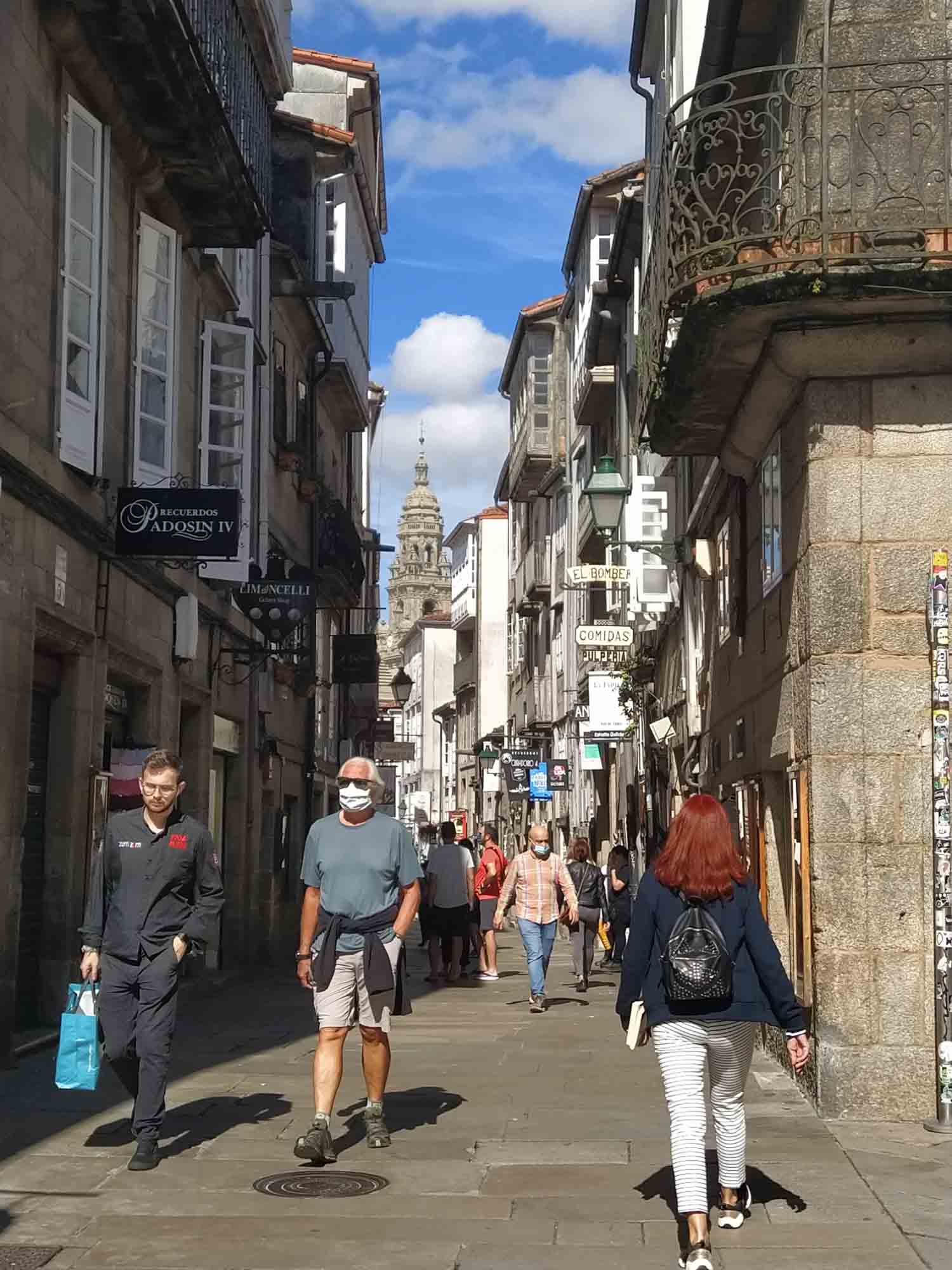 Am frühen Morgen regnete es noch. Also blieben wir einfach etwas länger liegen, bis sich alles verzogen hat und die Sonne wieder schien. Gegen Mittag fuhren wir dann nach Santiago de Compostela, dem Ziel aller Jakobsweggänger. Tatsächlich sahen wir unterwegs viele Wanderer aber je näher wir der Stadt kamen umso mehr machten die "Wanderer" den Eindruck, dass sie heute nur einen kurzen Spaziergang machten. Wir parkten in der Nähe des Campus und "wanderten" ebenfalls mit einem Rucksack befaffnet die letzten 1,6 km bis zur Kathedrale. Hierbei kamen wir durch die sehr gut erhaltene Altstadt, in deren engen Gassen wir uns gut vorstellen konnten, wie es für einen Pilgerer vor 200 Jahren gewesen sein musste, dort anzukommen. Dieser musste jedenfalls nicht durch die darum herumliegende große Stadt laufen, wie die Wanderer, die heutzutage den Jakobsweg beschreiten. Vor dem Eingang der Kathedrale mussten wir ca. 15 Minuten warten, bis sich die Tore für Besucher erneut öffneten. Die Kathredale selbst ist relativ schlicht gehalten. Auffällig war jedoch der Altar der mehr als prunkvoll gestaltet ist. Eine weitere Besonderheit waren die zahlreichen Abseiten, in denen Priester unterschiedlicher Nationalitäten die Beichte in zahlreichen Sprachen abnahmen. Danach liefen wir zum Auto zurück und fuhren nach Berndeogas, wo wir auf einem kostenlosen Stellplatz der Gemeinde einen schönen Platz hatten. Zu dieser Jahreszeit waren wir hier völlig alleine auf dem großen Platz.