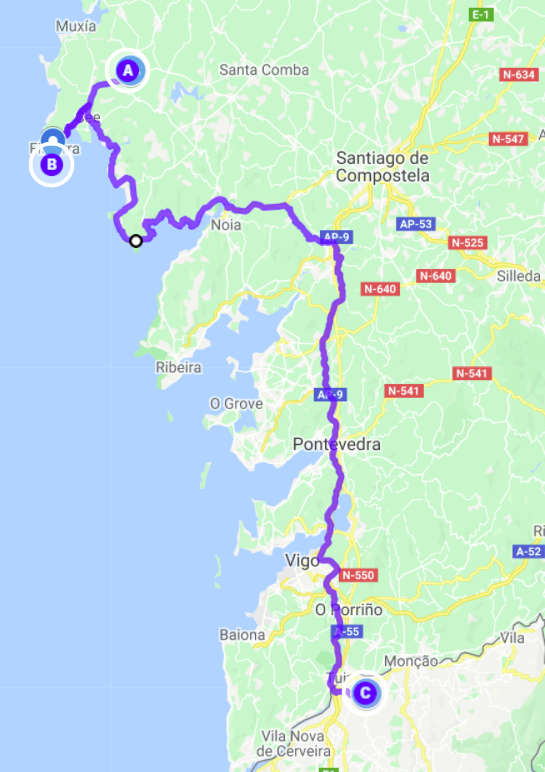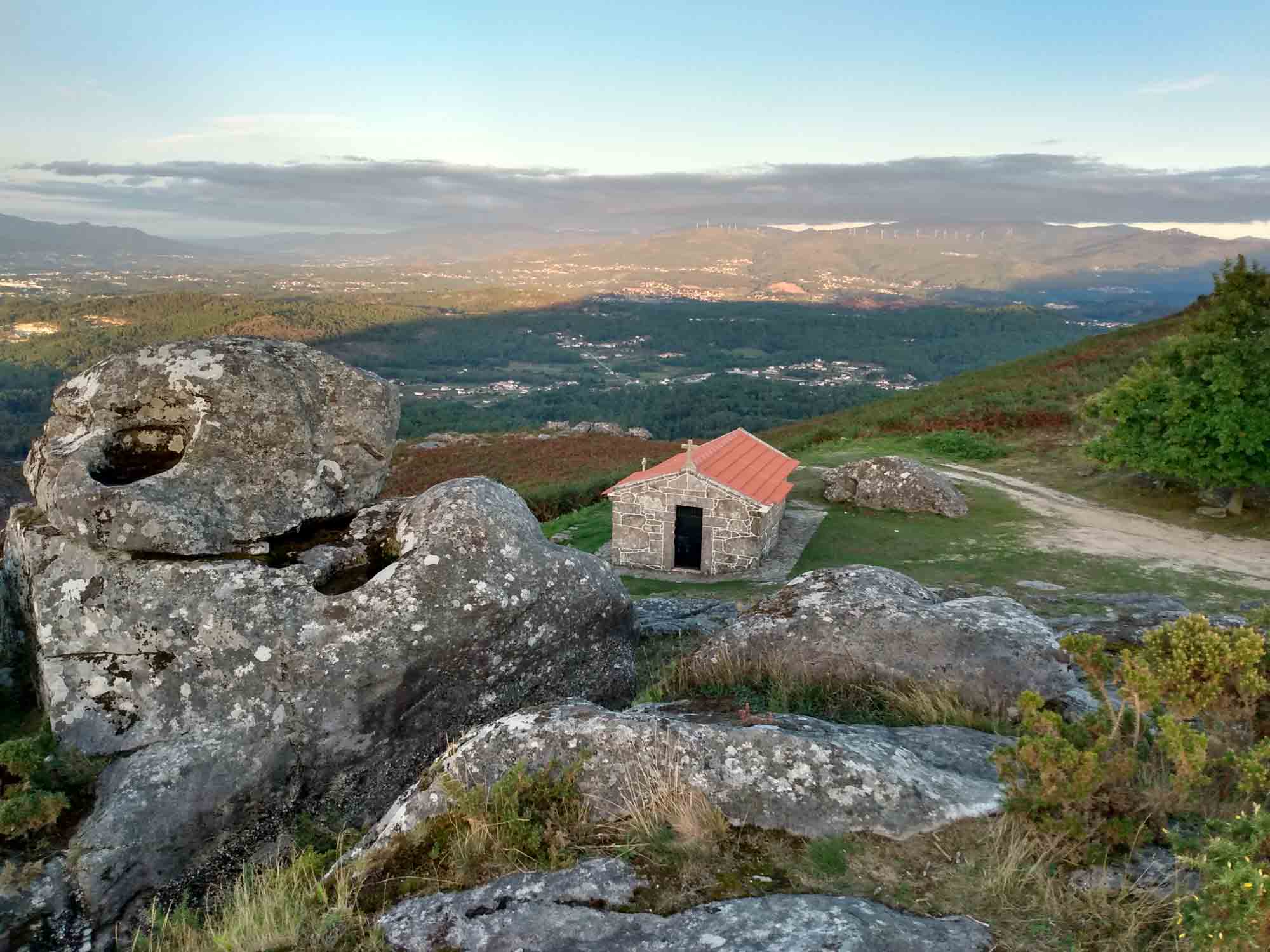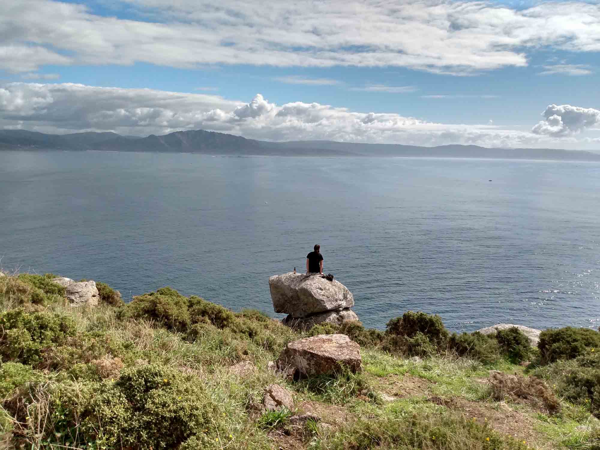 Von unserem Stellplatz aus war es nicht mehr weit, bis zum Leuchtturm von Fisterra, dem fast westlichsten Punkt von Kontinentaleuropa. Nicht ganz so rauh, wie am Pont du Raz in der Bretagne und sehr viel grüner, aber eine sehr ähnliche Atmosphäre. Es ist schon beeindruckend, den Wind zu spüren, über das weite Meer zu sehen und sich vorzustellen, dass am anderen Ende dieses Wassers Amerika liegt. Es war warm und sonnig und wir spazierten - nicht ganz allein - über die felsige Landschaft unterhalb des Leuchturms. Danach ging es, der kleinen Küstenstraße folgendend über San Francisco, wo quasi die gesamte Bucht ein einziger großer Sandstrand ist, Padrón und Pontevedra nach Tui, wo wir die Grenze zu Portugal überquerten. Die Grenze ist hier der Fluß Miño, den wir auf einer schmalen Eisenbrücke überquerten. Mit dem Gegenverkehr war es sehr eng und wir mussten einige Male anhalten um nicht doch mit dem Außenspiegel in Kontakt mit der Brücke zu kommen. Aber letztlich passte es immer. Hinter der Grenze fuhren wir auf einen Berg zum Aussichtspunkt Santo Ovieto. Von hier oben hatten wir einen sehr schönen Ausblick über die umliegenden Ortschaften und standen selbst mitten im Nirgendwo. Abends kamen noch ein paar Wildpferde vorbei. Ansonsten waren wir - wie wir es so lieben - ganz für uns allein.