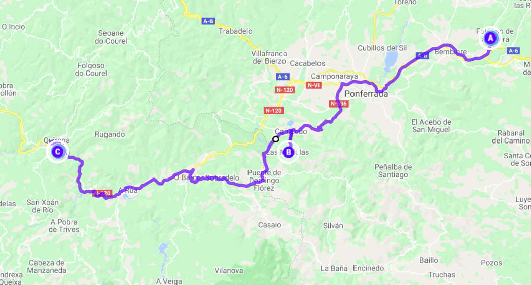 Nachts war es kalt. So richtig kalt, sogar unter 0. Kein Wunder, dass wir seit gestern heizen müssen. Wir müssen unbedingt weiter in den Süden. Aber die Sonne schien und es wurde schnell wärmer. Tagsüber waren es sogar über 25 Grad. Merkwürdige Gegend. Aber unglaublich grün. Wir fuhren nach Las Medulas, wo es alte Minen aus der Römerzeit und sehenswerte rote Felsen gibt, die sich aus dem Grün der Hügel erheben. Man kann hier eine ausgiebige Wanderung machen. Wir spazierten aber nur durch den kleinen Ort und sahen uns im Büro für die geführten Wanderung etwas um. Danach genossen wir die Berge aus der Luft: Mit unserer Drohne. Weiter ging es nach Westen, immer dem Jakobsweg nach. Bei Ribas de Sil fanden wir am Fluss Sil ein schönes Plätzchen, wo wir es uns gemütlich machten.