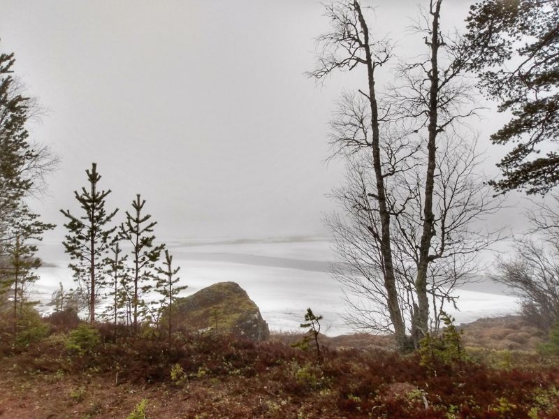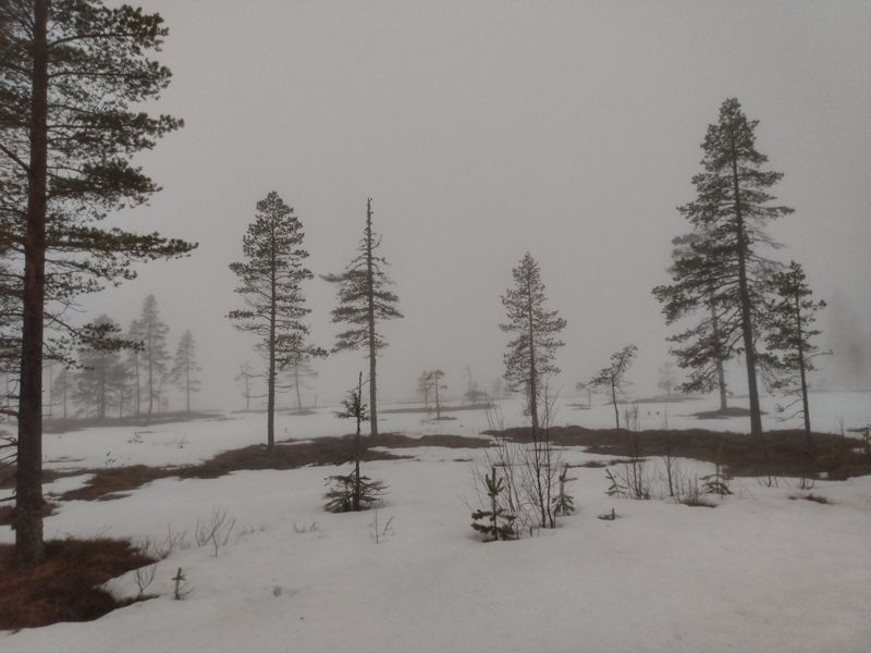 Nach einem Halt in Sveg zum Einkaufen fuhren wir wieder südwärts und waren kurze Zeit später wieder in Dalarna. Der Wetterbericht sagte für heute viel Regen voraus. Und Regen gab es. Reichlich. Wir wollten heute aber nur bis zu unserem Ziel, einigen Stromschnellen und Wasserfälle entlang des Flusses Ämån. Diese liegen entlang einer 50 km langen unbefestigten Straße, die quer durch die Berge führt. Es war eine langsame aber sehr malerische Fahrt, die ersten 25 km dieser Straße bis zu der ersten Stromschnelle zu fahren. Wir fuhren durch dichten Nebel und das Schauspiel kam uns irgendwie unwirklich vor. Als wir die Stelle erreichten, war dort jedoch kein Parkplatz. Noch nicht einmal eine Ausweichstelle. Nur ein kleines Schild, das in den Wald deutete und auf dem “Losbostupet” stand. Aber wir wollten sowieso bis morgen warten, da es dann aufhören sollte zu regnen. So fuhren wir in kurzes Stück zurück und stellten uns auf einen kleinen Rastplatz vor eine Brücke über den Fluß. Auf der anderen Seite türmte sich der Schnee auf dem Weg. Die Brücke würde heute sicher niemand mehr befahren wollen. So machten wir es uns drinnen gemütlich warm und spielten bis zum Schlafengehen.
