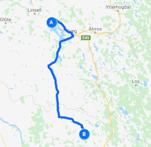 Als wir morgens aufwachten hatte der Regen aufgehört. Wir hatten die Nacht unweit der ersten Stromschnellen des Ämån verbracht und brauchten weniger als 5 Minuten bis zu unserer ersten kleinen Wanderung des Tages bis Losbotupet. Wir stapften ein kurzes Stück durch festgefrorenen Schnee einen Hang im Wald hinunter. Immer wieder brachen wir bis zum Oberschenkel durch die langsam tauende Schneedecke ein. Aber wir schafften es und erreichten eine kleine Brücke, von der aus wir die Stromschnellen gut sehen konnten. Der nächste Halt war ca. 8 km weiter talwärts und sollte ein Wasserfall mit Namen Bösfallet sein. Leider war es nicht möglich dorthin zu gelangen. Wir verwechselten den Weg mit einem schneeüberdeckten Bach. Erst als Michael einbrach und sein Fuß schon im Bach steckte war er als solcher erkennbar. Der Weg selbst war jedoch nicht viel besser. Immer wieder brachen wir ein und das Wasser lief unter dem Schnee auch den Weg hinunter. Eigentlich überall lief das Wasser unter der Schneedecke zum Ämån hinunter. Schließlich gaben wir auf und fuhren zur nächsten Stromschnelle. Obwohl nicht weit entfernt und auch nur unwesentlich weiter unten, war der Weg hier fast frei von Schnee und der Weg zur Stromschnelle diesmal nur ein kleiner Spaziergang. Zum Abschluß fuhren wir ca. 20 km weiter zum Helvetesfallet, einem beeindruckenenden Wasserfall, wo der Ämån zwischen Granitfelsen etwa 10 m in die Tiefe fällt. Diesen Platz zu erreichen war allerdings wieder eine schöne Kletterpartie und als wir die letzten Eisschollen von den Felsen geschoben hatten, die den Abstieg bildeten, war uns klar, dass wir wohl die ersten Besucher in diesem Jahr waren. Beim Wasserfall merkten wir so richtig die Kraft des Wassers, das mit lautem Getöse herangerauscht kam und in wilden Strudeln um die Felsen floß bevor es in die Tiefe fiel. Glücklich, doch noch einen Wasserfall gesehen zu haben, wanderten wir zum Wohnmobil zurück. Nach einem kleinen Halt in Nusnäs, wo wir uns die Fabrik angesehen haben, wo die für Dalarna typischen bemalten Pferde hergestellt werden und einem weiteren Halt, um die Gasflasche wieder aufzufüllen, fuhren wir zur Übernachtung an einen kleinen See.